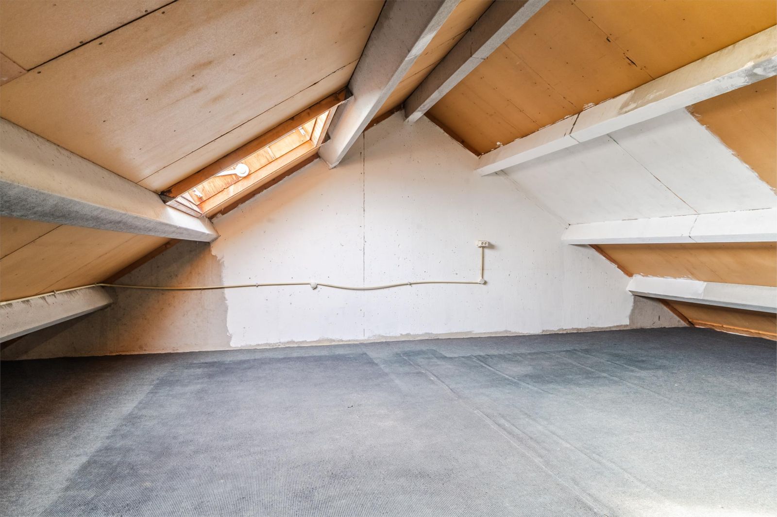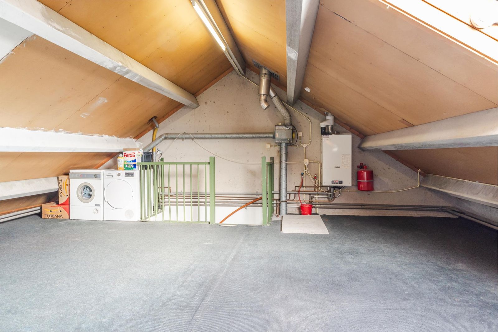 Met de vaste trap bereik je de ruime zolderverdieping en die is voorzien van een dakraam. Hier kan een vierde slaapkamer of aparte hobbyruimte ingericht worden. Verder is hier aansluiting voor zowel een wasmachine als droger voorhanden.