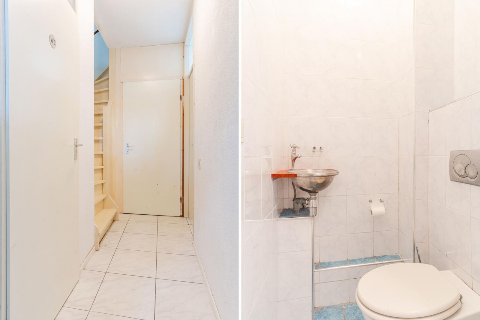 Via de voordeur loop je de hal binnen met een garderoberuimte en toegang tot de huiskamer en de trap naar de eerste etage. Verder bevindt zich in de hal een geheel betegelde toiletruimte met fontein en een grote voorraadkast. Vanuit de hal loop je de ruime,door twee grote ramen, verlichte huiskamer binnen. De open keuken is ruim en biedt volop opberg en werkruimte. Door de open inrichting biedt de open keuken een gezellige plek om te koken en gelijktijdig gasten te vermaken.