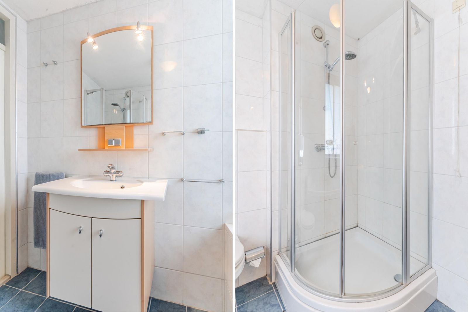Op de eerste verdieping bevinden zich twee grote slaapkamers, en een kleinere ruimte die naast slaapkamer ook zeer geschikt is als werkkamer of logeerkamer. Vanuit de oploop is ook een ruime badkamer te betreden, die is uitgerust met een ligbad, een douchecabine, een wastafelmeubel en een toilet.