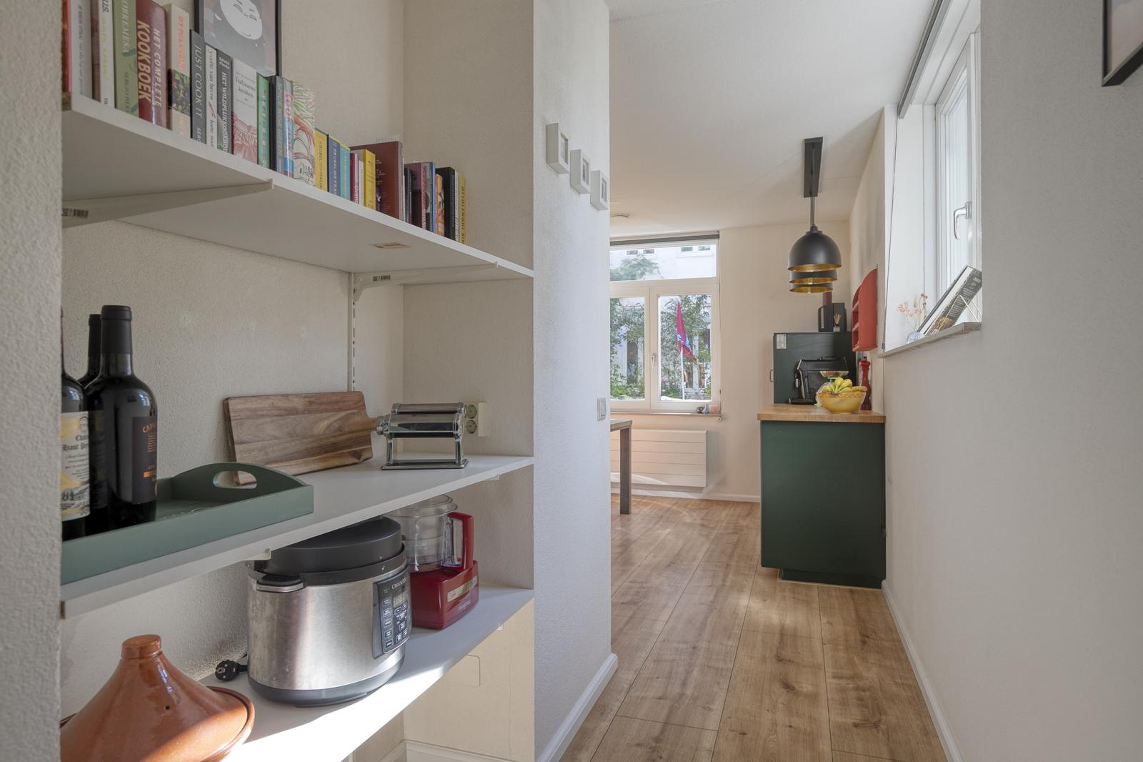 Aan de andere zijde tref je een ruimte trap-/ provisiekast.