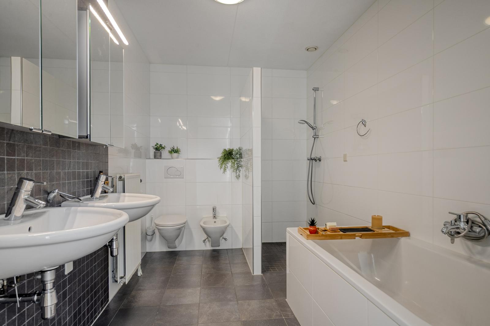 De inpandige, moderne badkamer is voorzien van een inloopdouche, 2e toilet, bidet en een dubbele wastafel.