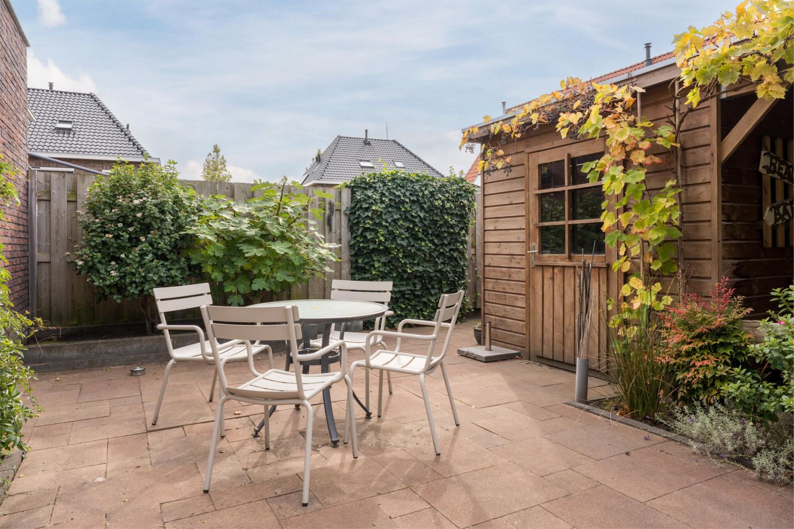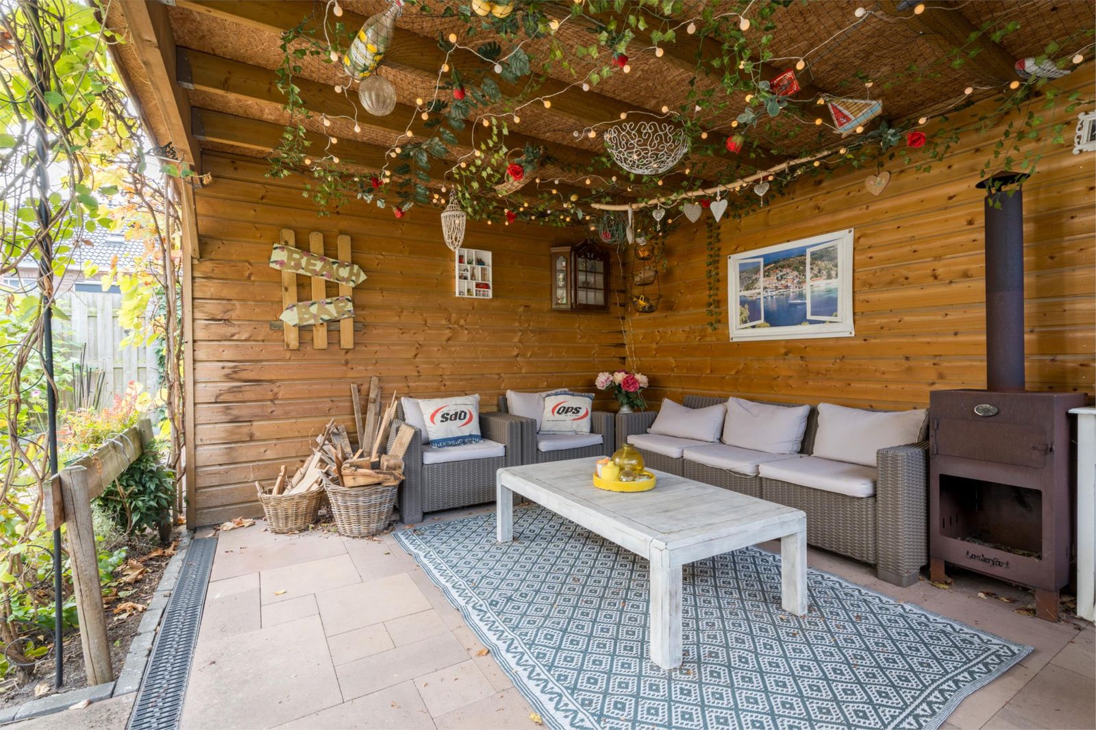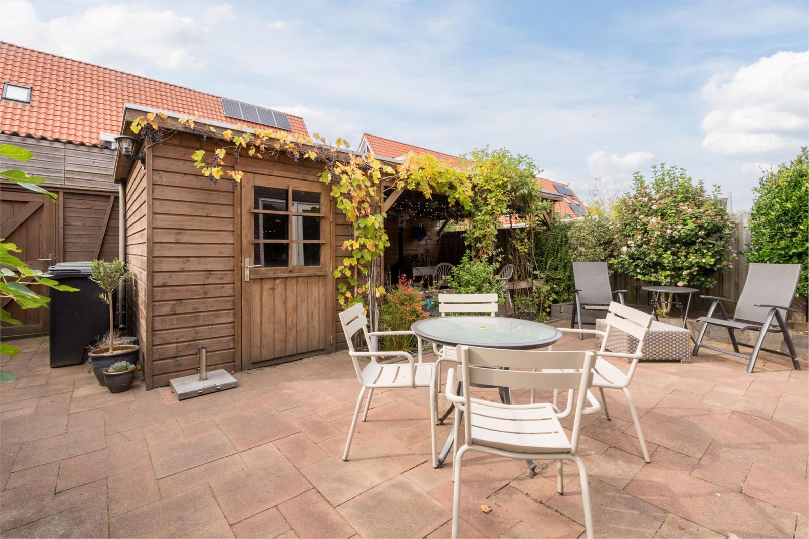 De zonnige tuin is fraai aangelegd en voorzien van een gezellige overkapping. Een heerlijke plek om 's zomers te ontspannen tot in de late uurtjes. Aangrenzend bevindt zich een berging voor extra opslag. Voor de garage ligt de oprit met ruimte voor twee auto’s.