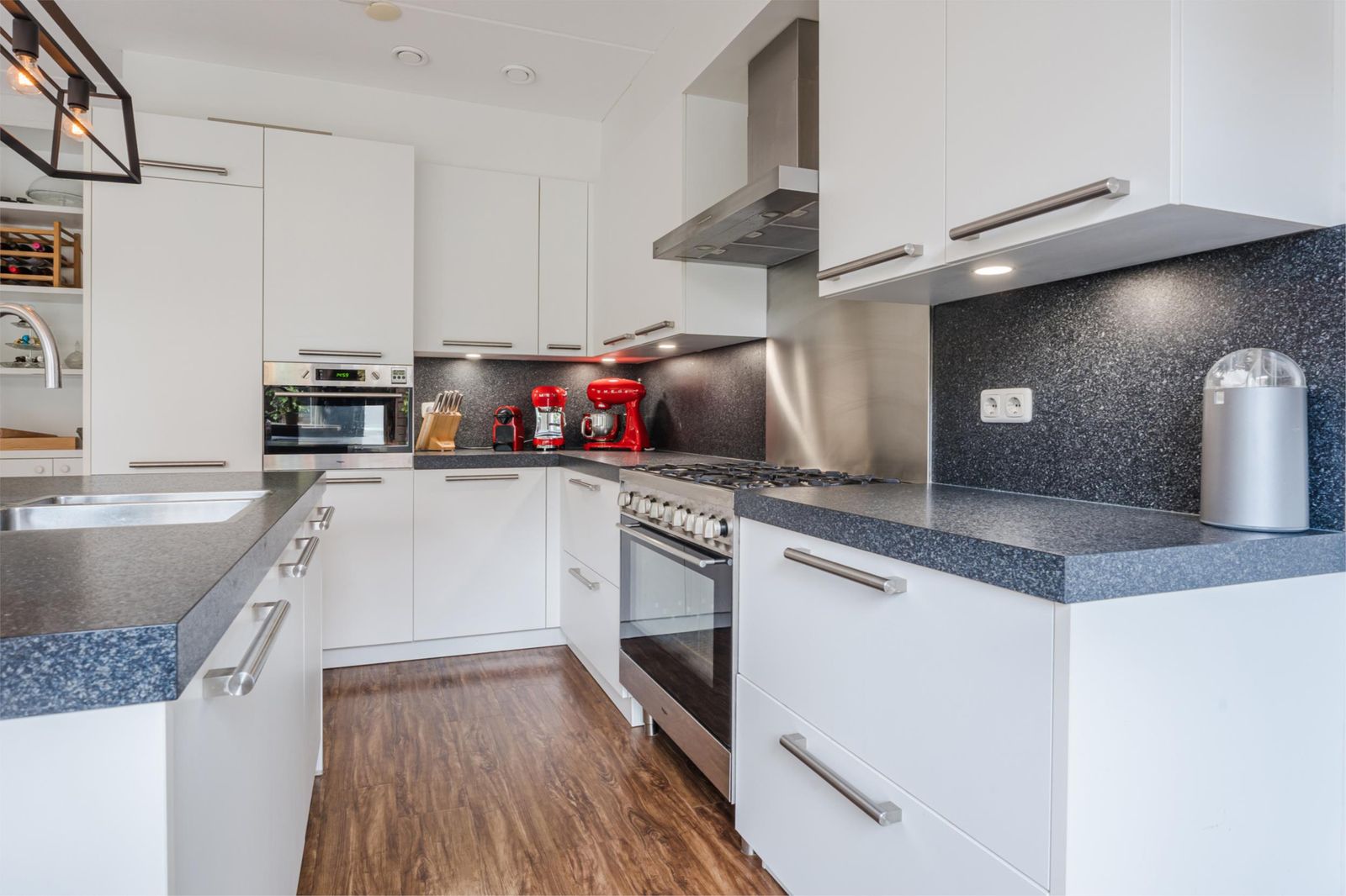 De keuken is luxe en compleet uitgerust met o.a. een spoeleiland, Quooker, 6-pits gasfornuis met oven, combi-magnetron, koel-/vriescombinatie, afzuigkap en vaatwasser. Een heerlijke plek om te koken én te genieten.