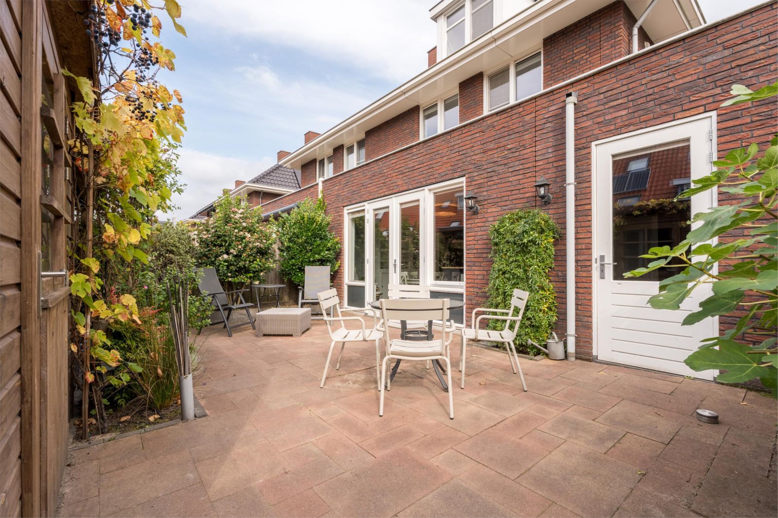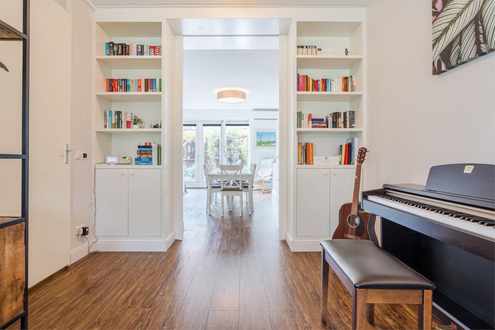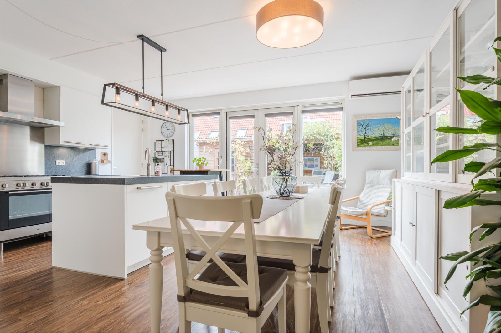 Je stapt binnen in een ruime en lichte hal. De royale woonkamer aan de voorzijde is voorzien van een sfeervolle erker en vaste (boeken)kasten. Via de stijlvolle kamer-en-suite-deuren bereik je de indrukwekkende woonkeuken, die dankzij de uitbouw extra veel leefruimte biedt. De openslaande deuren naar de tuin maken het helemaal af.