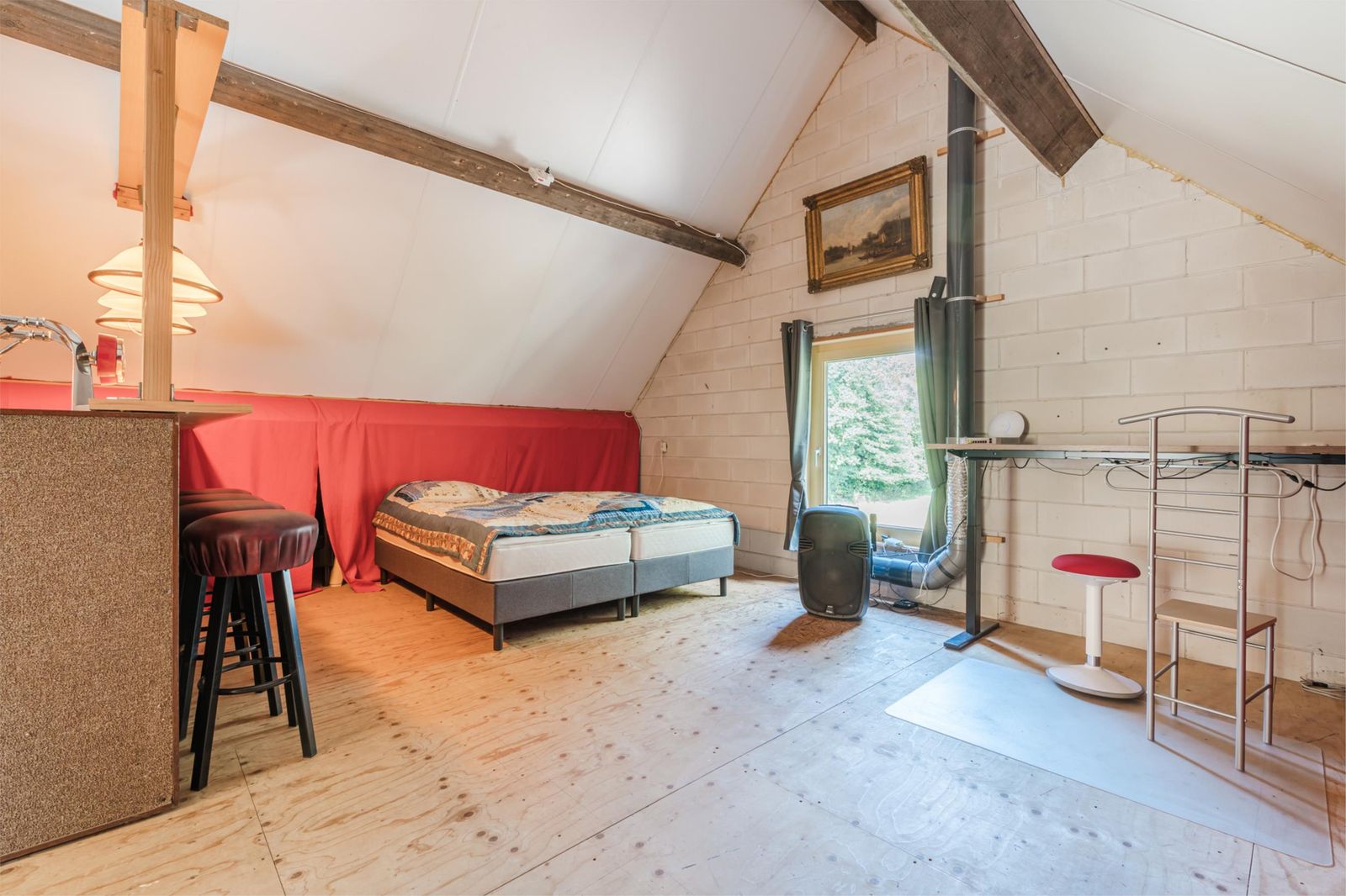 **Multifunctioneel bijgebouw: wonen, werken, verhuren, paarden, mantelzorg** Het riante, volledig geïsoleerde bijgebouw (153,8 m²) is een parel op zich. De begane grond (97,9 m²) herbergt een verwarmde schuur/garage en twee ruime paardenboxen, gehele begane grond compleet met (niet aangesloten) vloerverwarming, gootsteen en zadelkast. Via een vaste trap bereikt u de sfeervolle studio (55,9 m²) met woon-/slaapkamer, open inbouwkeuken, badkamer (wastafel, douche, toilet) en een extra ruimte met barretje, ideaal als ontspannings- of vergaderruimte. Met een eigen cv-ketel (2022) is dit bijgebouw eenvoudig geschikt te maken voor dubbele bewoning of gastenverblijf. Op het dak van het bijgebouw (29) en schuurtje (4) liggen zonnepanelen (2017) met een capaciteit van 9573Wp.