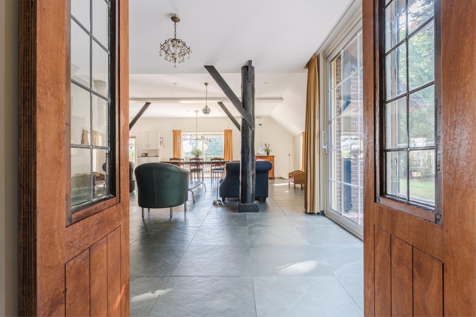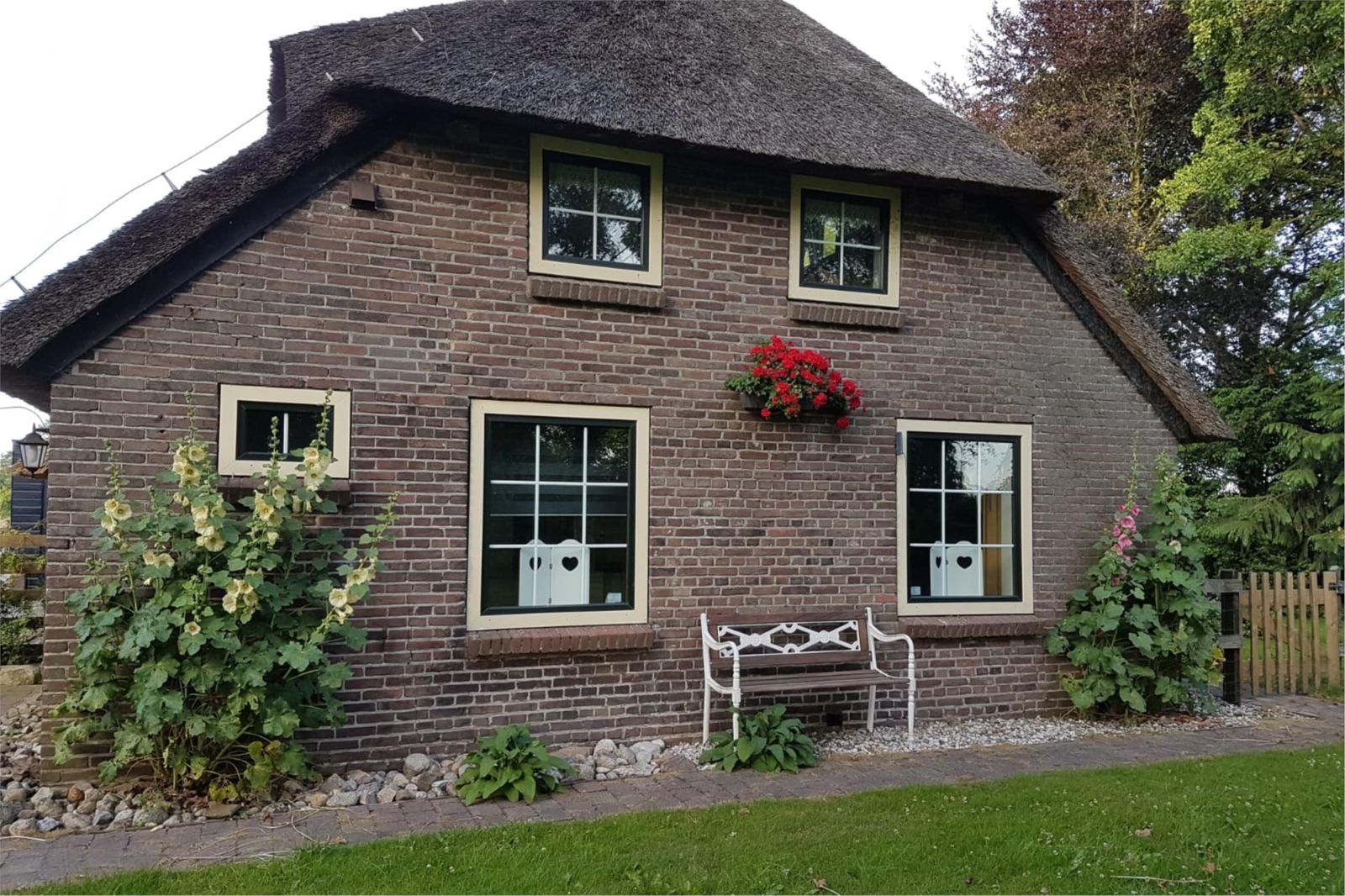 - boerderij geheel voorzien van kunststof kozijnen die eruit zien als hout.