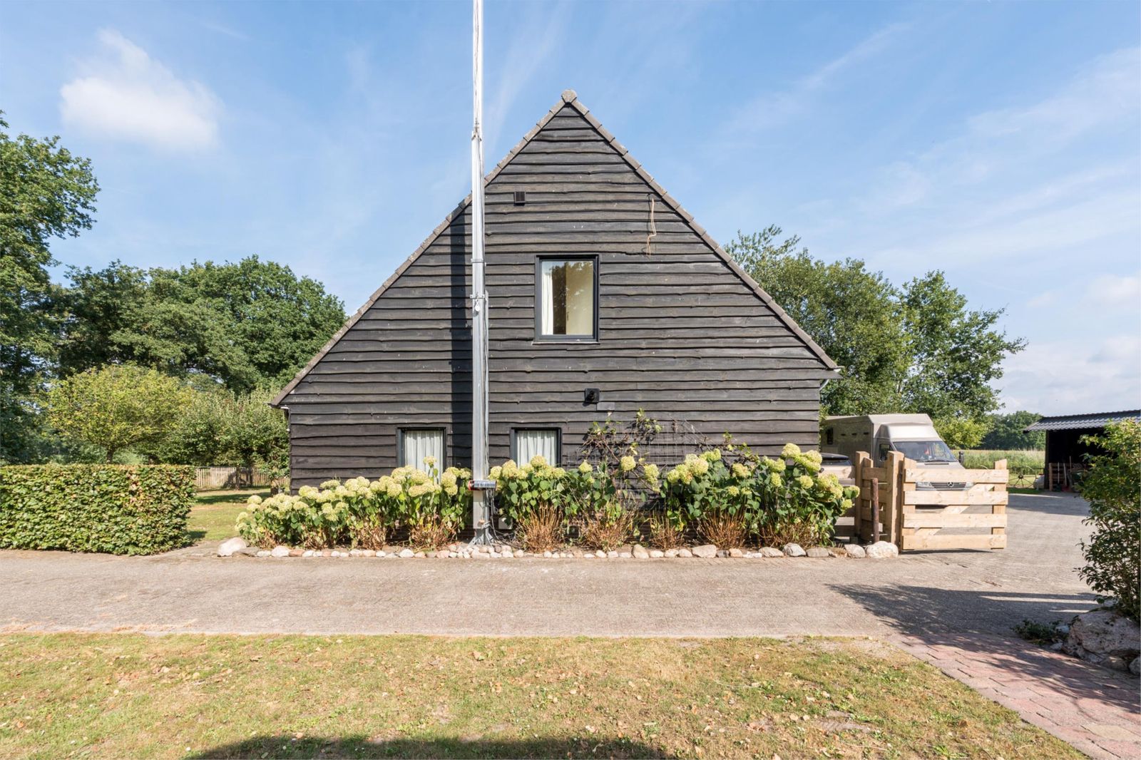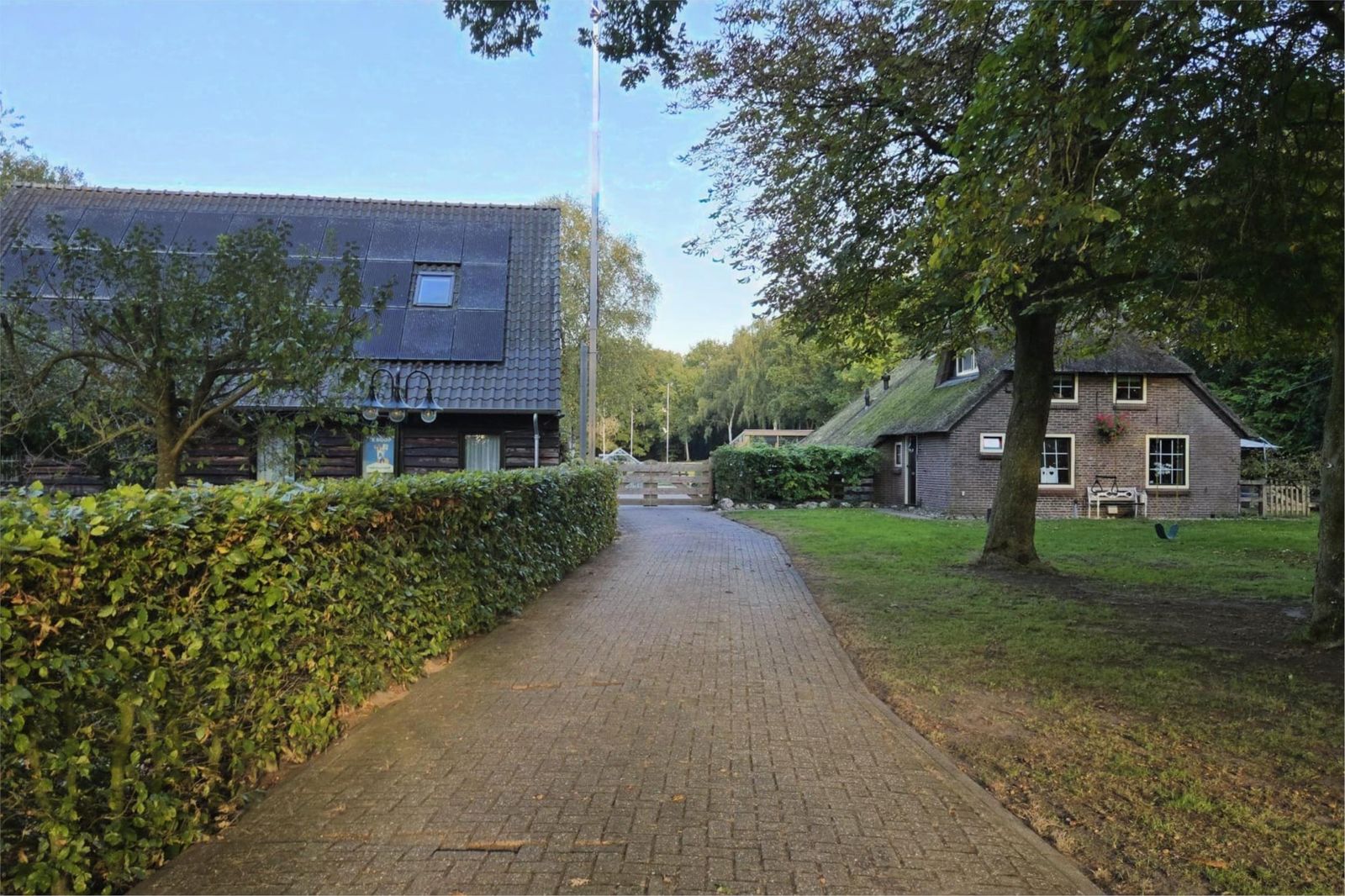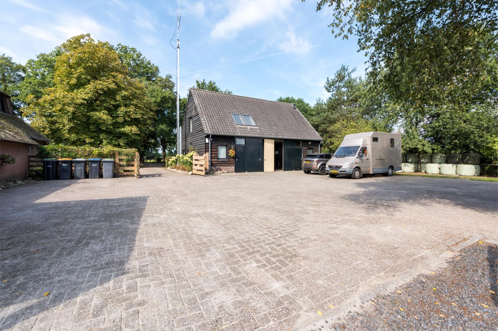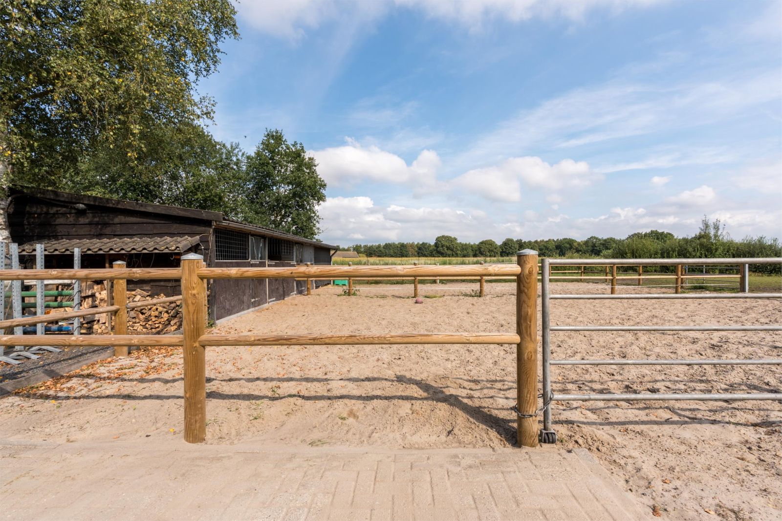 **Paardenfaciliteiten van topniveau** Voor paardenliefhebbers is dit een waar walhalla: vijf royale paardenboxen (ca. 4x5 m), waarvan drie buitenstallen met verwarmde waterbakken en geïsoleerd warmtelint, en twee paddocks met nieuwe omheining (2024) en directe toegang tot het weiland. Een professionele verlichte rijbak (20x40 m) met polyvlokken en sproei-installatie, een kapschuur voor hooiopslag en een waterdichte betonnen mestput maken het geheel compleet. Twee vaste waterbakken in het weiland en meerdere buitenwaterpunten (in voor- en achtertuin) zorgen voor optimaal gemak.