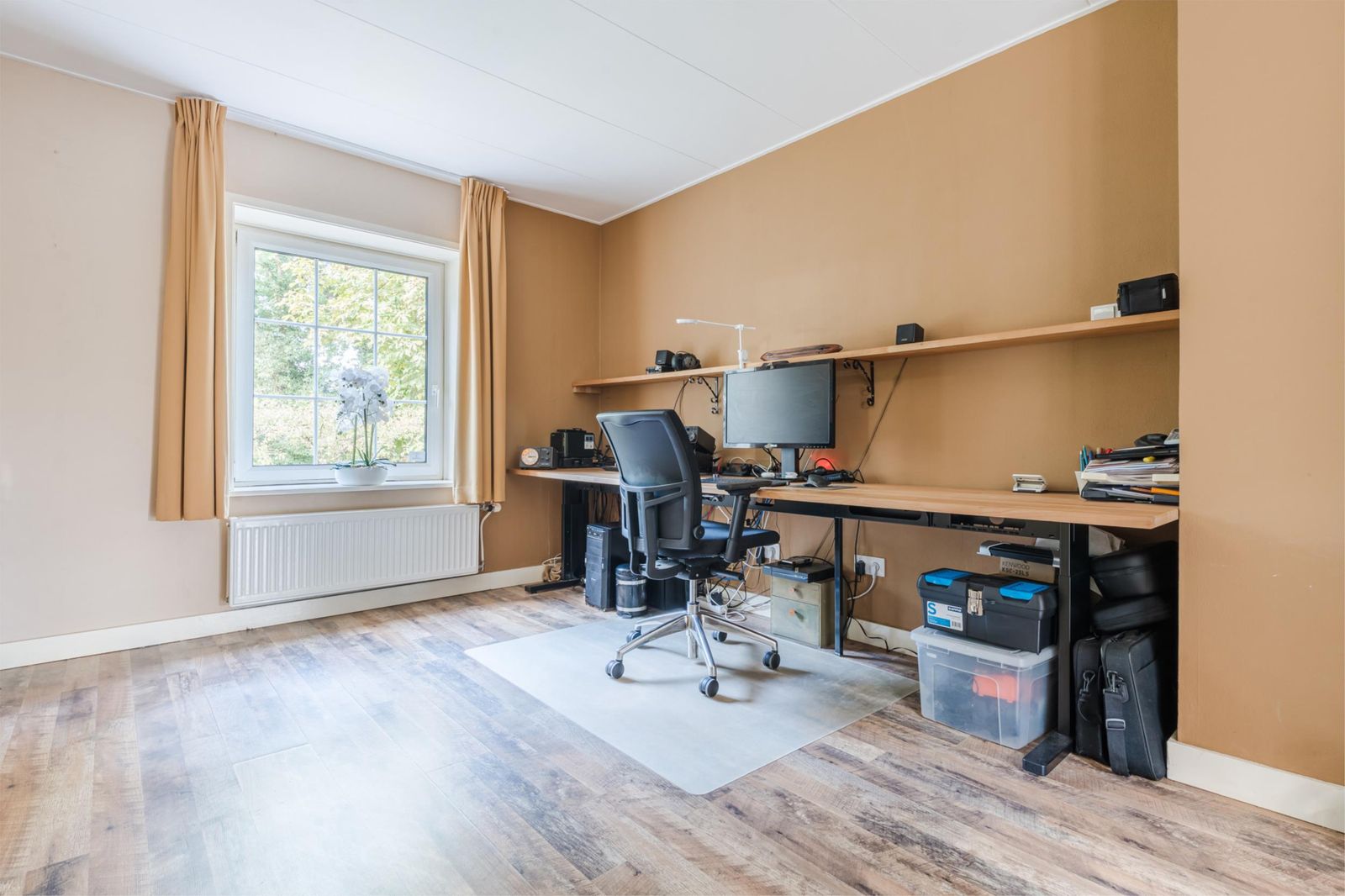 **Woonboerderij: warm en eigentijds** De goed onderhouden woonboerderij (142,7 m²) combineert karakter met modern comfort. Via de hal met garderobe en toilet betreedt u de lichte woonkamer met leistenen vloer, vloerverwarming, een sfeervolle houtkachel, een Samsung airco (2024) en schuifpui naar het terras. De open hoekkeuken is uitgerust met een natuurstenen werkblad, gaskookplaat, afzuigschouw (2024), combimagnetron met Wifi (2017), koelkast (2022) en vaatwasser met Wifi (2019). Een praktische bijkeuken biedt ruimte voor wasmachine, droger, heeft een waterontharder (2022) en cv-ketel (2022). Op de begane grond vindt u een kantoor/slaapkamer met stijlvolle openklapbare glas-in-looddeuren in de doorgang met de woonkamer en een badkamer met badkamermeubel, ruime douche en ligbad. Boven zijn twee royale slaapkamers (15 m² en 12 m²) met draai/kiepramen en volop kastruimte. De boerderij is volledig geïsoleerd (dak, muur, plafond) en voorzien van dubbel glas in kunststof kozijnen die niet van echt hout zijn te onderscheiden.