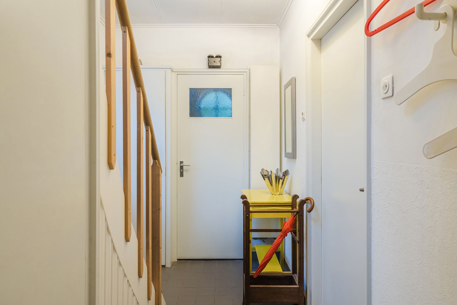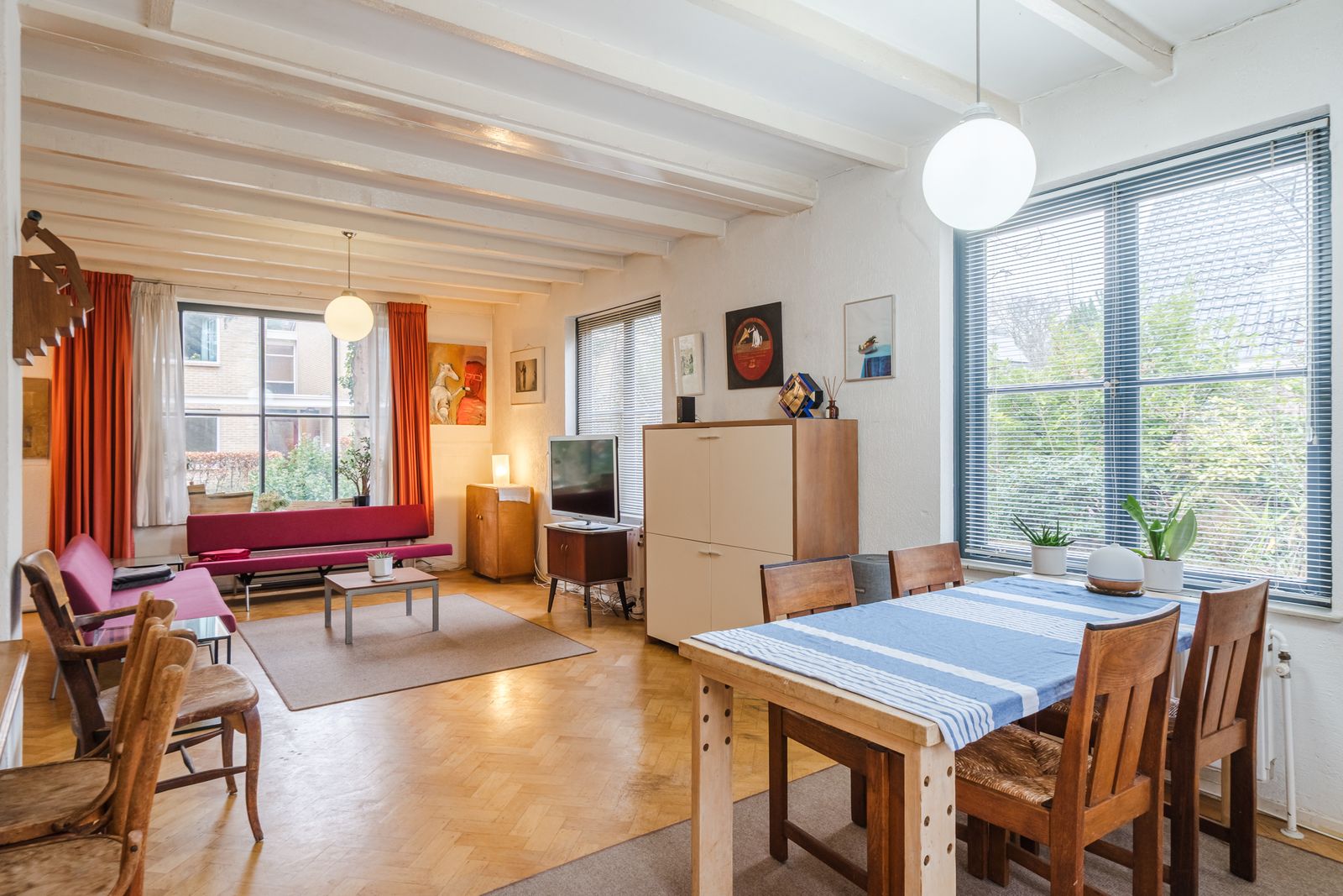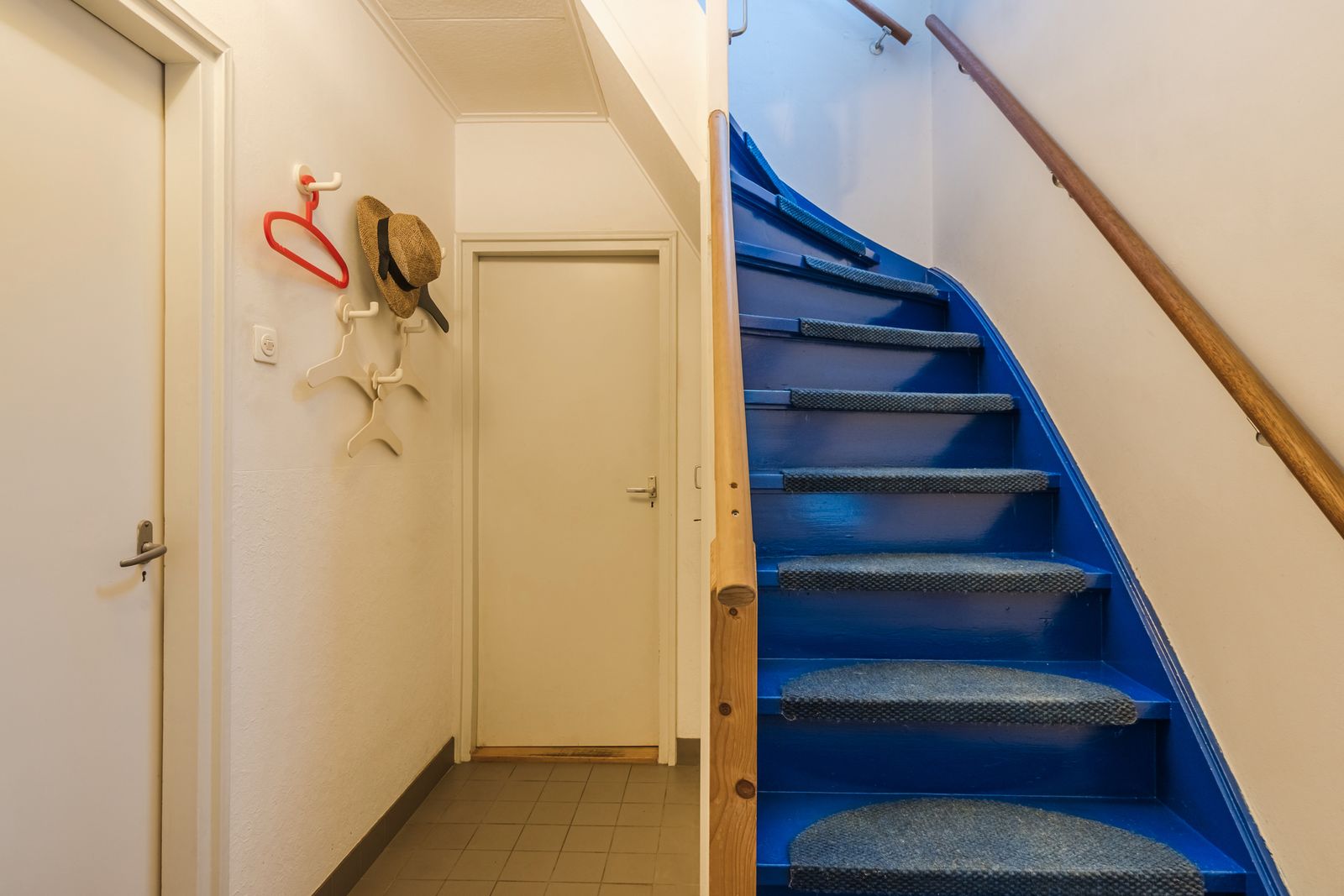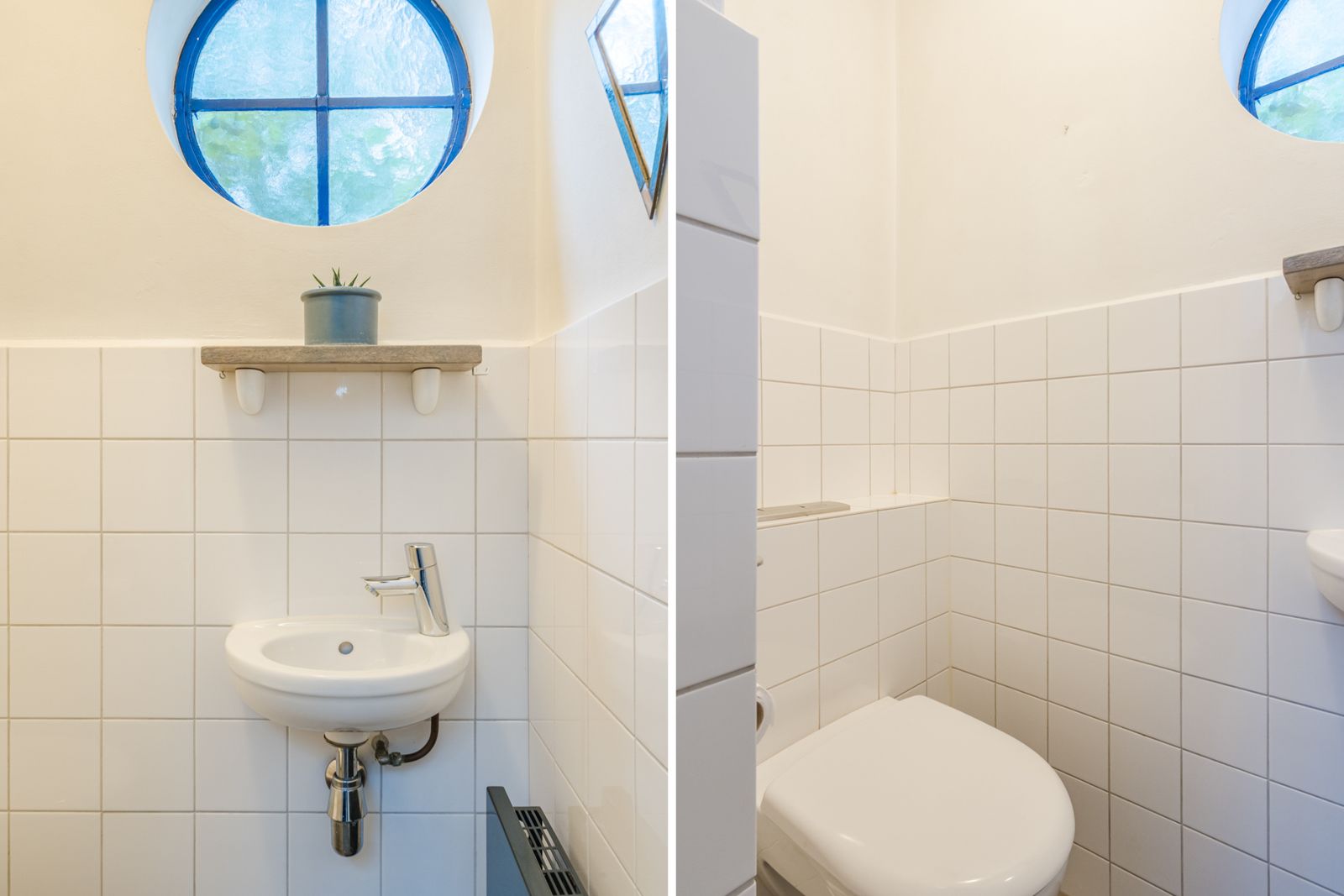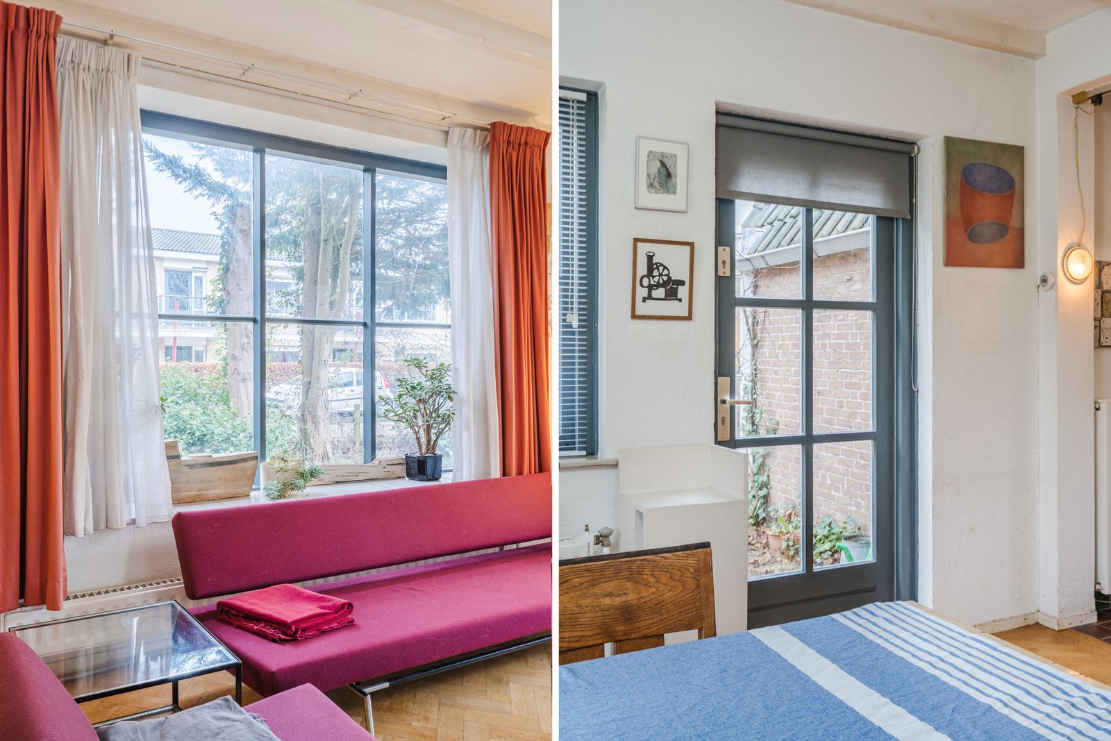 Indeling: de woning bestaat uit vier kamers. Beneden is een gang met toegang tot een toilet, trappenhuis en toegang tot een kleine kelder (circa 1.40 hoog en 3m2 oppervlak). Via 1 deur is er toegang tot de woonkamer en via de andere deur toegang tot de open keuken. De aangebouwde bijkeuken dient tevens als natte ruimte voor een wasmachine, droger of vaatwasmachine. Tevens is hier een magnetron, opbergruimte en een wastafel met afneembare handdouche. Via een afsluitbare deur is er toegang tot het aangebouwde atelier dat tevens te gebruiken zou zijn als levensbestendige slaapkamer of wooneenheid met water, licht en dubbel glas.