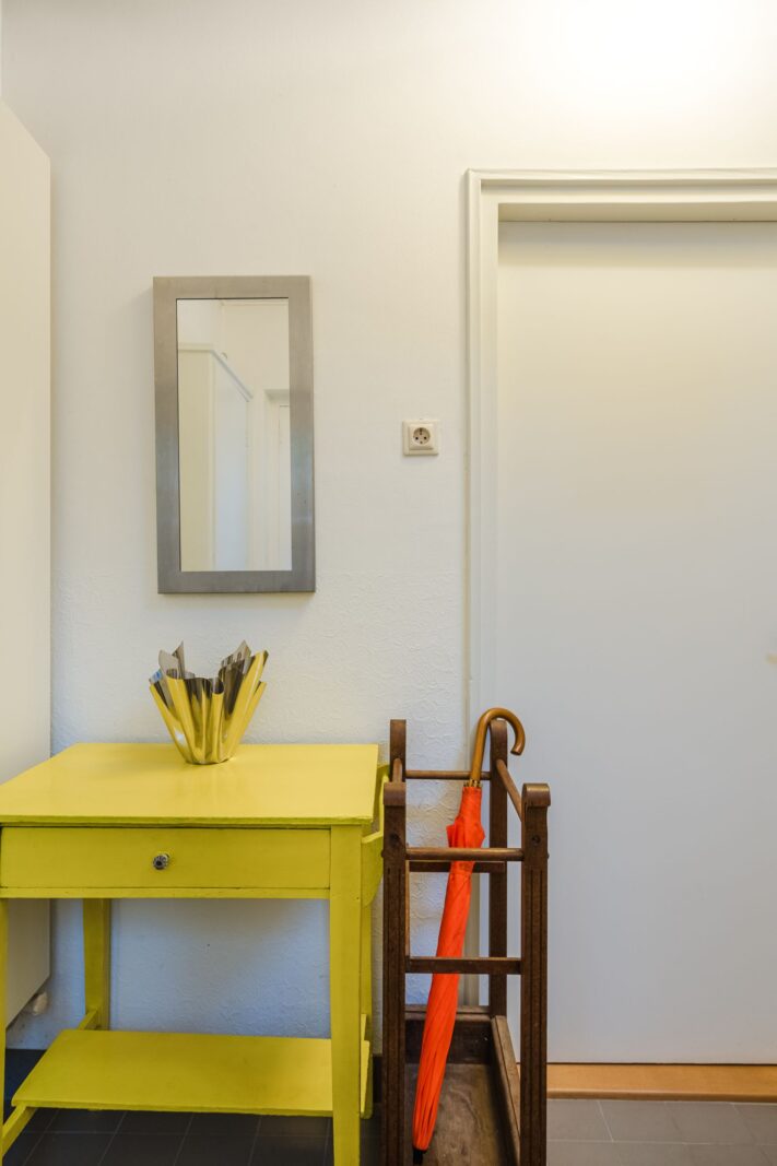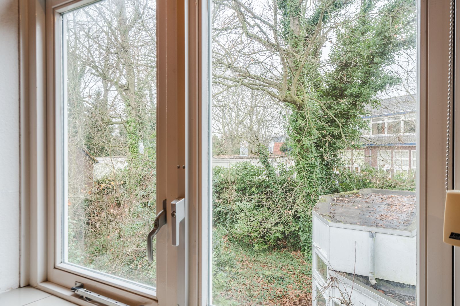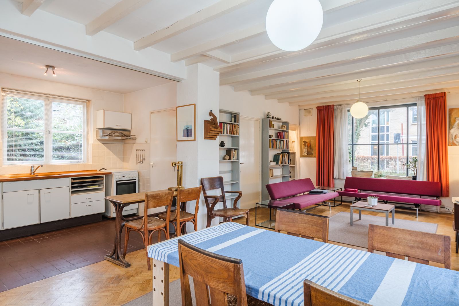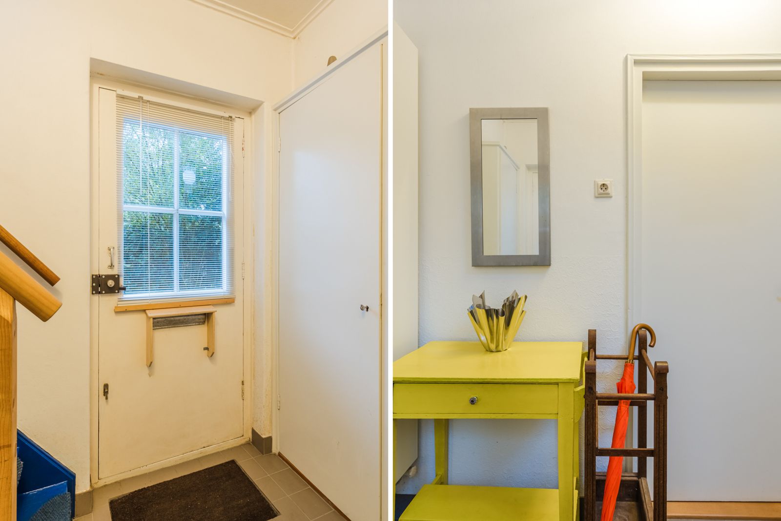 Indeling: de woning bestaat uit vier kamers. Beneden is een gang met toegang tot een toilet, trappenhuis en toegang tot een kleine kelder (circa 1.40 hoog en 3m2 oppervlak). Via 1 deur is er toegang tot de woonkamer en via de andere deur toegang tot de open keuken. De aangebouwde bijkeuken dient tevens als natte ruimte voor een wasmachine, droger of vaatwasmachine. Tevens is hier een magnetron, opbergruimte en een wastafel met afneembare handdouche. Via een afsluitbare deur is er toegang tot het aangebouwde atelier dat tevens te gebruiken zou zijn als levensbestendige slaapkamer of wooneenheid met water, licht en dubbel glas.