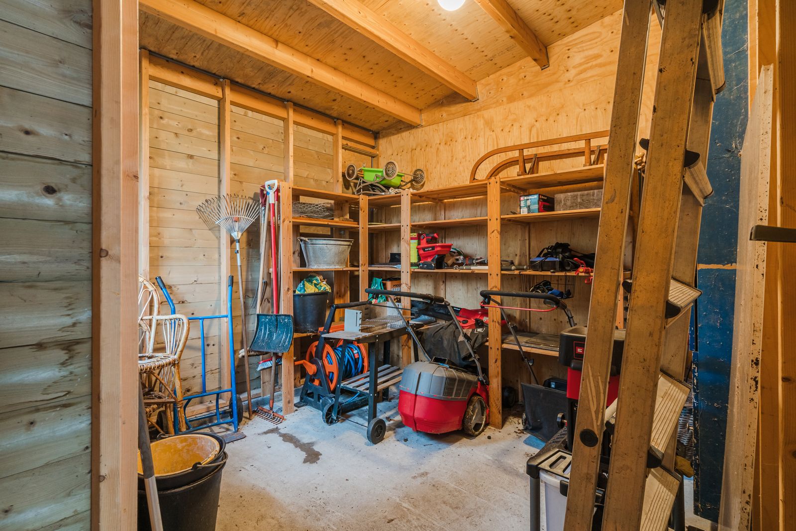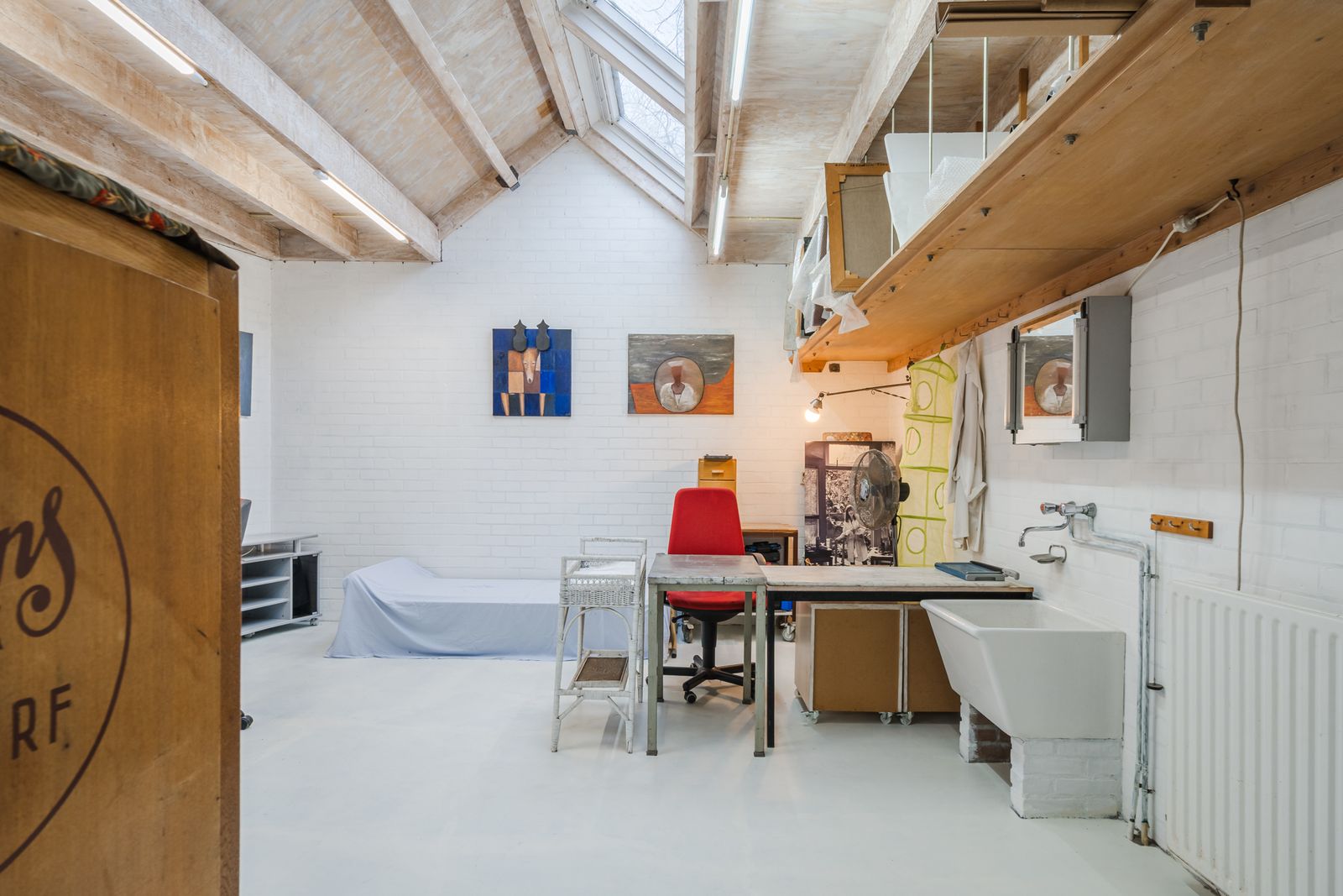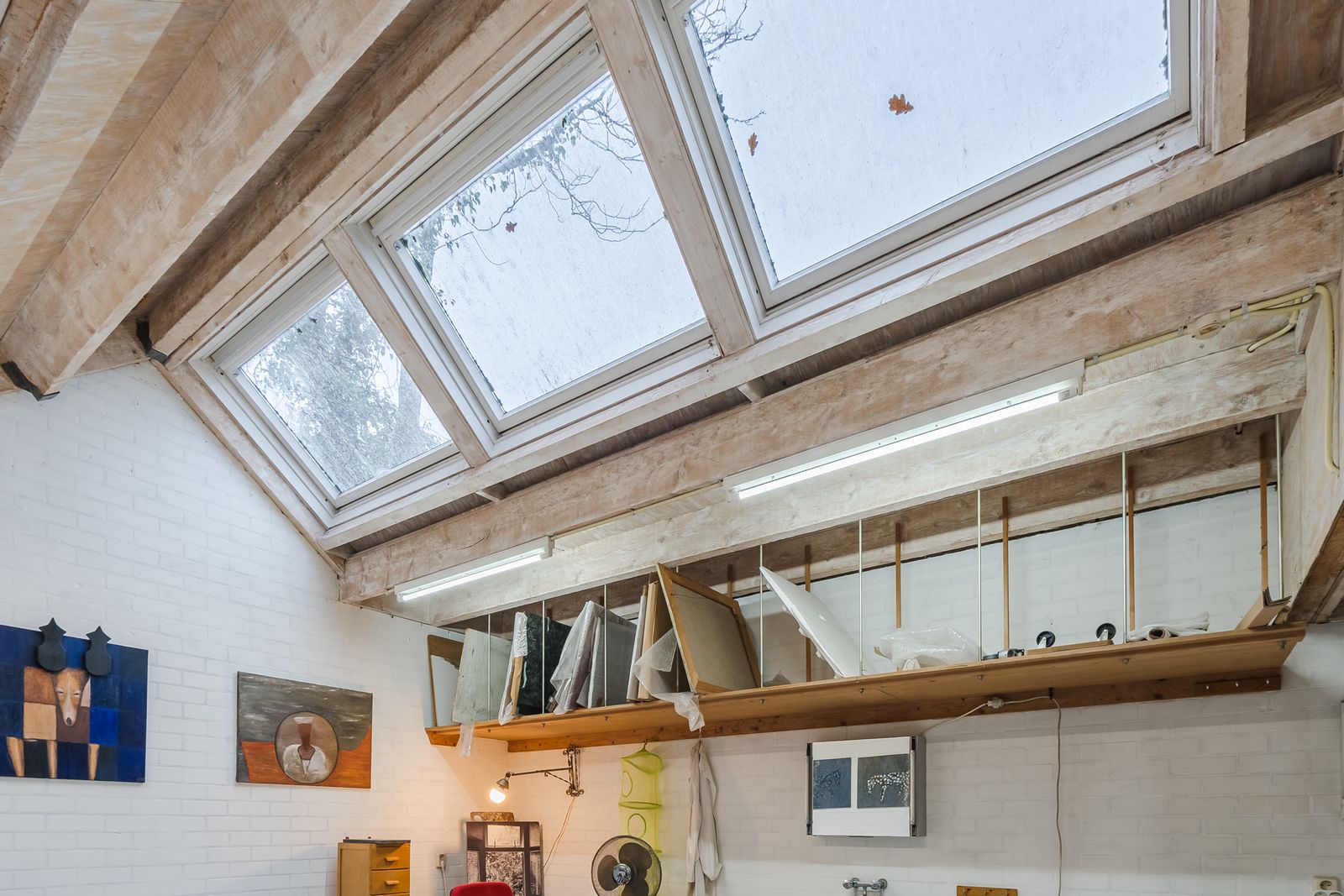 Achter de hoofdwoning is rond 1995 een aan de woning gebouwd atelier geplaatst (ca. 30 m2) met een schitterend uitzicht op de tuin. Het atelier is verwarmd en van water en licht voorzien en beschikt over dubbele beglazing. Het atelier is toegankelijk via de bijkeuken van de hoofdwoning en heeft een eigen deur naar de tuin. Naast een geweldig uitzicht op de tuin beschikt deze ruimte over een rij tuimel-dakramen die een heel bijzonder lichteffect geven vanuit het Noorden.