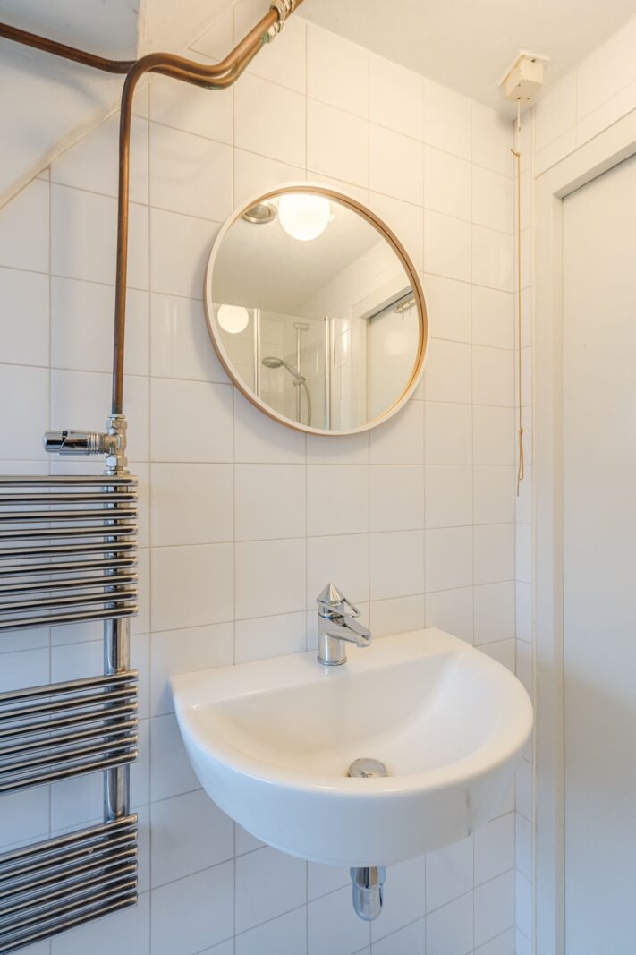 Het sanitair in de hoofdwoning is circa 10 jaar geleden gemoderniseerd en er is een moderne HR ketel aanwezig die ook het atelier voorziet van warmte in de winterdagen. De open keuken bestaat uit Bruynzeel kastjes en is eenvoudig maar wel voorzien van een modern fornuis en afzuiginstallatie.