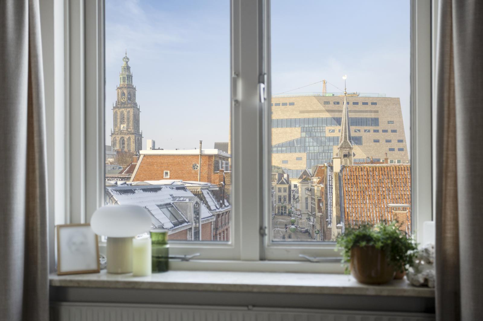 Het appartement heeft een woonoppervlakte van 76 m² en is voorzien van twee ruime slaapkamers, een recent vernieuwde badkamer (2 jaar geleden) en een gezellig balkon aan de voorzijde. Vanuit de woonkamer en slaapkamer heb je een prachtig uitzicht op de Martinitoren en het Forum.