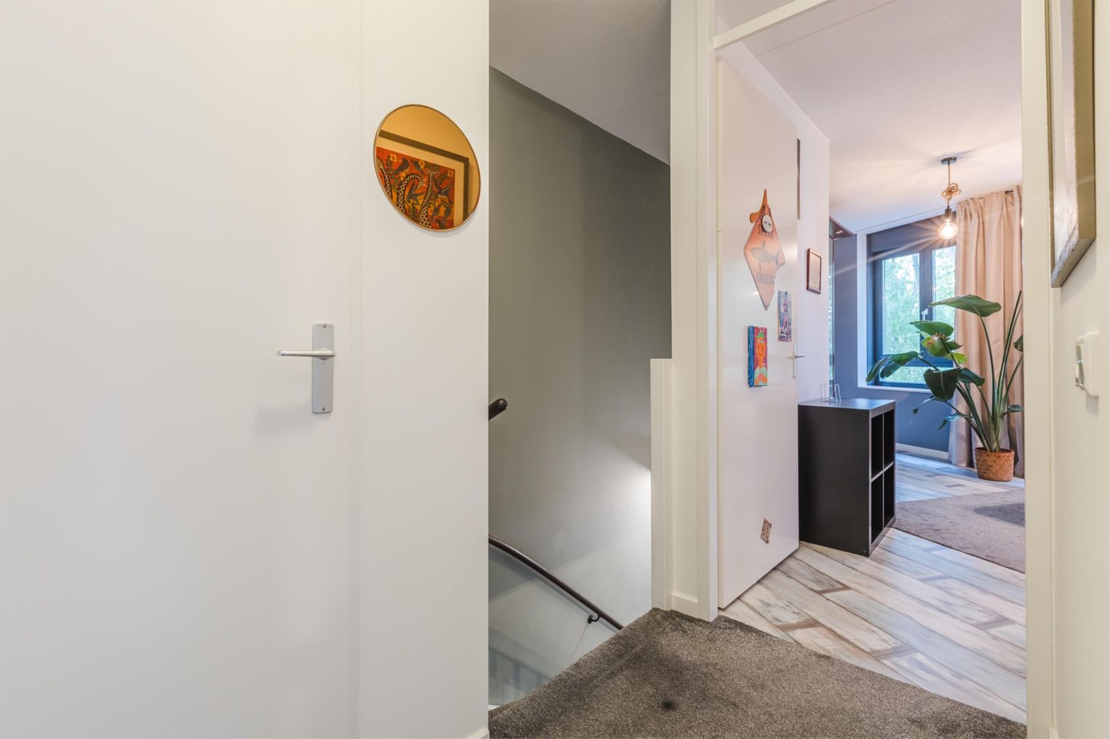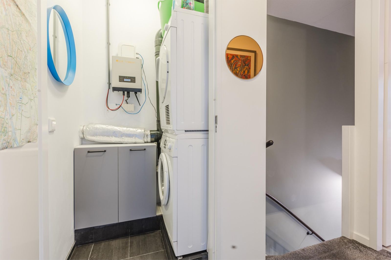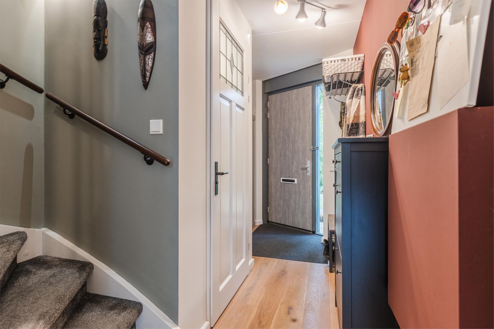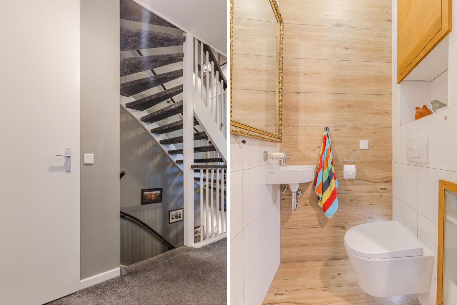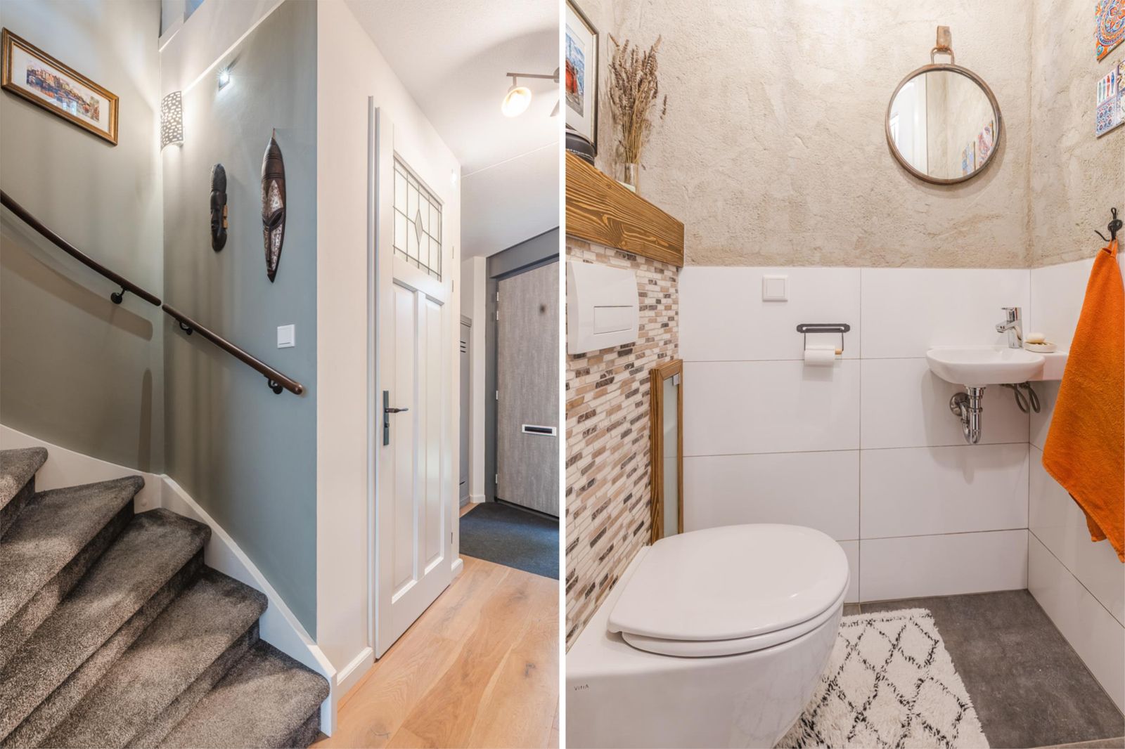 Vanuit de voordeur vindt u de meterkast met glasvezelinternet en stadsverwarming, vervolgens het zwevend toilet en daarnaast de trapopgang.