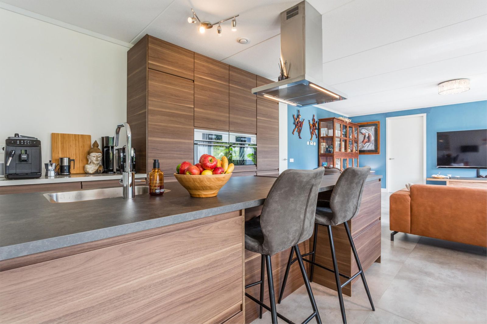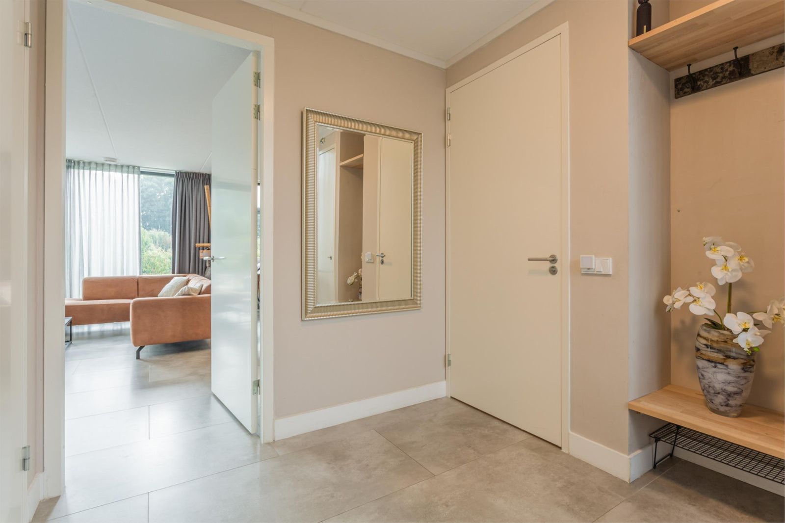 Alles bevindt zich op de begane grond, wat de woning levensloopbestendig maakt. Vanuit de centrale hal heb je toegang tot alle vertrekken. De lichte woonkamer met open keuken en kookeiland is het hart van de woning. Vanuit hier stap je via een brede schuifpui of deur naar de heerlijke tuinkamer, een fijne plek om al vroeg in het jaar van de zon te genieten. De woning heeft vier riante slaapkamers en twee badkamers. De masterbedroom is voorzien van een inloopkast en een eigen badkamer met ligbad. Er is een aparte bijkeuken voor extra opbergruimte.