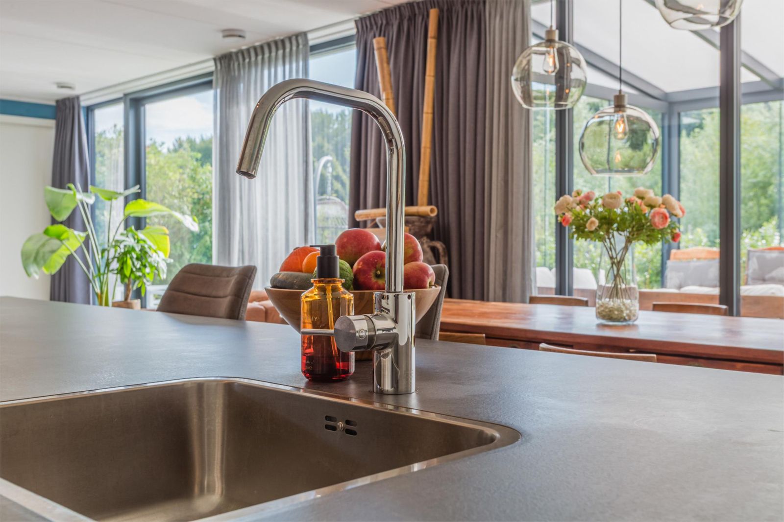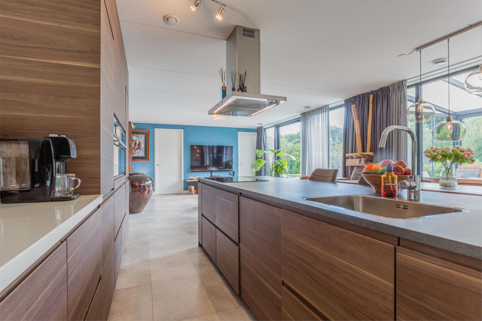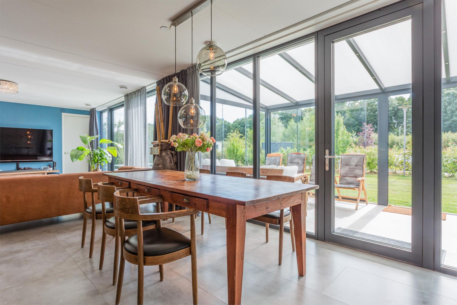 De woning is ontworpen rondom de zonnige, centraal gelegen woonkamer van circa 50 m², met veel glas, waardoor je geniet van een prachtig uitzicht over je eigen groene perceel. De ligging aan een straat zonder doorgaand verkeer garandeert optimale rust en privacy.