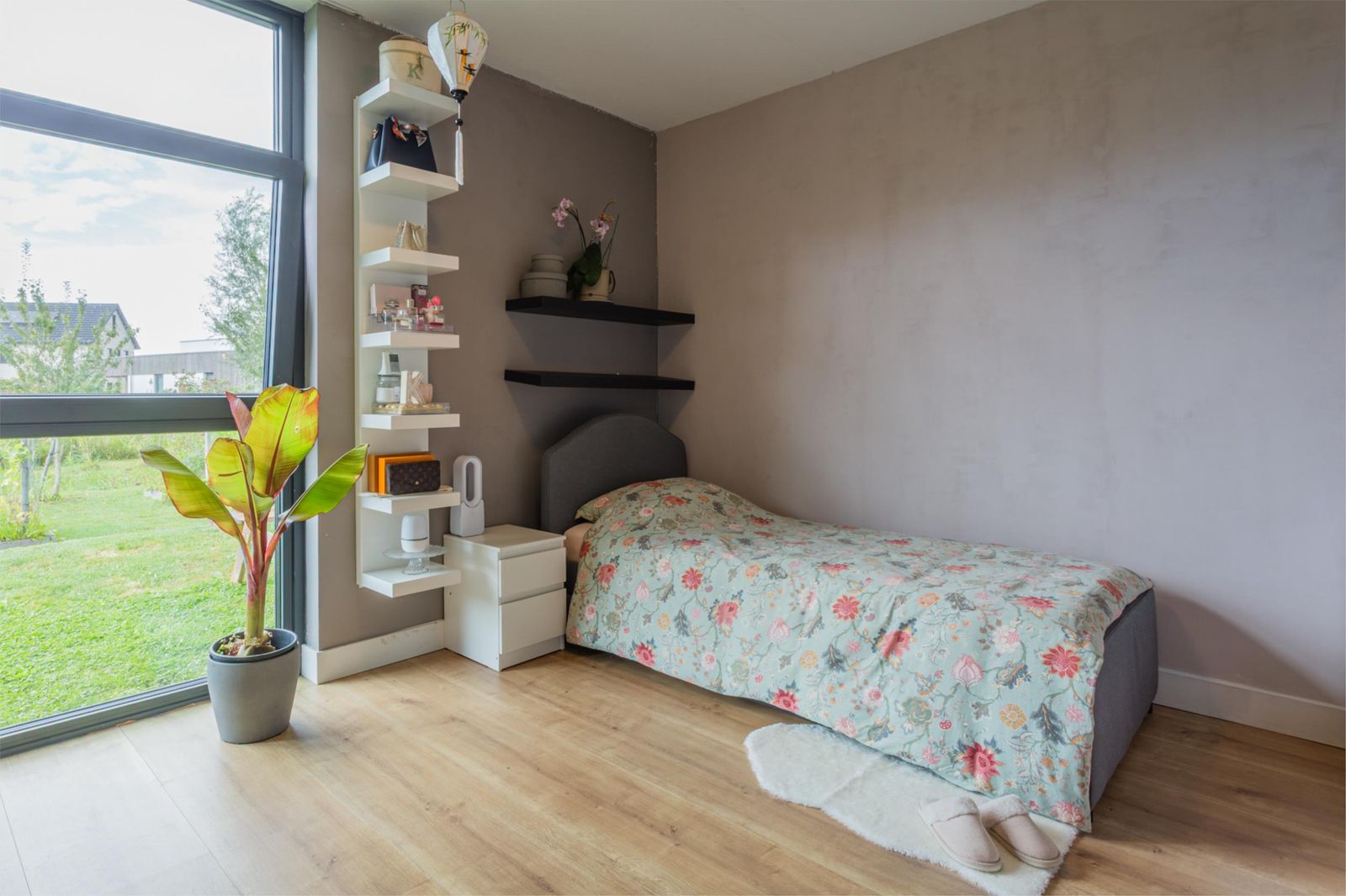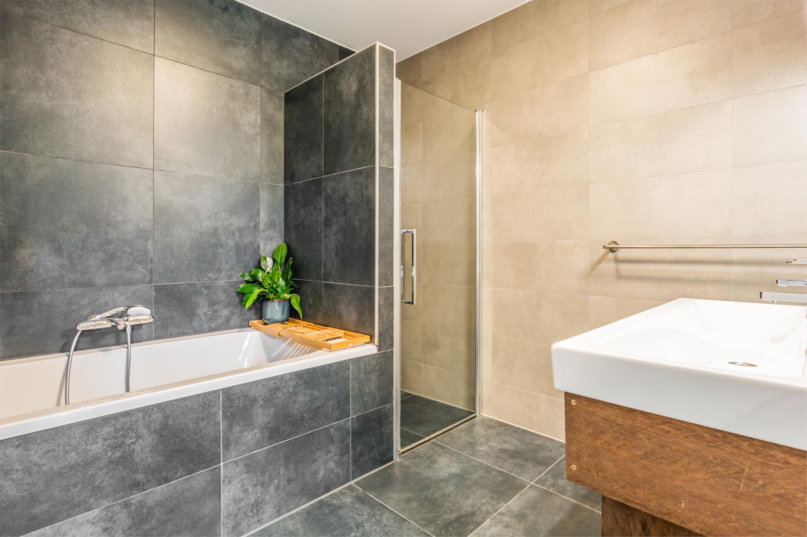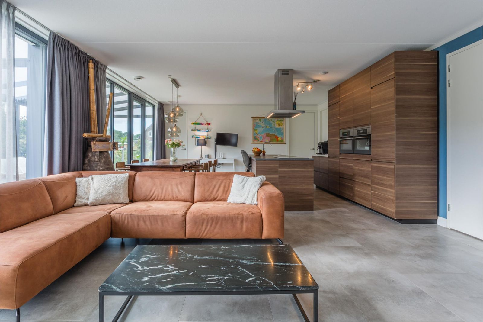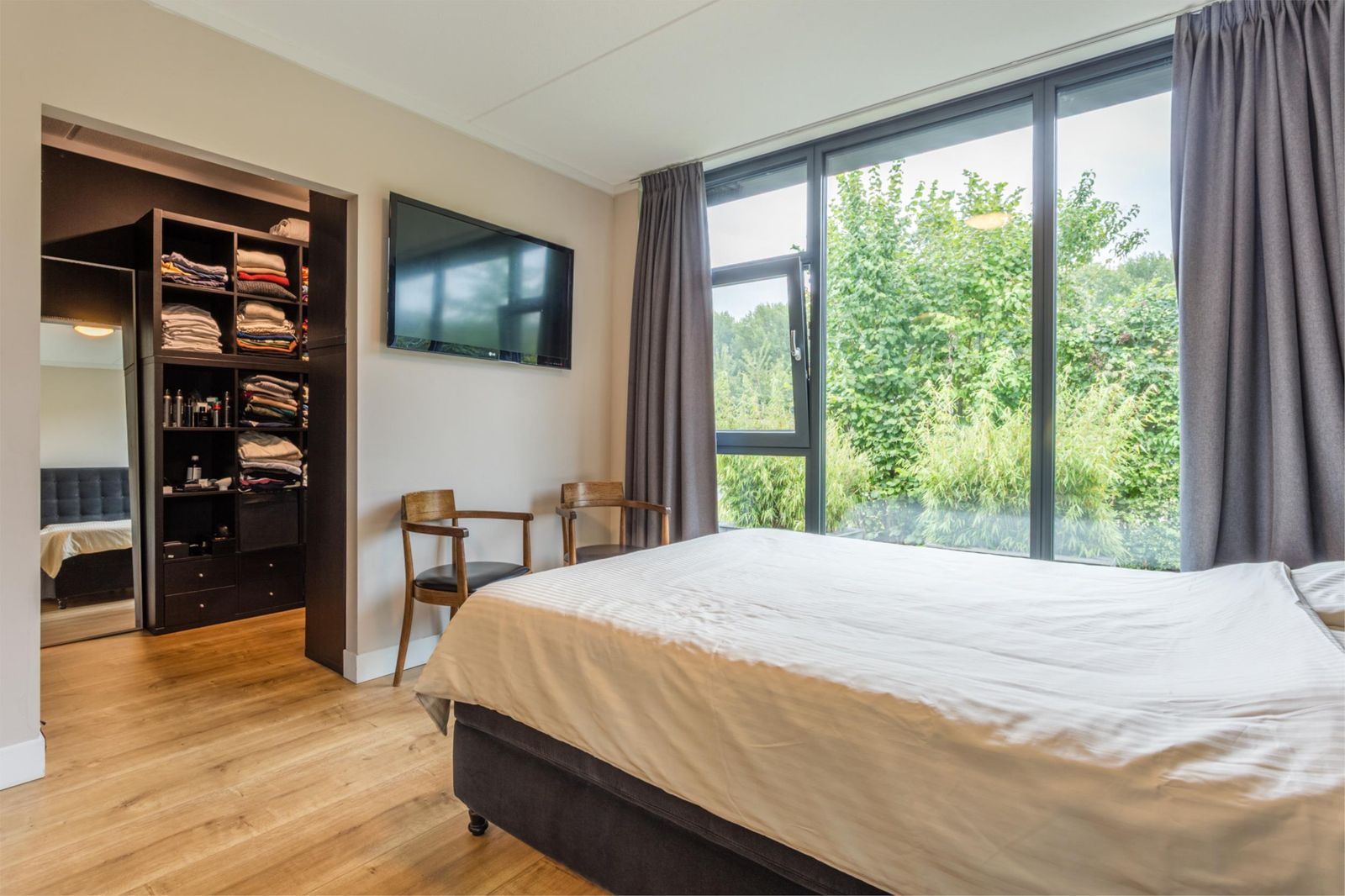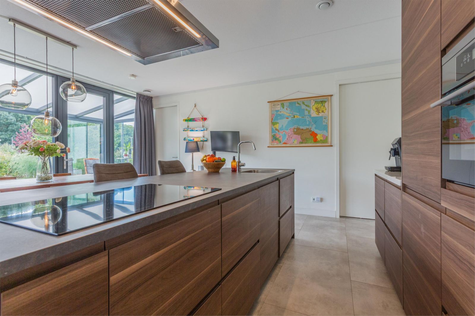 * Niet alleen is er vloerverwarming in alle ruimtes, maar ook vloerkoeling, wat zorgt voor een aangename temperatuur in de zomer zonder veel energie te verbruiken.