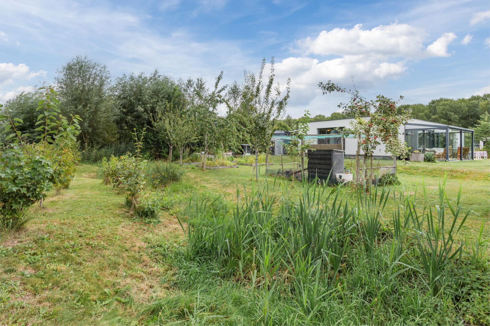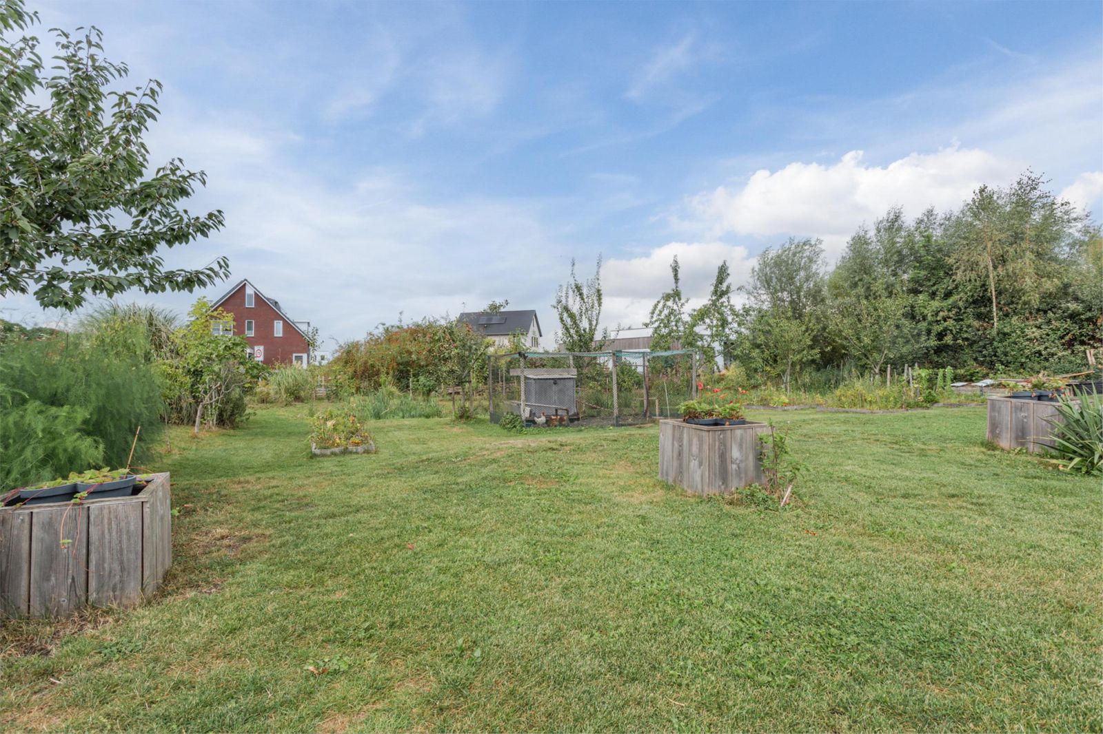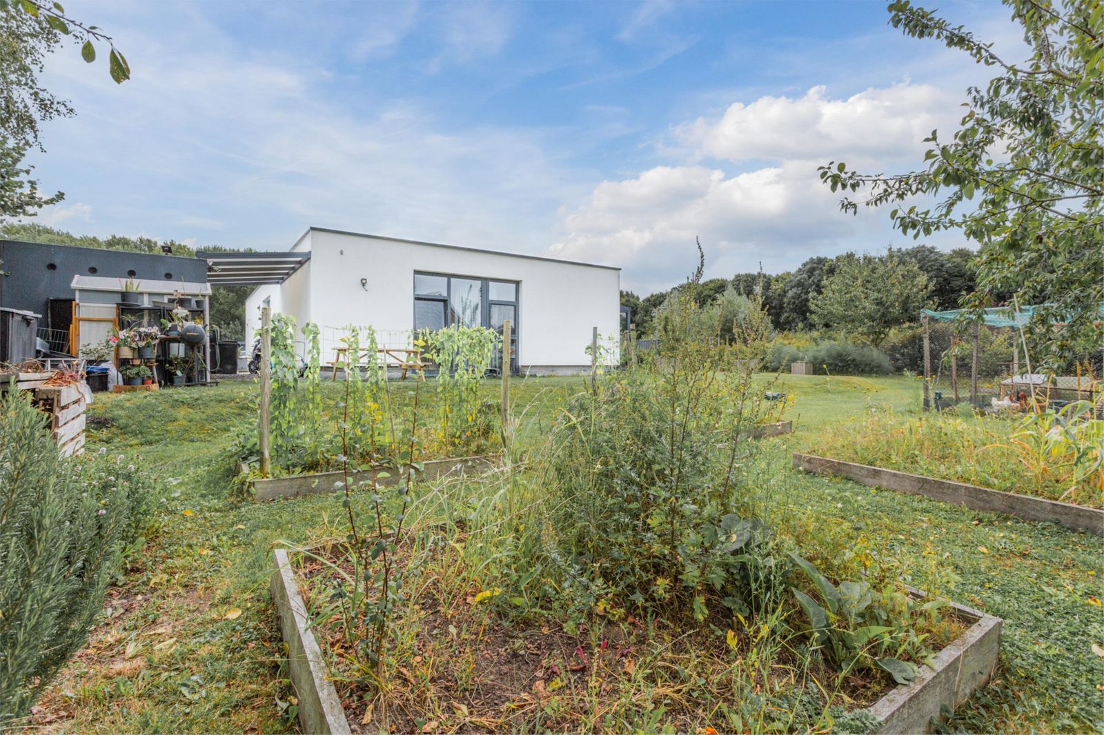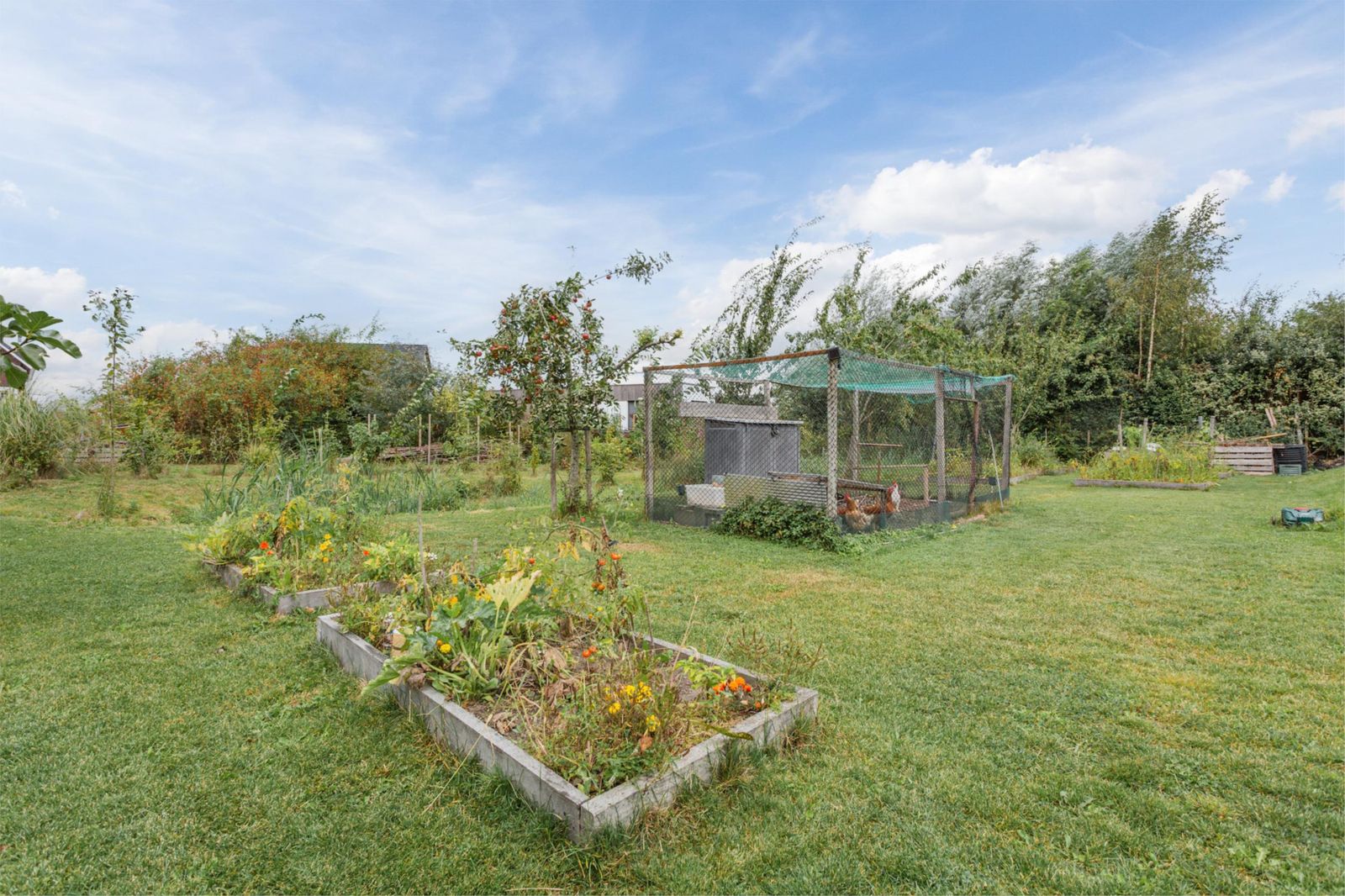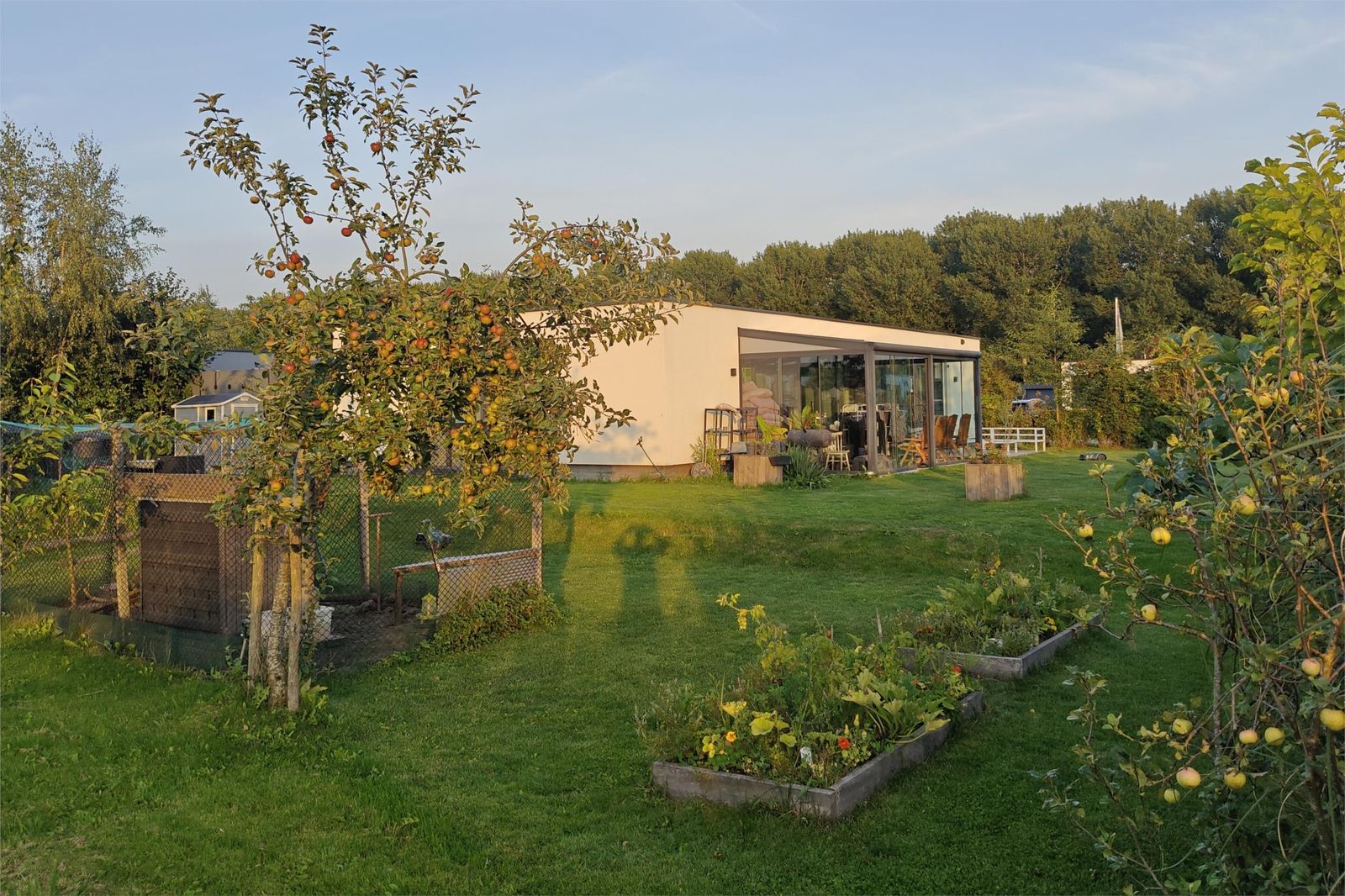 Op je eigen perceel ben je verplicht om een deel van de grond te gebruiken voor stadslandbouw, waar de huidige indeling al rekening mee houdt. De ruime kavel is prachtig aangelegd met diverse fruitbomen en struiken en biedt volop mogelijkheden voor de verdere inrichting van je eigen eetbare tuin.