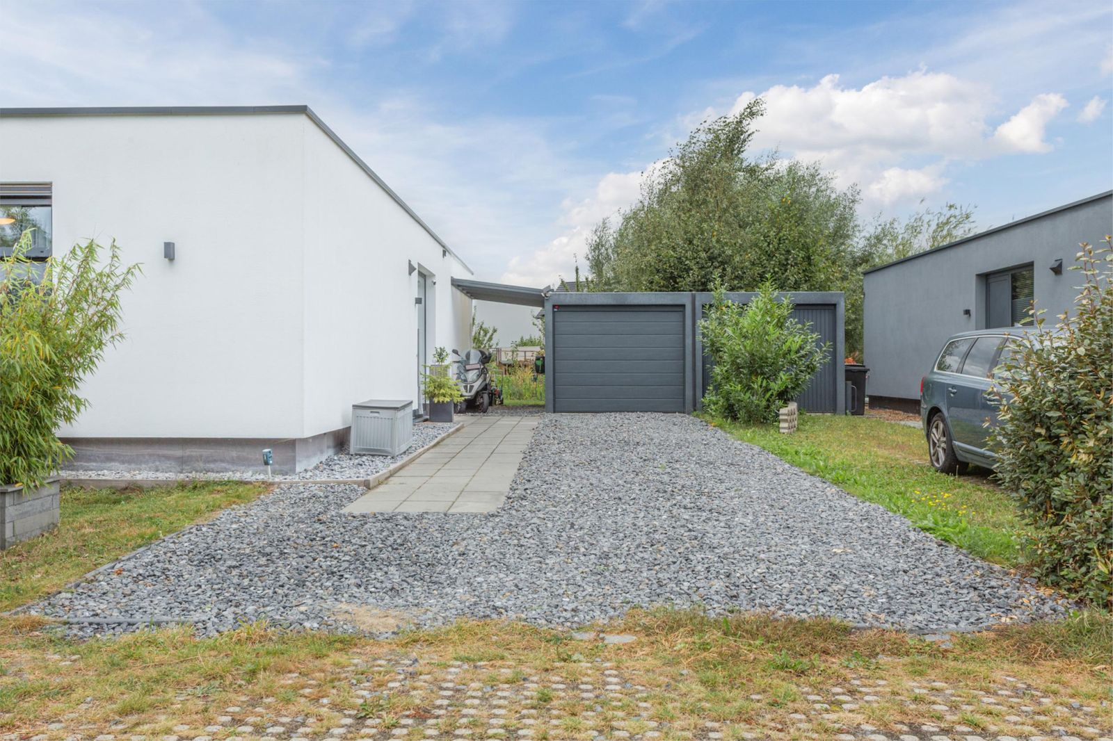 * De oprit biedt ruimte voor het parkeren van meerdere auto's.