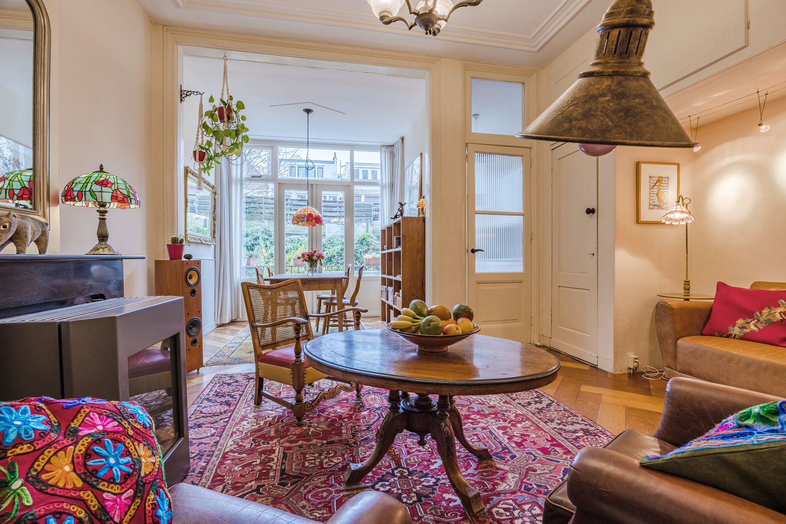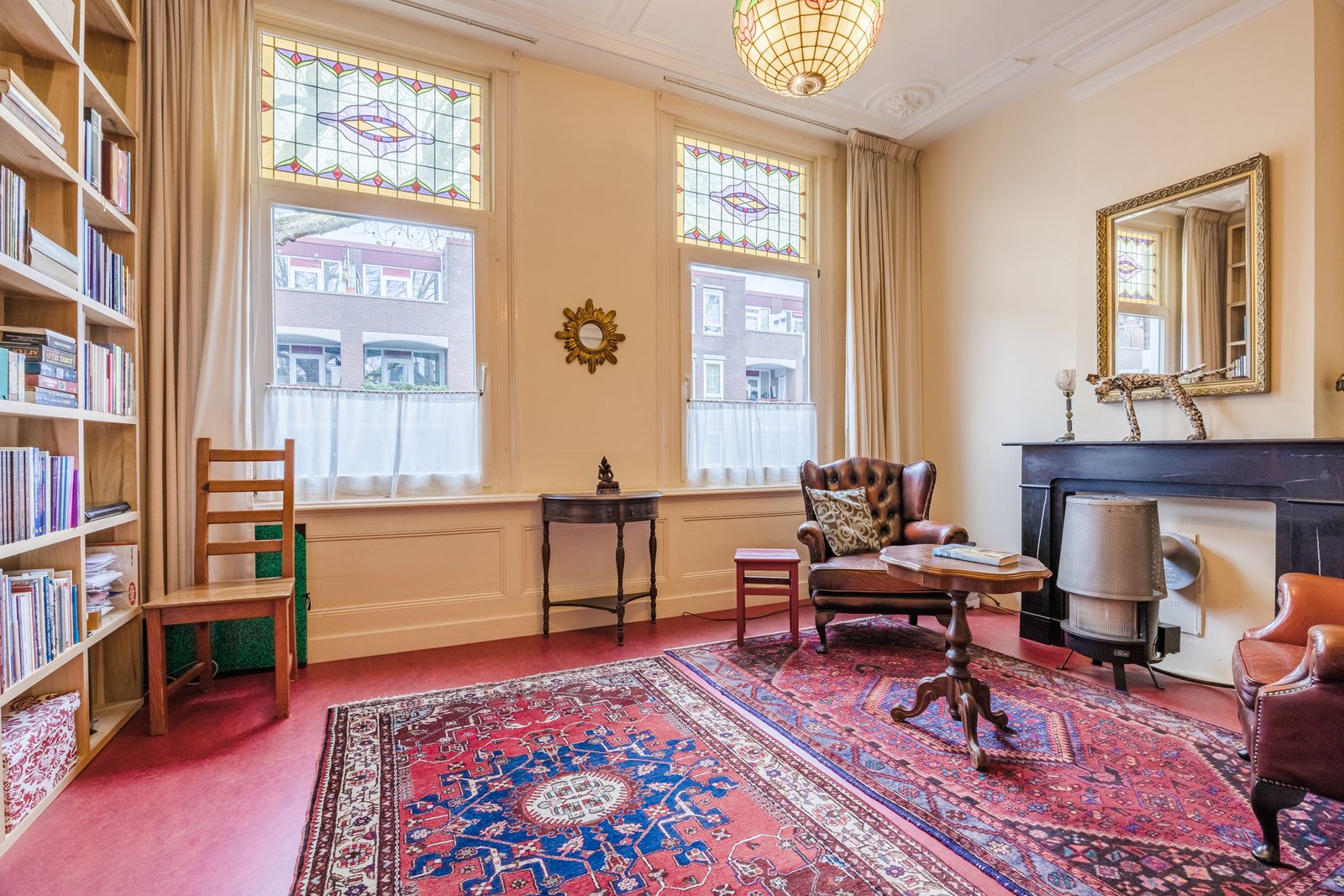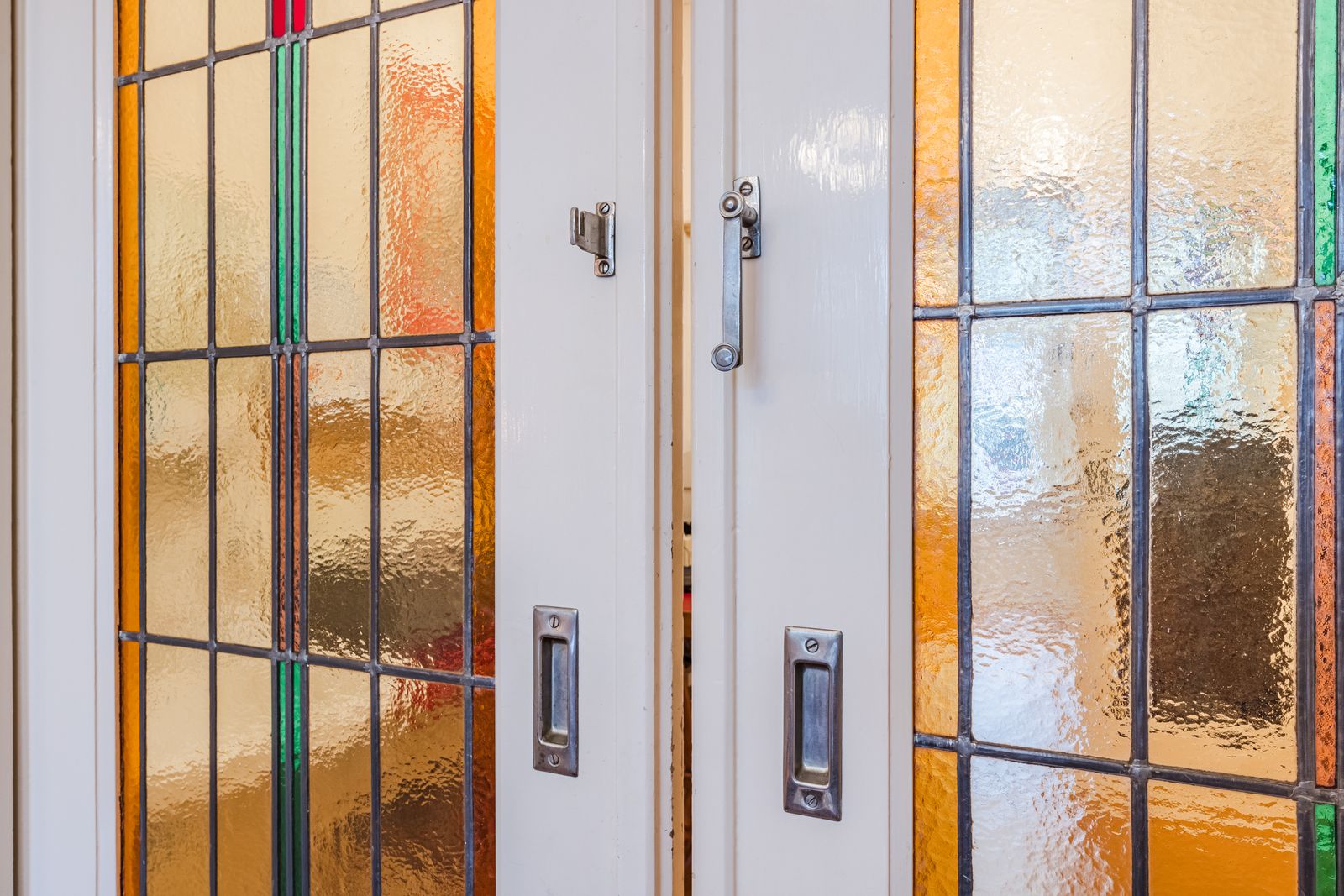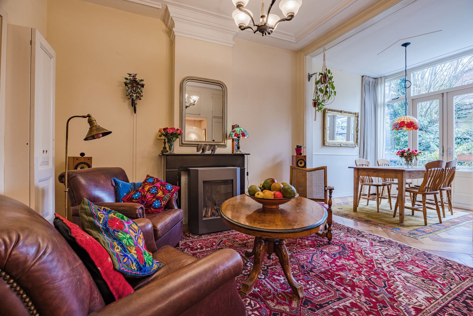 De ornamentenplafonds, gezandstraalde glazen tussendeur, originele paneeldeuren, inbouwkasten en glas-in-lood-schuifdeuren brengen de sfeer van vroeger op een bijzondere manier tot leven. Zelfs het karaktervolle hang- en sluitwerk verdient de aandacht. Ook de buitenzijde van de woning draagt nog de oorspronkelijke ornamenten, waardoor het geheel zijn historische uitstraling volledig behouden heeft.