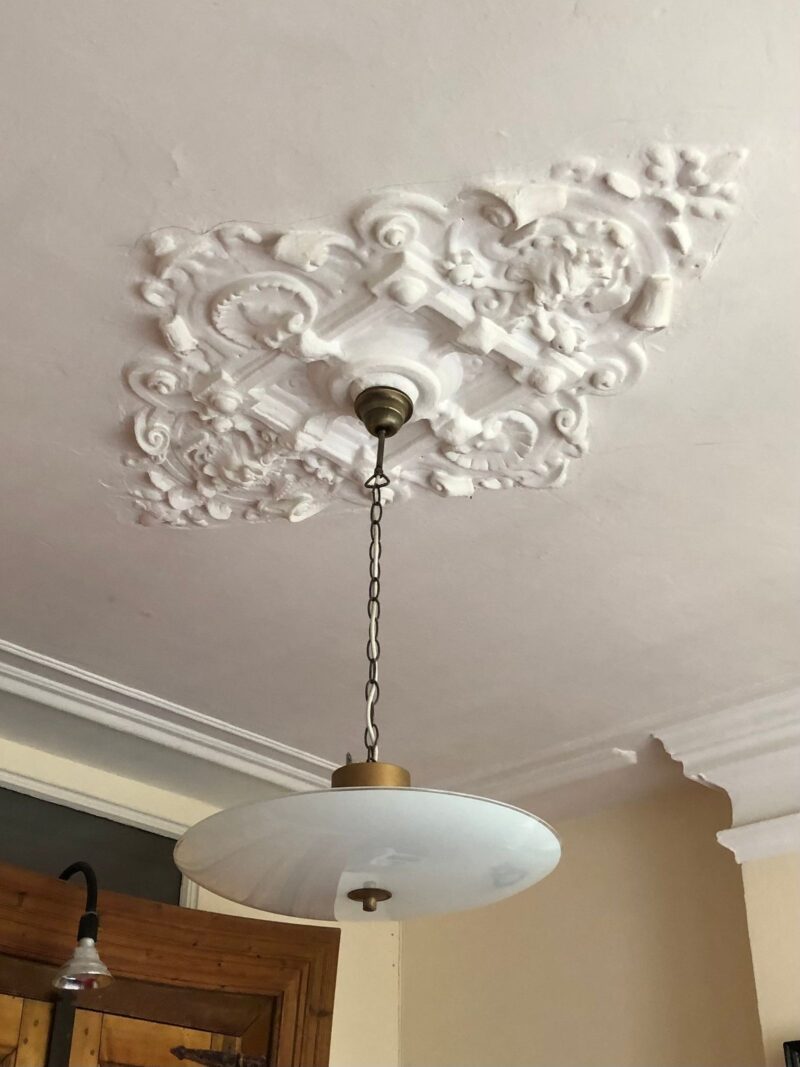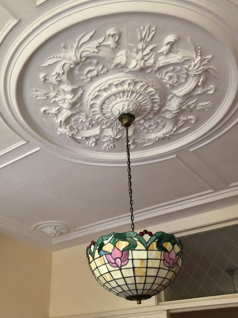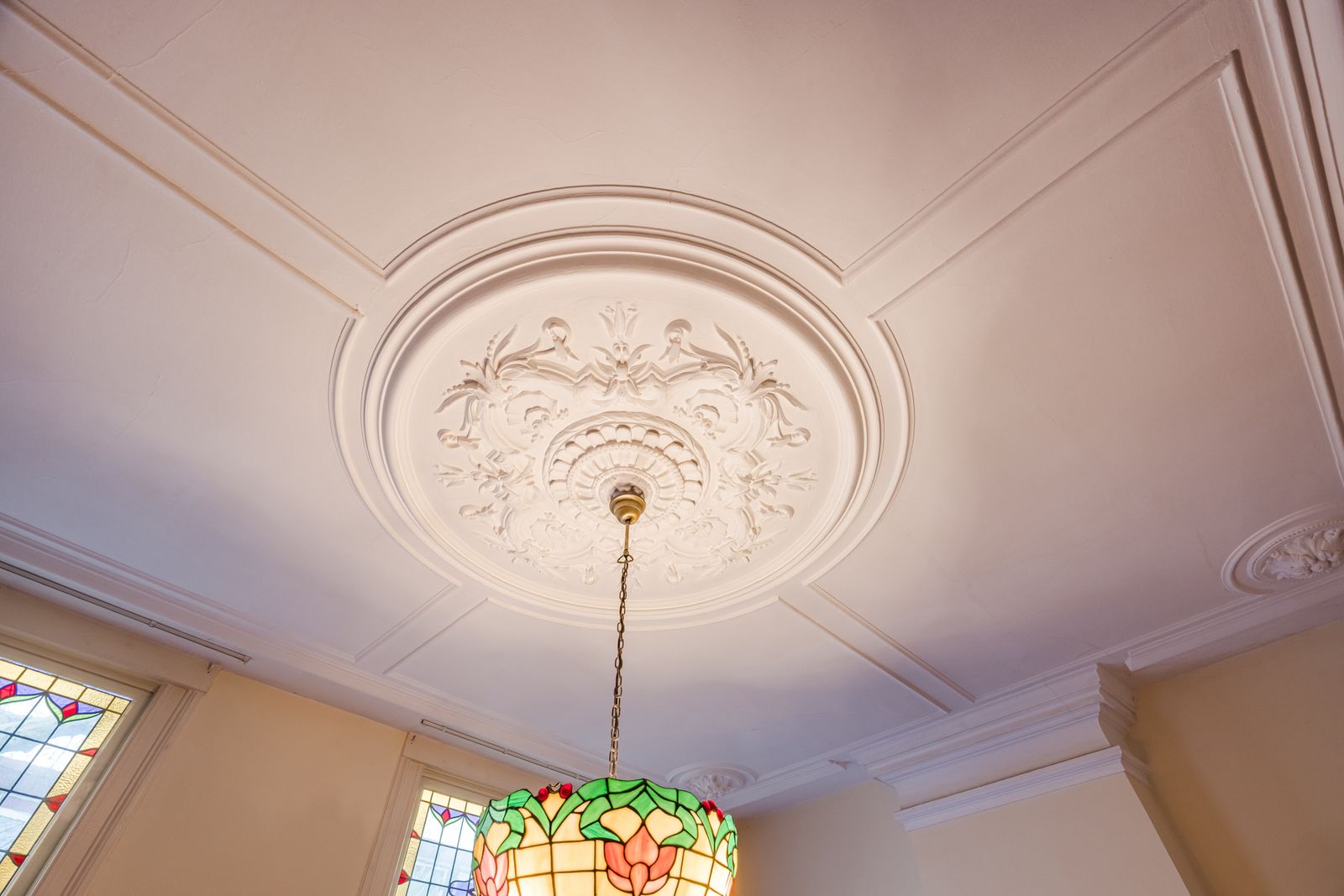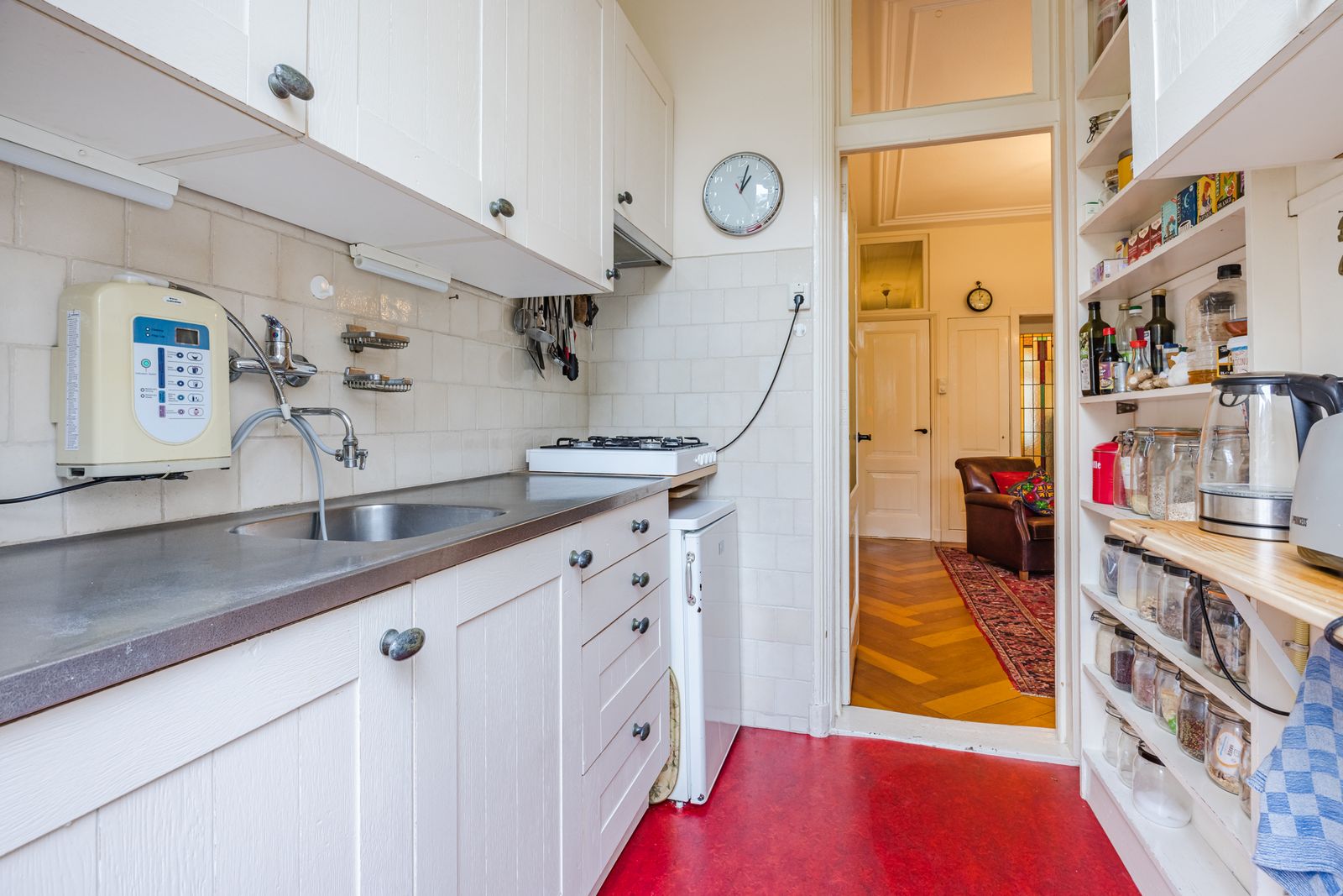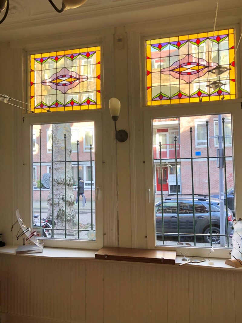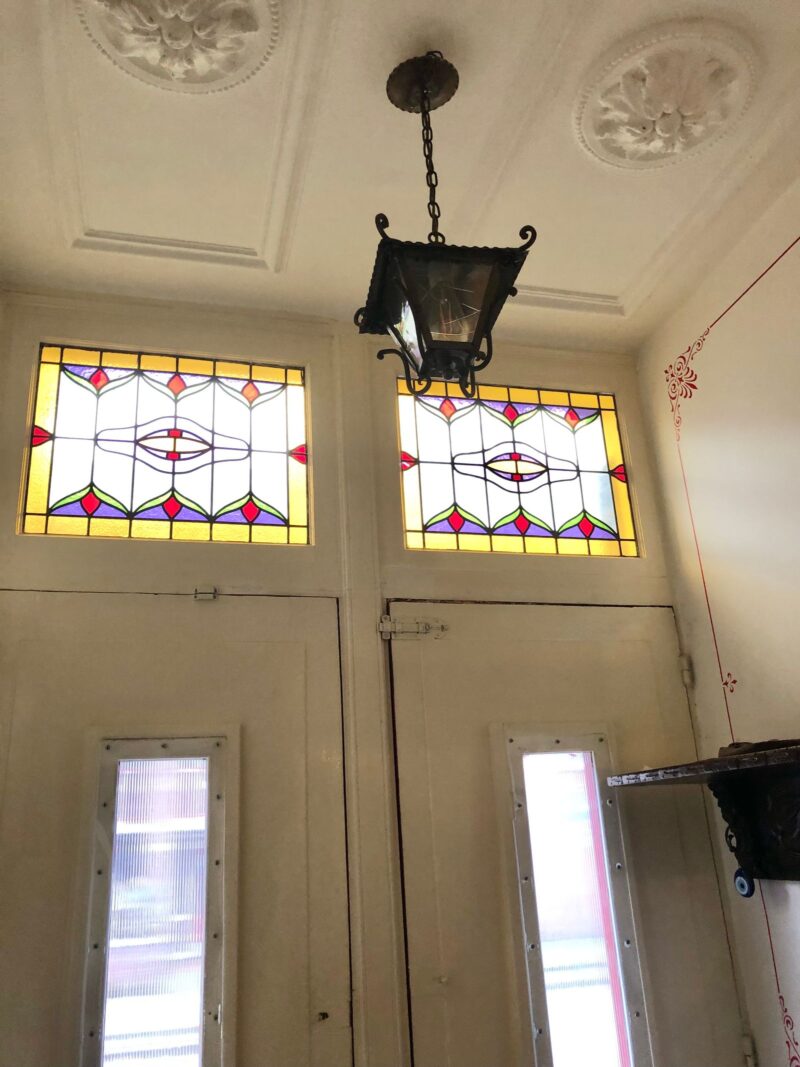 De ornamentenplafonds, gezandstraalde glazen tussendeur, originele paneeldeuren, inbouwkasten en glas-in-lood-schuifdeuren brengen de sfeer van vroeger op een bijzondere manier tot leven. Zelfs het karaktervolle hang- en sluitwerk verdient de aandacht. Ook de buitenzijde van de woning draagt nog de oorspronkelijke ornamenten, waardoor het geheel zijn historische uitstraling volledig behouden heeft.