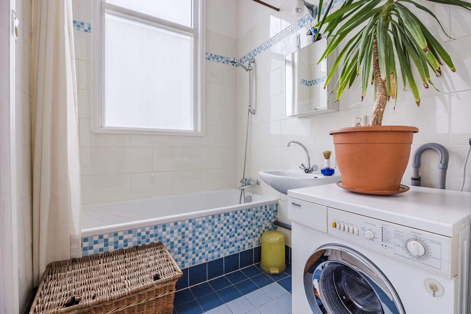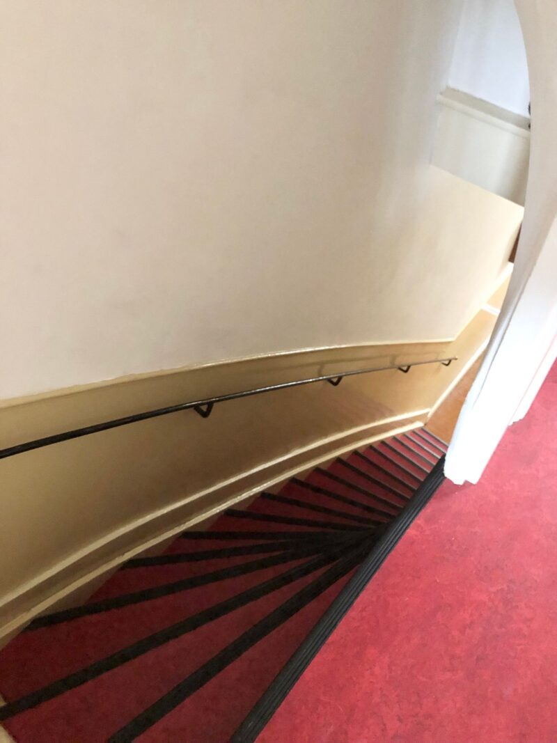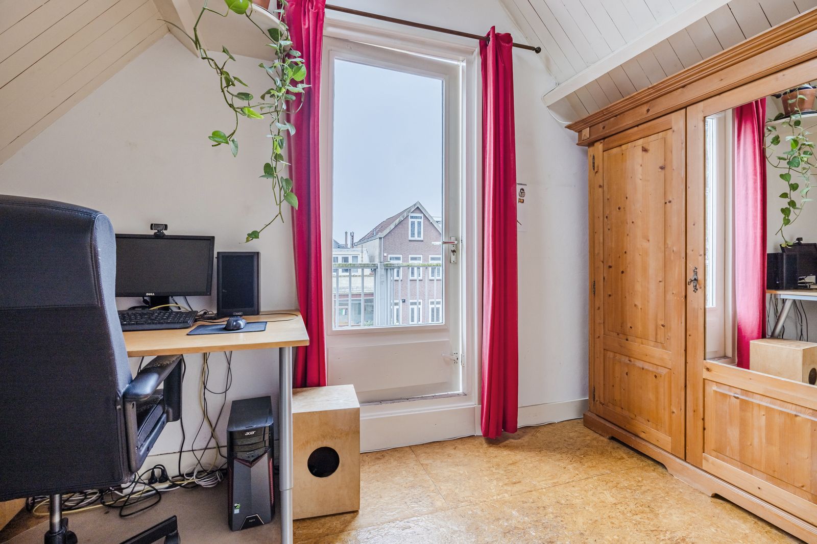 De trappenhuizen, de gangen en de ruime en lichte slaapkamers aan de voor- en achterzijde zijn voorzien van verzorgd linoleum. Aan de achterkamer grenst de tweede badkamer, uitgerust met een ligbad en wasmachine aansluiting. Vanuit deze badkamer is tevens het ruime tweede balkon toegankelijk.