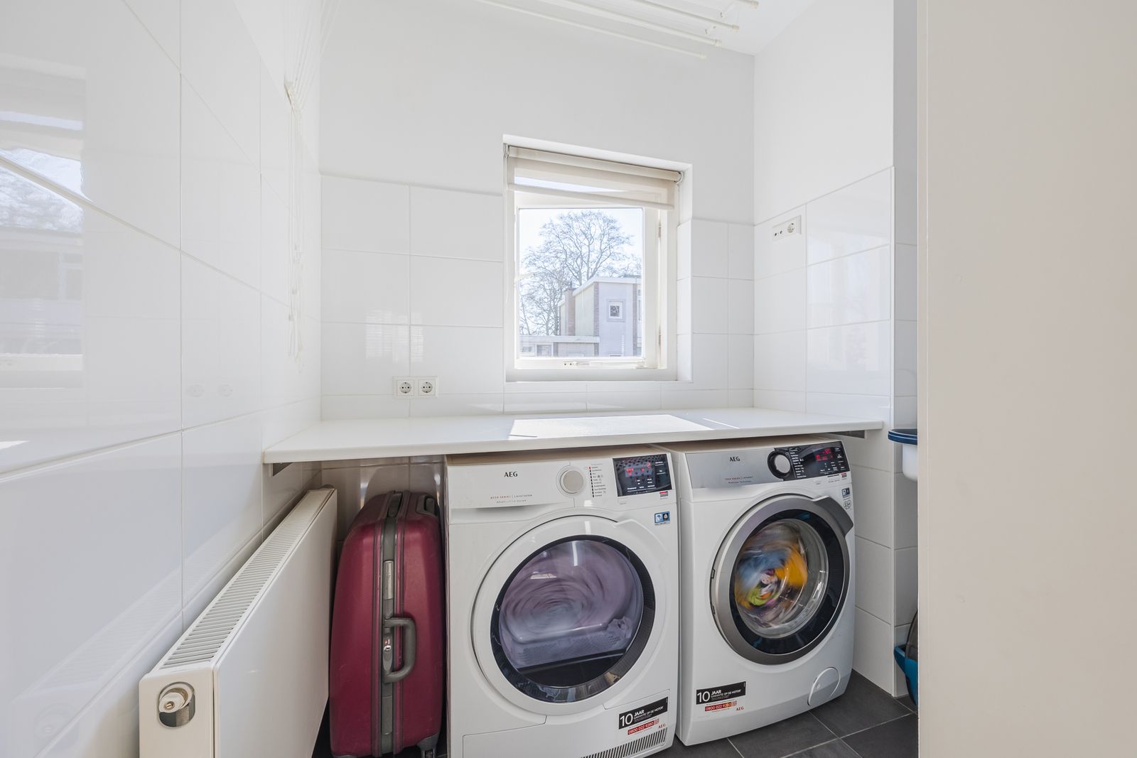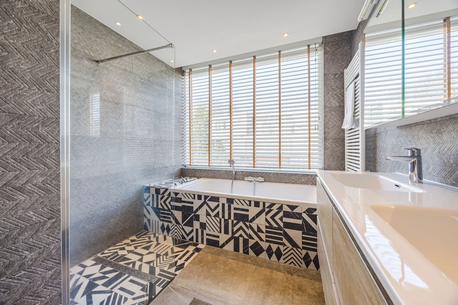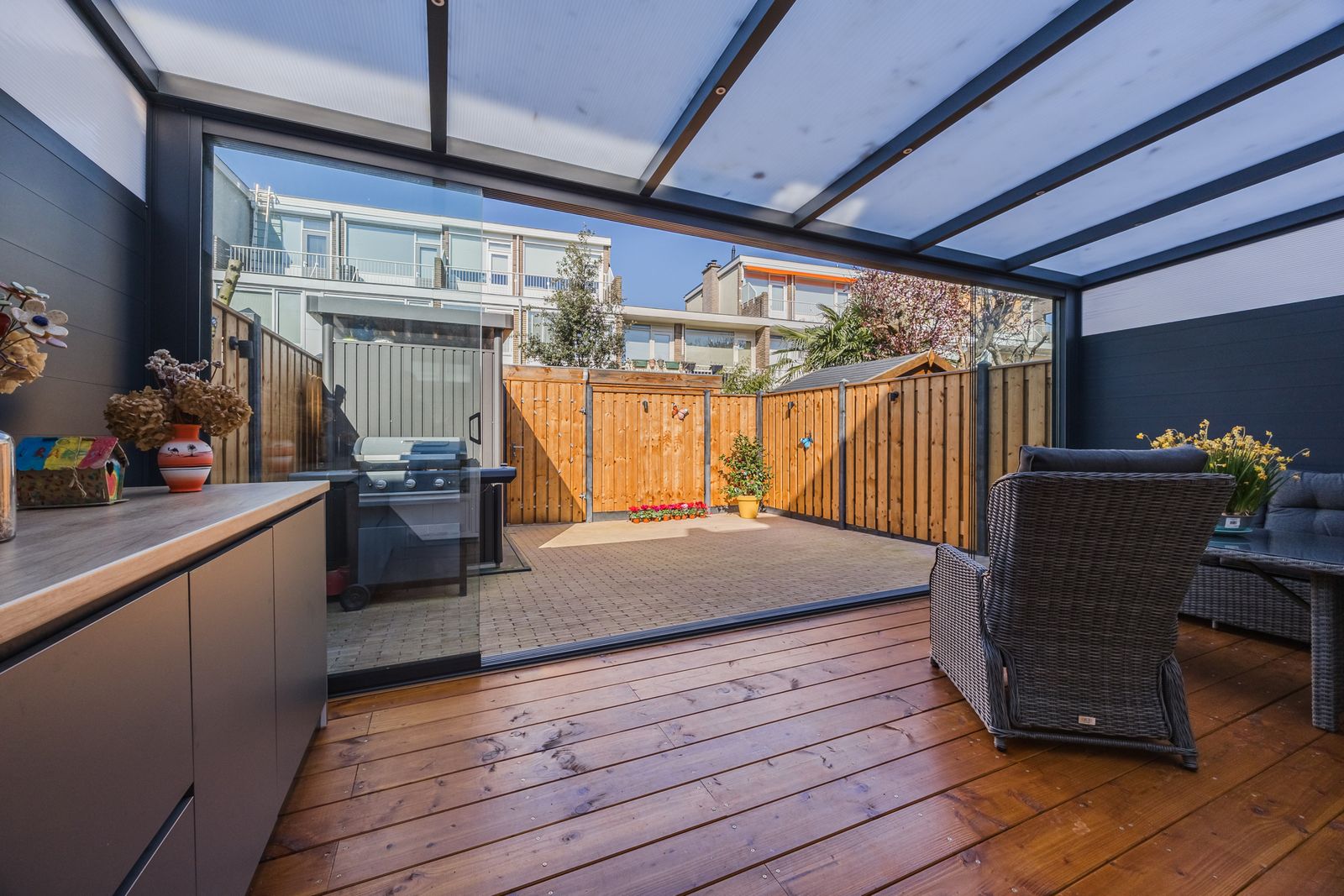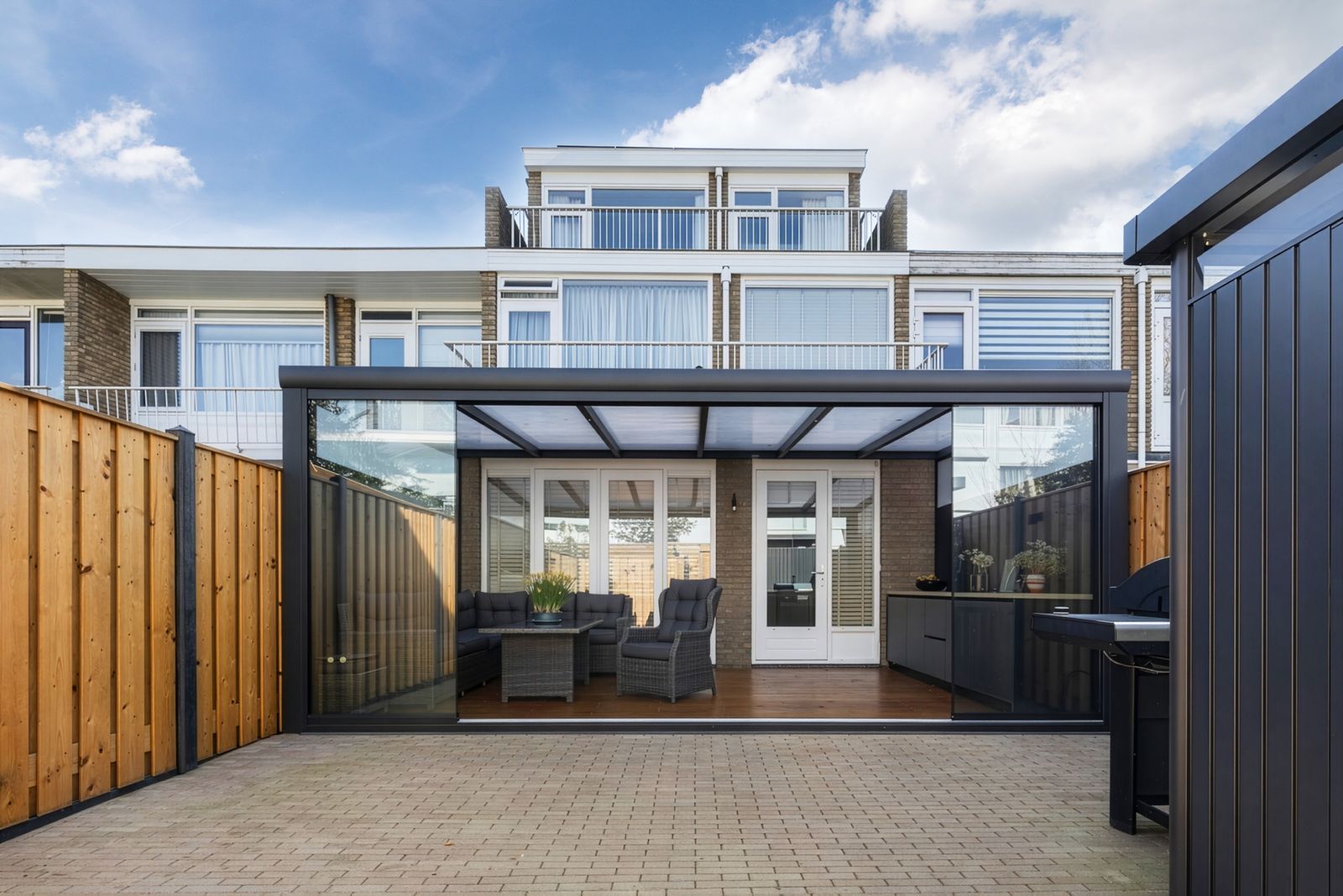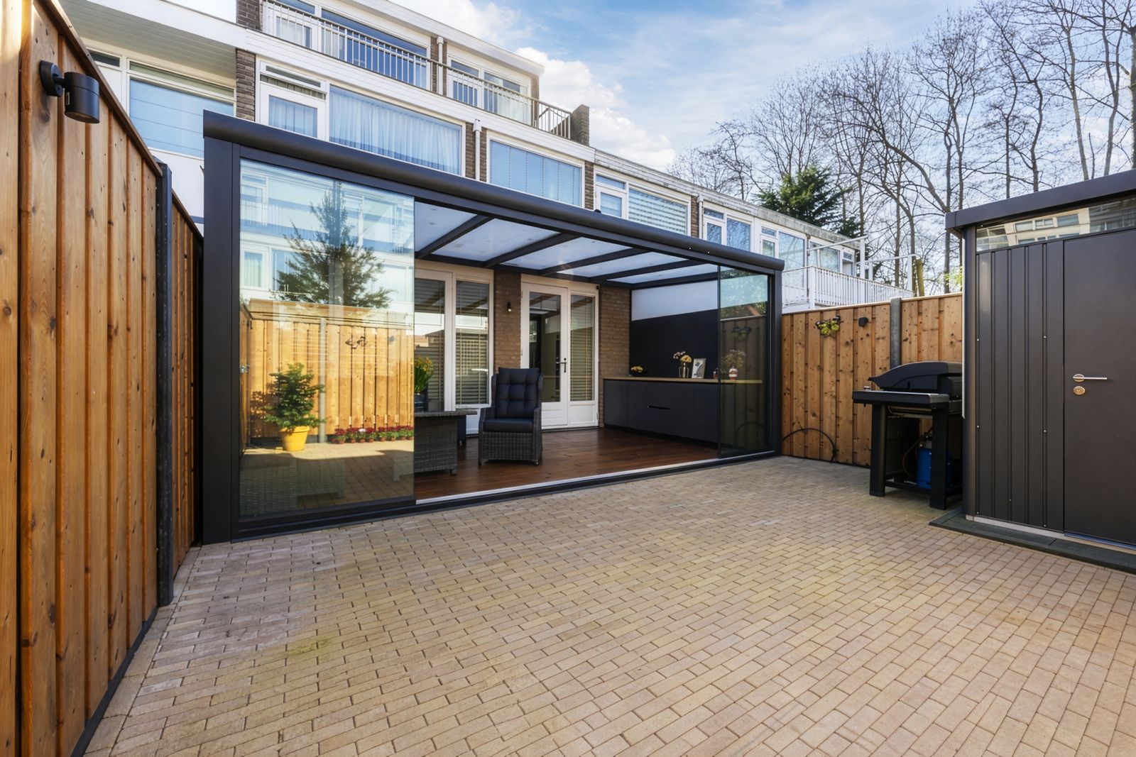 Aan de achterzijde bevindt zich de in 2025 vernieuwde tuin met een hoogwaardige veranda (serre-uitbouw), die zorgt voor een vloeiende overgang tussen binnen en buiten. Deze ruimte is ideaal om het hele jaar door te gebruiken.