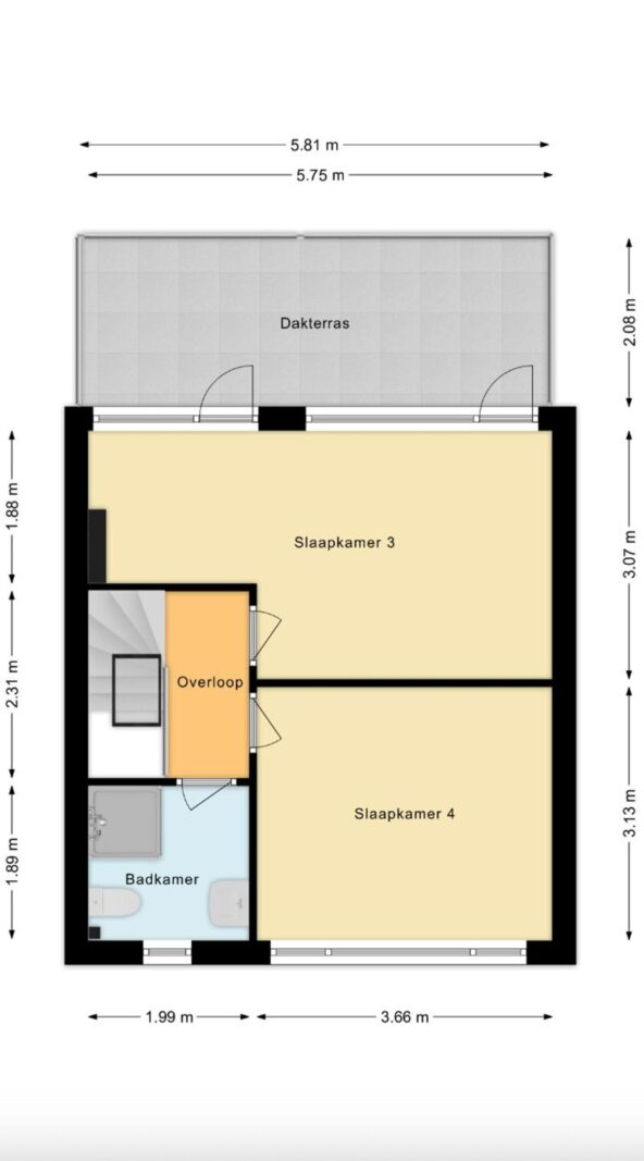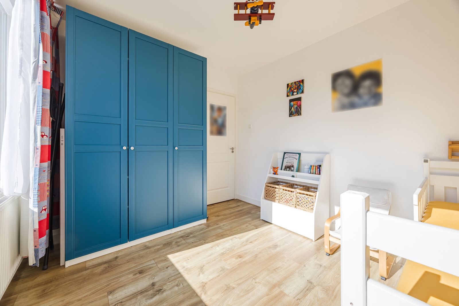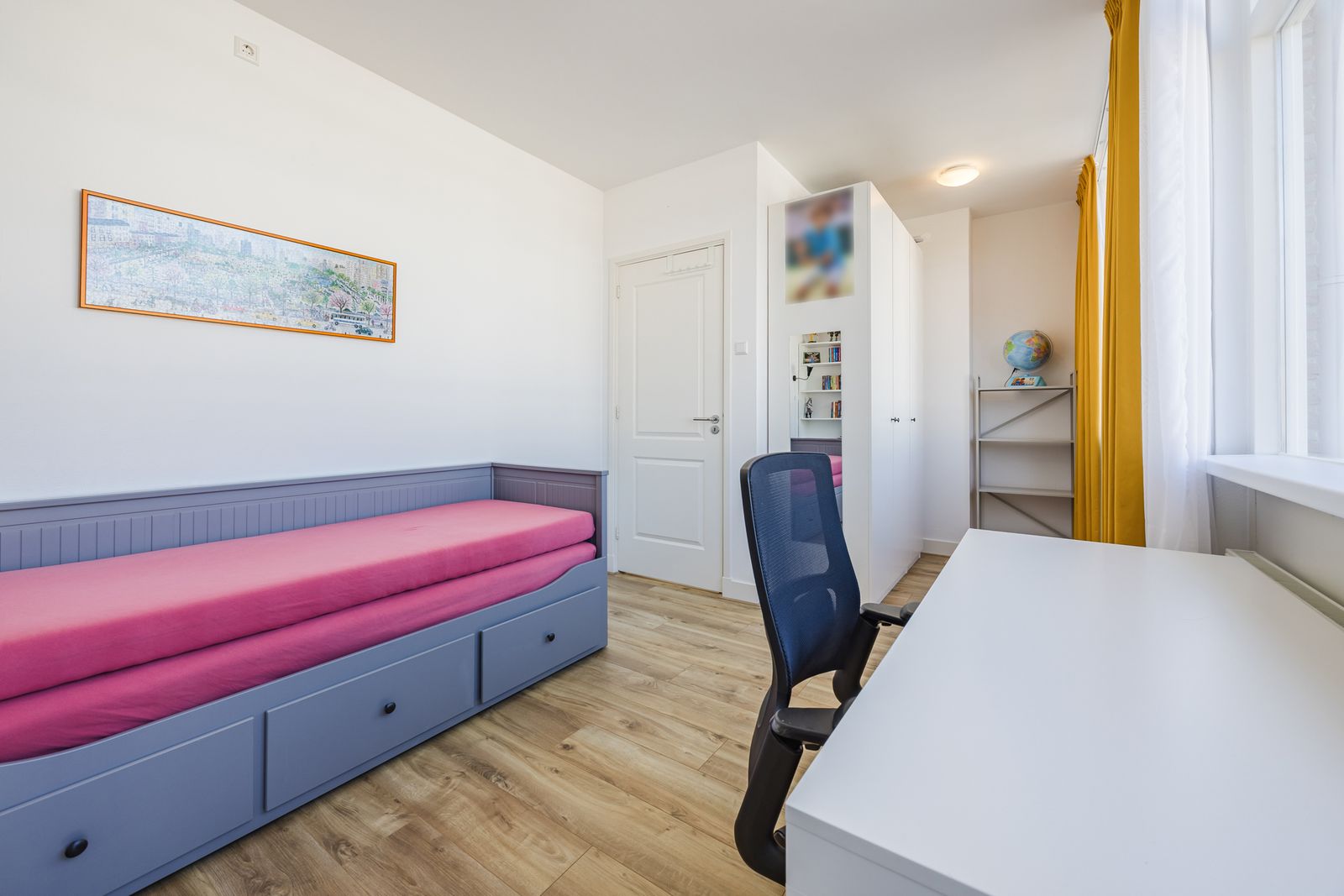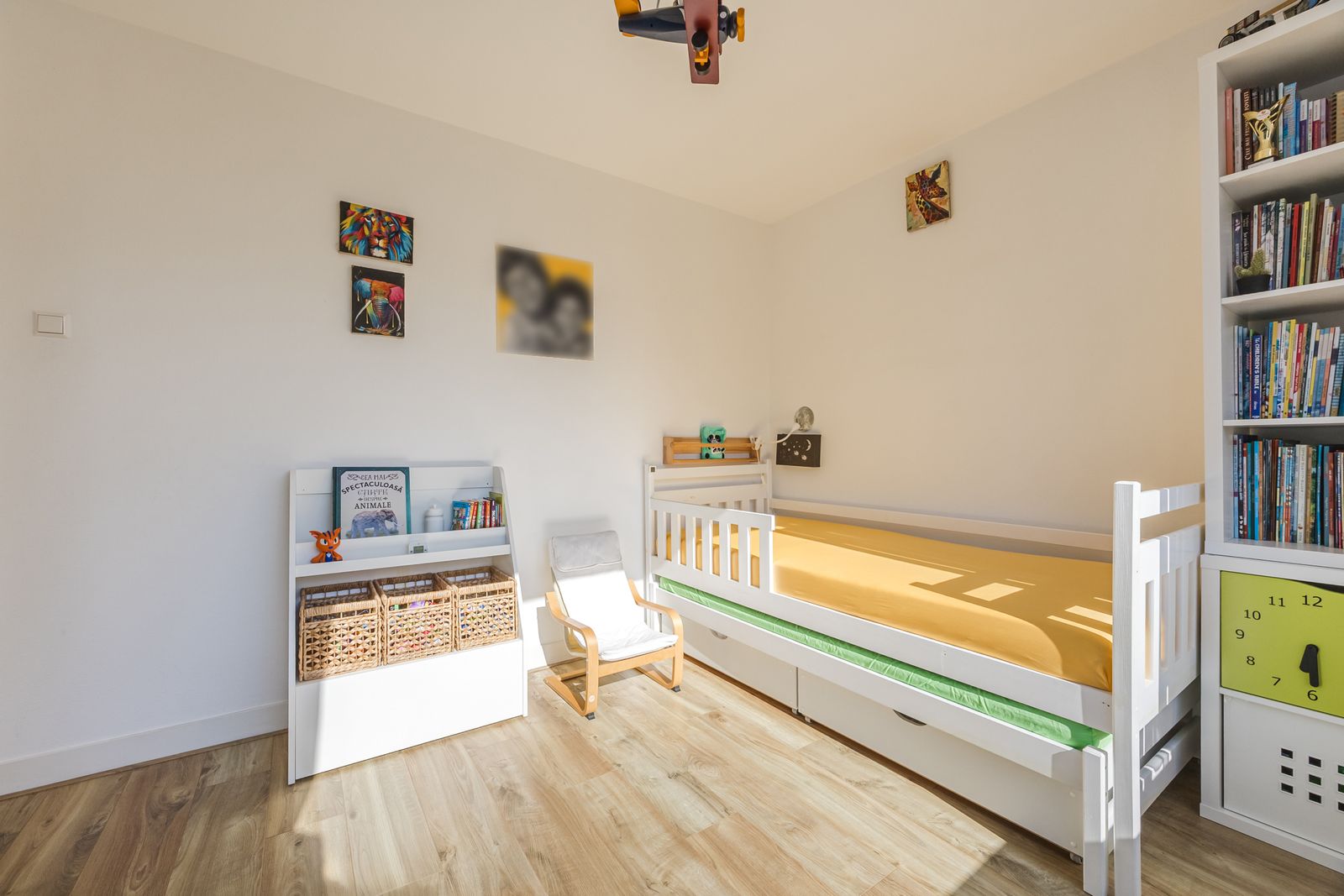 De tweede verdieping biedt nog eens twee slaapkamers en een tweede badkamer. Eén van de kamers geeft toegang tot het zonnige dakterras.