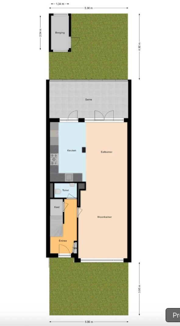 - Vernieuwde tuin (2025) met veranda (serre-uitbouw)