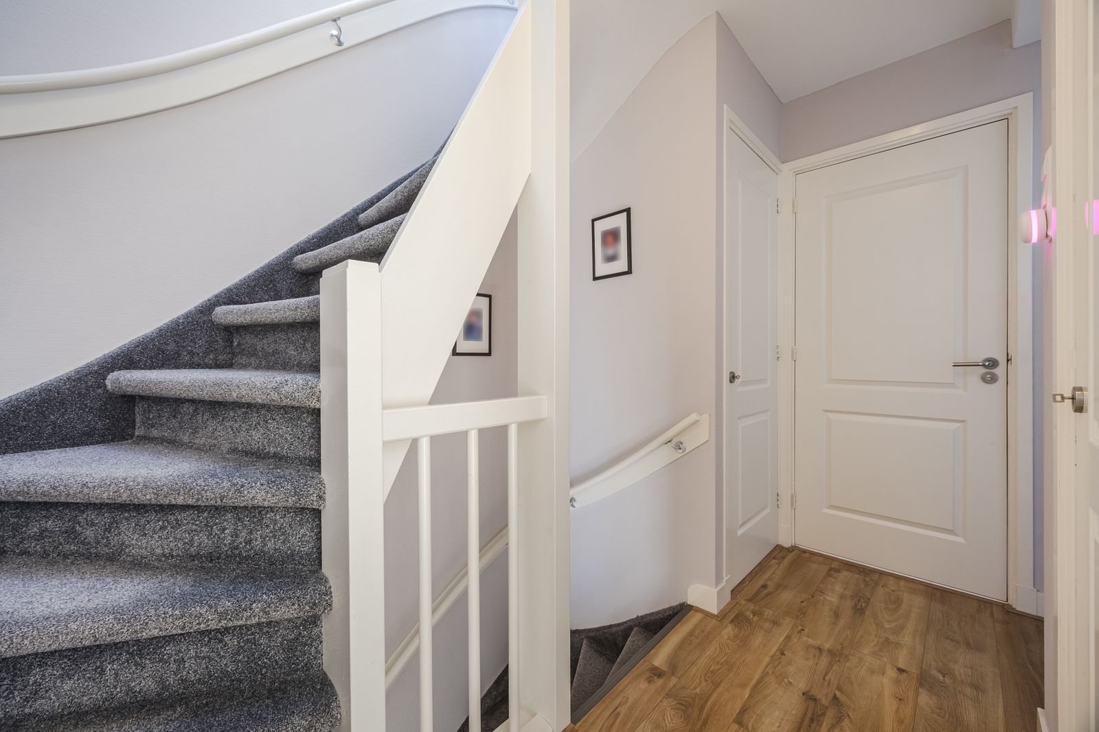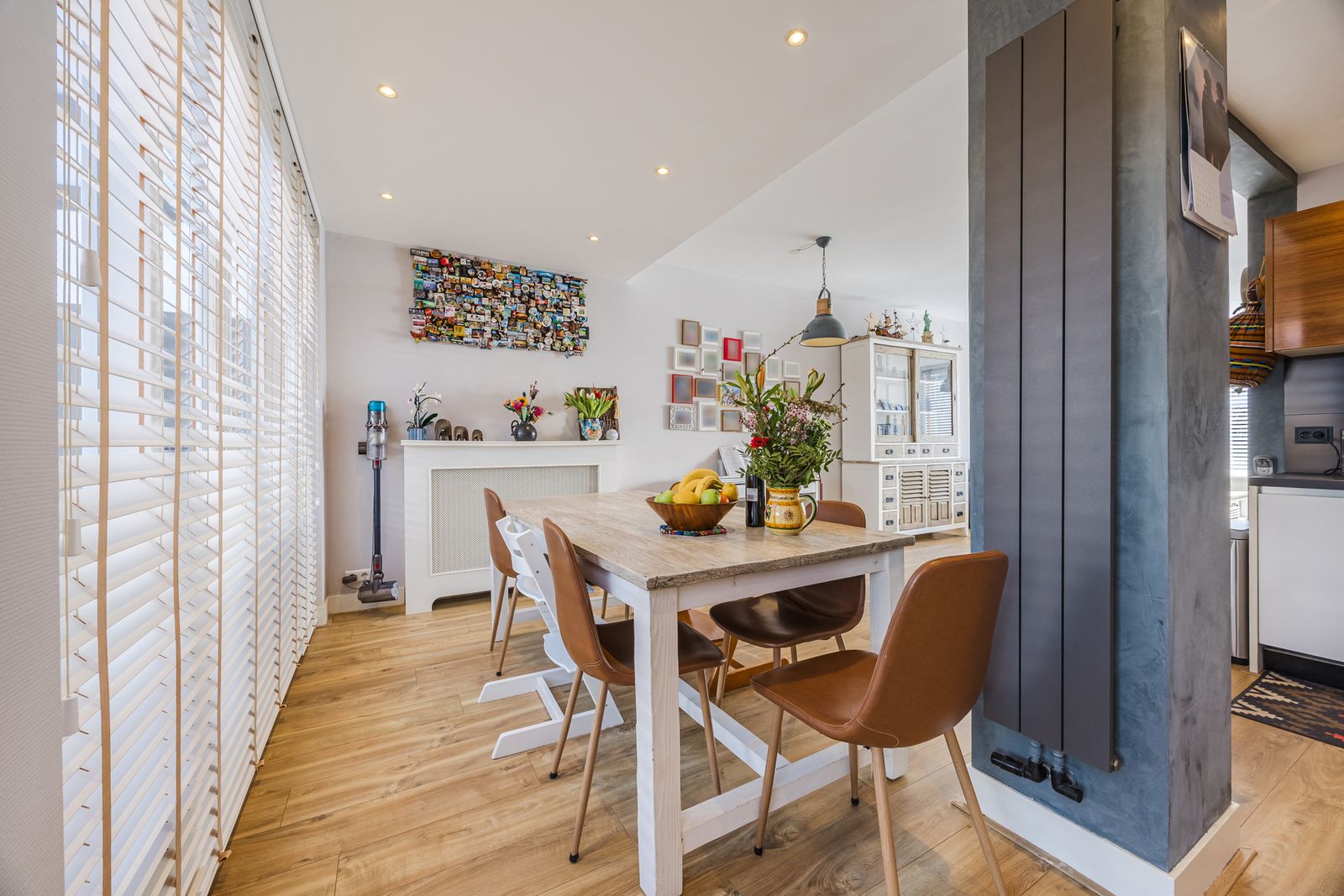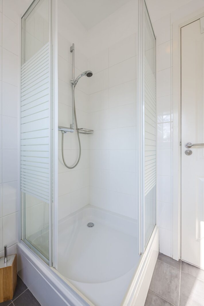 The ground floor is practical and inviting, with a spacious living room seamlessly connected to the open kitchen, creating a central hub for daily life and entertaining. At the rear, the garden was renewed in 2025 and includes a high-quality veranda (conservatory extension), providing a smooth indoor-outdoor flow and a space usable year-round.