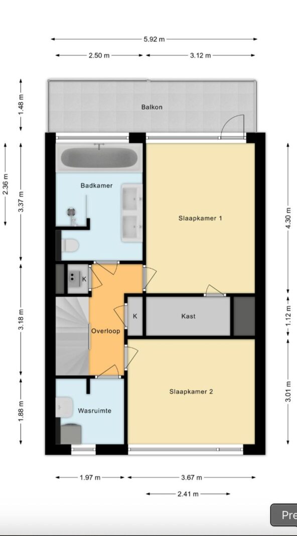 Op de eerste verdieping bevinden zich twee slaapkamers, een badkamer en een aparte wasruimte.