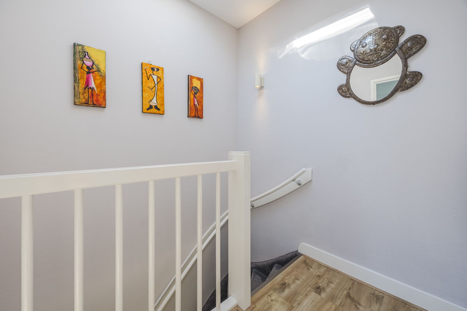 Op de verdiepingen bevinden zich vier goed bemeten slaapkamers, wat flexibiliteit biedt voor gezinnen, thuiswerken of logees. Twee badkamers en een aparte wasruimte zorgen voor extra comfort in het dagelijks gebruik.