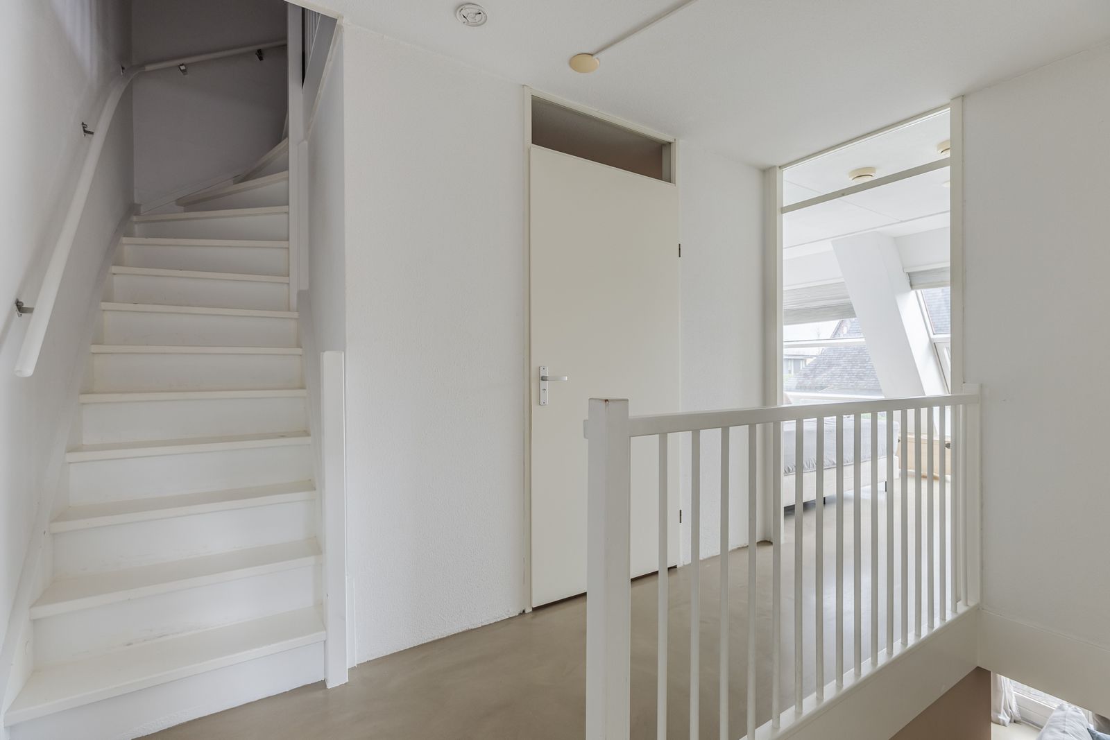 De tweede verdieping met een indrukwekkend hoog plafond en veel daglicht. Nu in gebruik als twee slaapkamers.