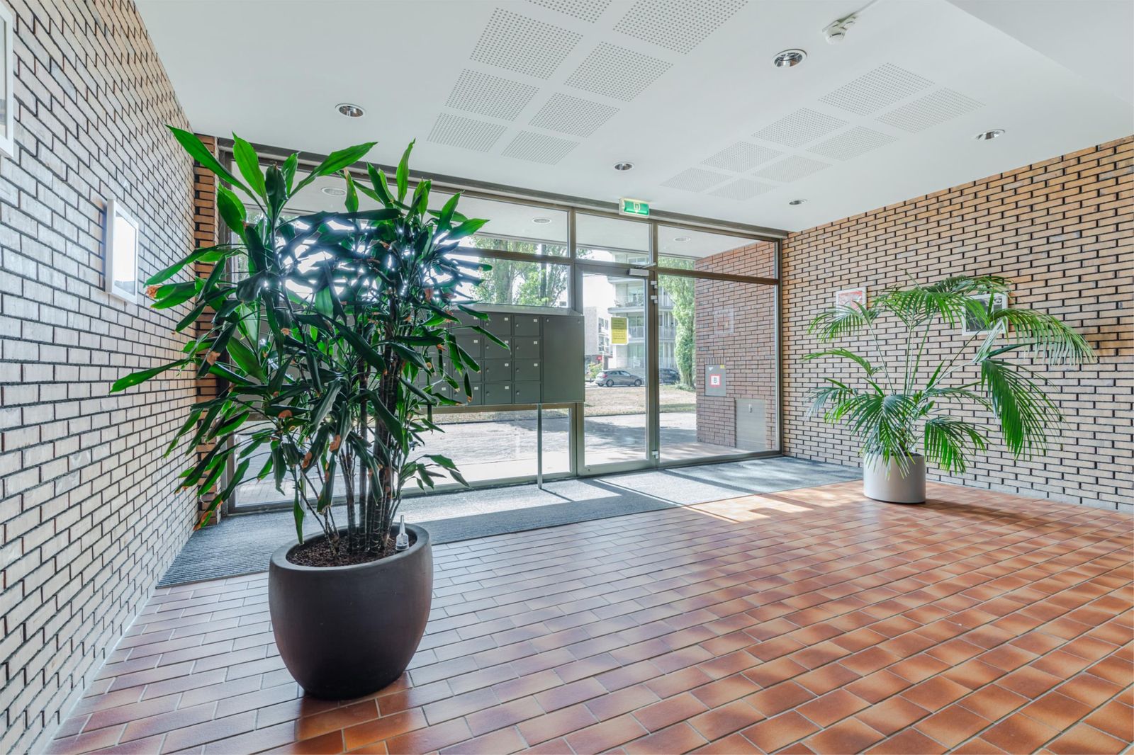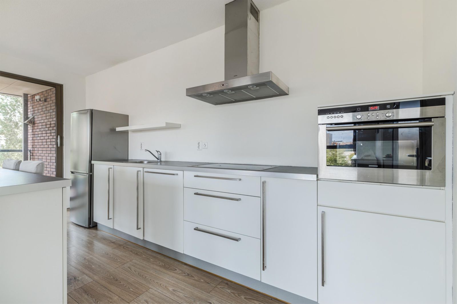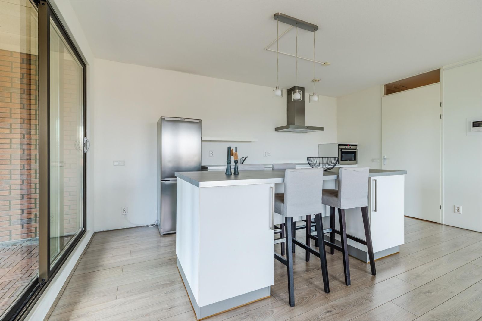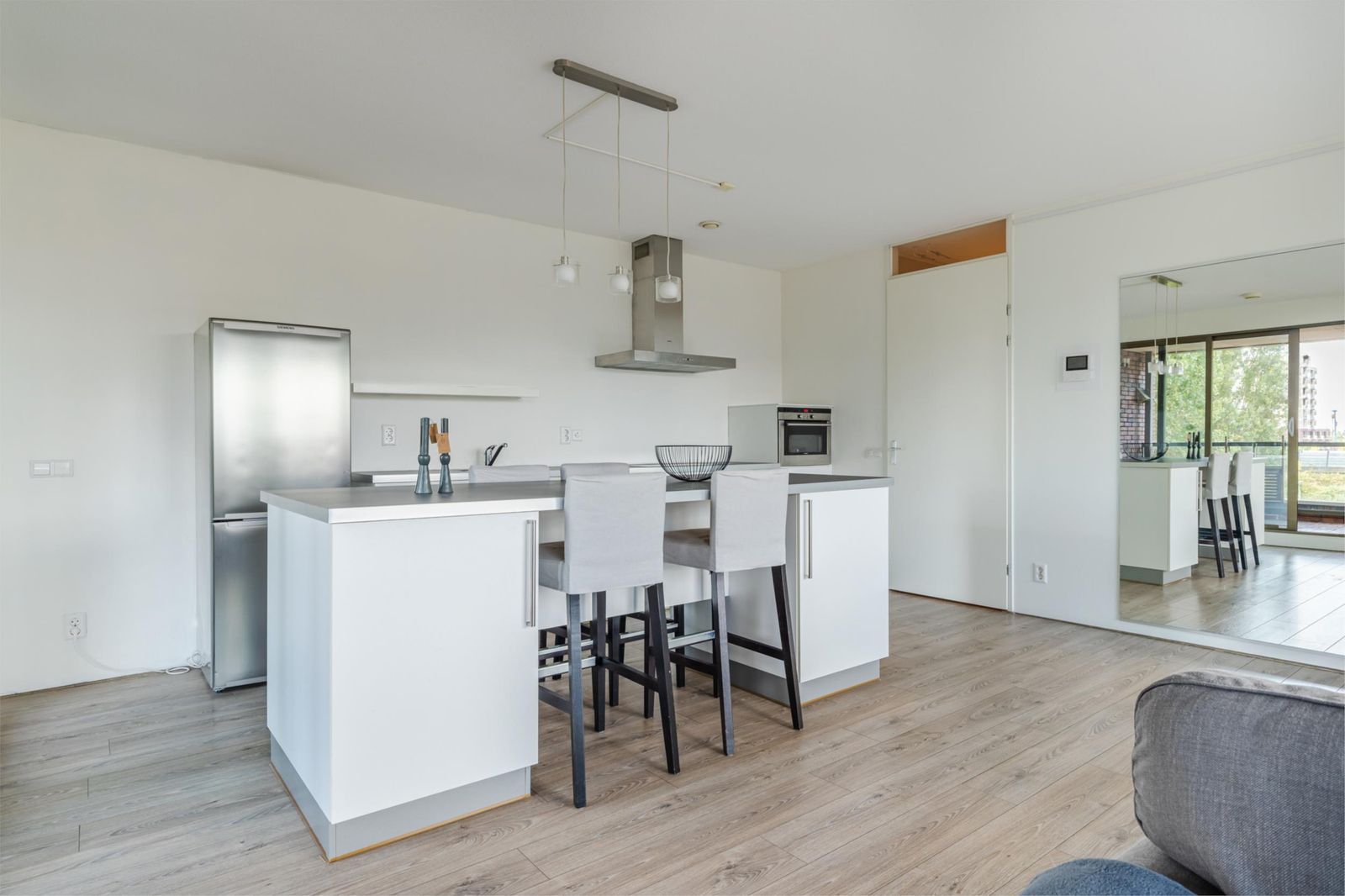 Portiek met entree. Ruime lange hal met meterkast, garderobe en toilet met fontein. Bijkeuken met aansluiting voor wasmachine en droger. In de bijkeuken bevindt zich tevens de unit voor de mechanische ventilatie. Moderne badkamer met inloopdouche en ligbad. De woonkamer met keuken is licht en heeft een praktische vorm. Het zonnige balkon van 5m2 is gelegen op het zuidwesten en is toegankelijk via een schuifpui. Moderne keuken met eiland. Aparte koel/vriescombinatie, keramische kookplaat, combi- oven en vaatwasser. Het gehele appartement is voorzien van een drempelloze lichte laminaatvloer. In de woonkamer bevindt zich de recent vernieuwde videofoon. Alle ramen hebben een kiep-kantel functie.