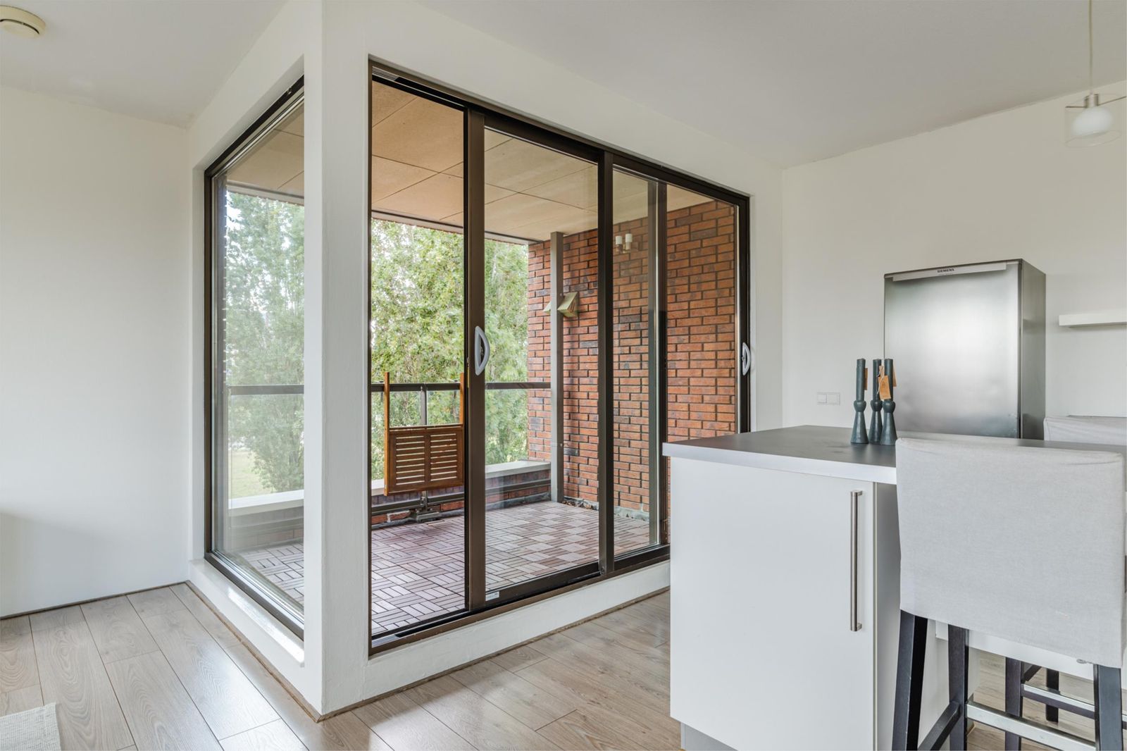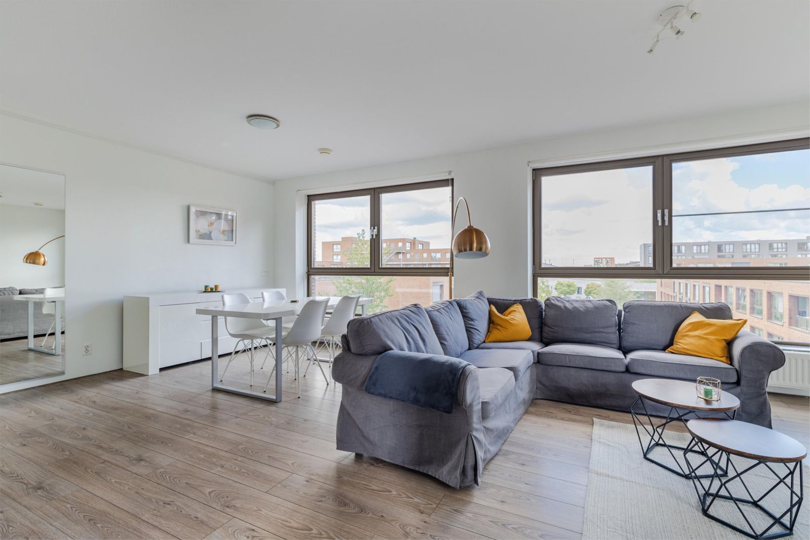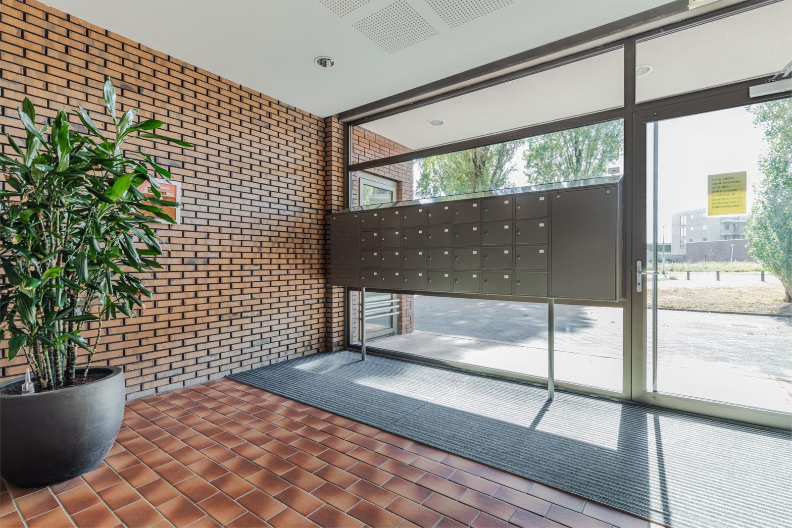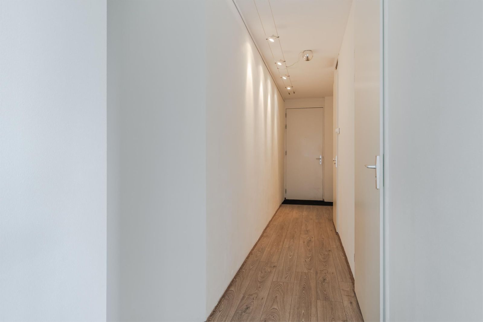 Portiek met entree. Ruime lange hal met meterkast, garderobe en toilet met fontein. Bijkeuken met aansluiting voor wasmachine en droger. In de bijkeuken bevindt zich tevens de unit voor de mechanische ventilatie. Moderne badkamer met inloopdouche en ligbad. De woonkamer met keuken is licht en heeft een praktische vorm. Het zonnige balkon van 5m2 is gelegen op het zuidwesten en is toegankelijk via een schuifpui. Moderne keuken met eiland. Aparte koel/vriescombinatie, keramische kookplaat, combi- oven en vaatwasser. Het gehele appartement is voorzien van een drempelloze lichte laminaatvloer. In de woonkamer bevindt zich de recent vernieuwde videofoon. Alle ramen hebben een kiep-kantel functie.