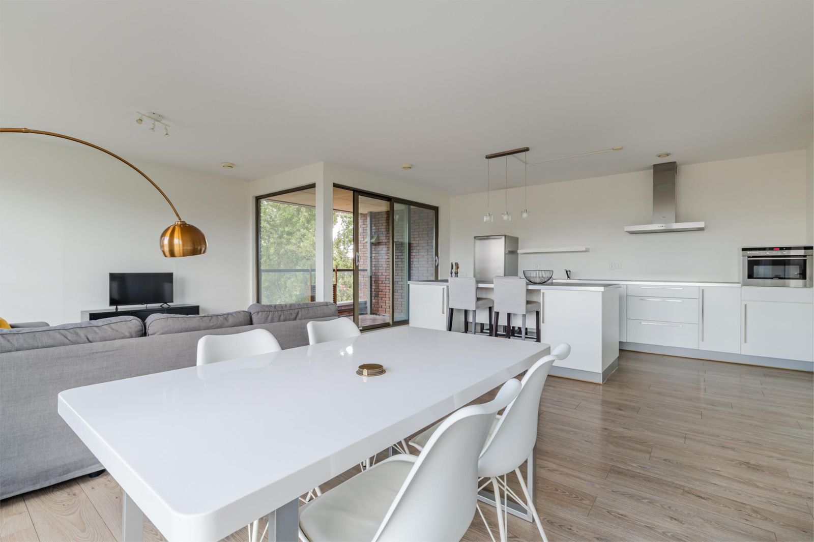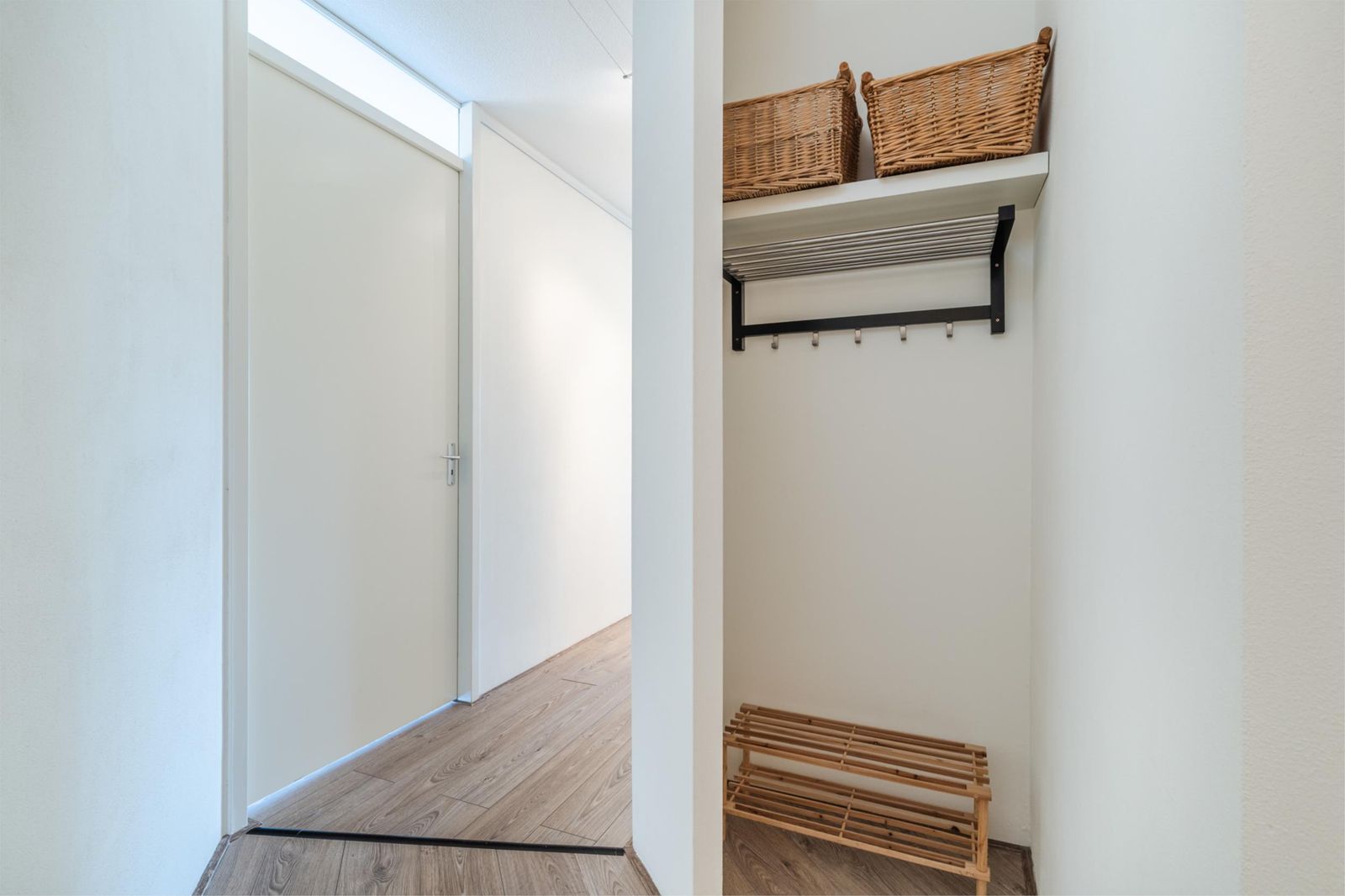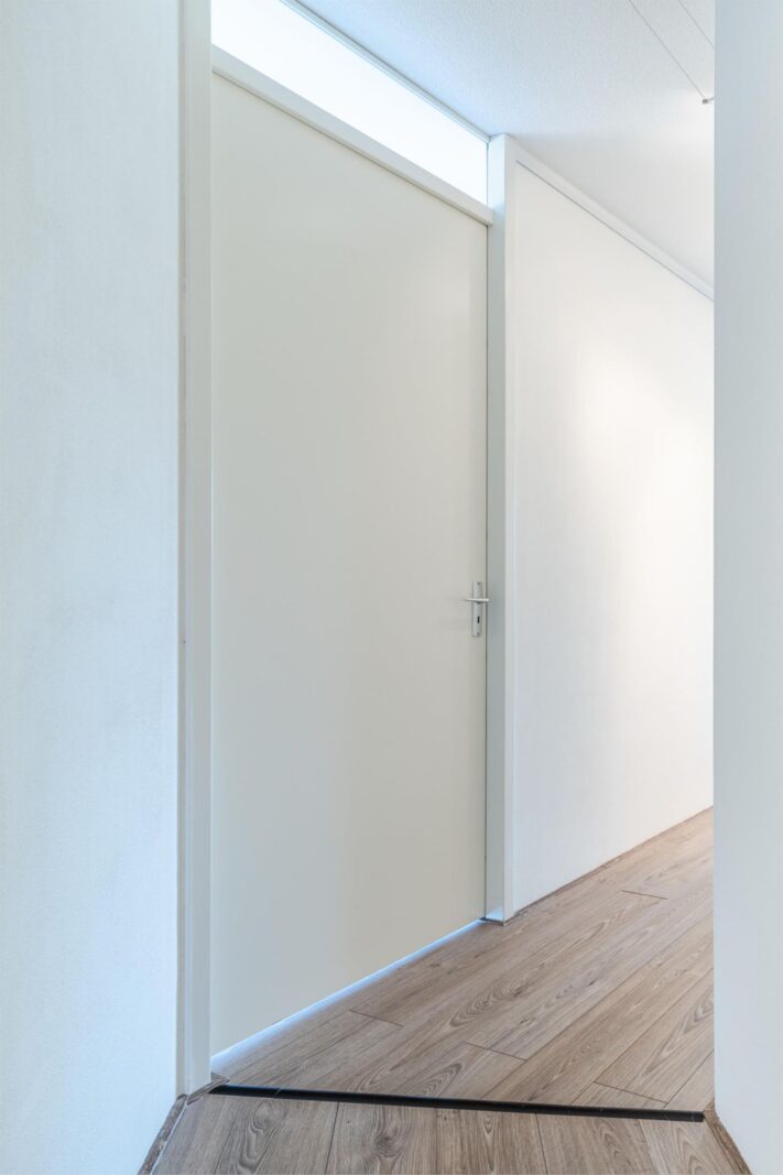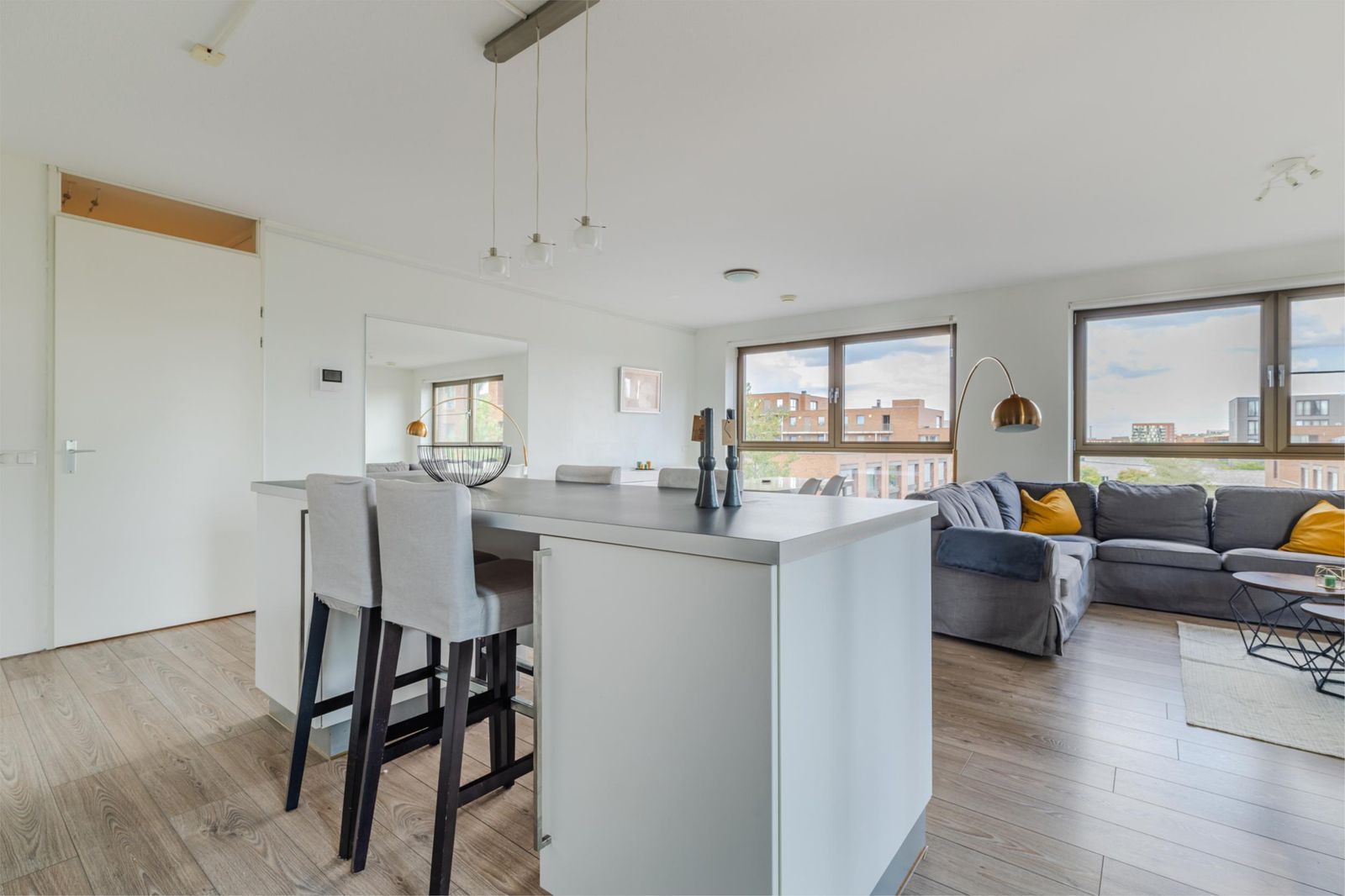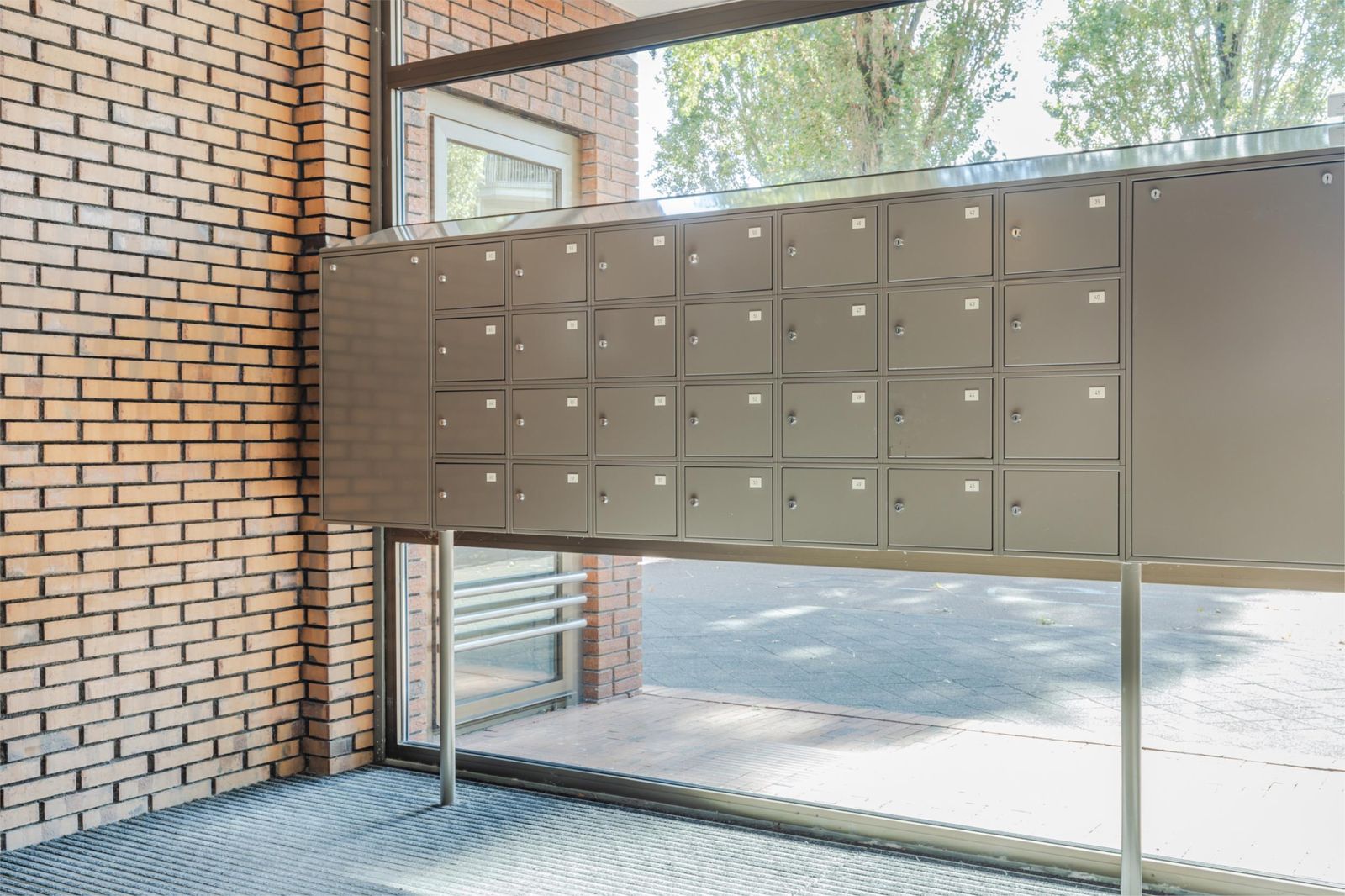 Portiek met entree. Ruime lange hal met meterkast, garderobe en toilet met fontein. Bijkeuken met aansluiting voor wasmachine en droger. In de bijkeuken bevindt zich tevens de unit voor de mechanische ventilatie. Moderne badkamer met inloopdouche en ligbad. De woonkamer met keuken is licht en heeft een praktische vorm. Het zonnige balkon van 5m2 is gelegen op het zuidwesten en is toegankelijk via een schuifpui. Moderne keuken met eiland. Aparte koel/vriescombinatie, keramische kookplaat, combi- oven en vaatwasser. Het gehele appartement is voorzien van een drempelloze lichte laminaatvloer. In de woonkamer bevindt zich de recent vernieuwde videofoon. Alle ramen hebben een kiep-kantel functie.