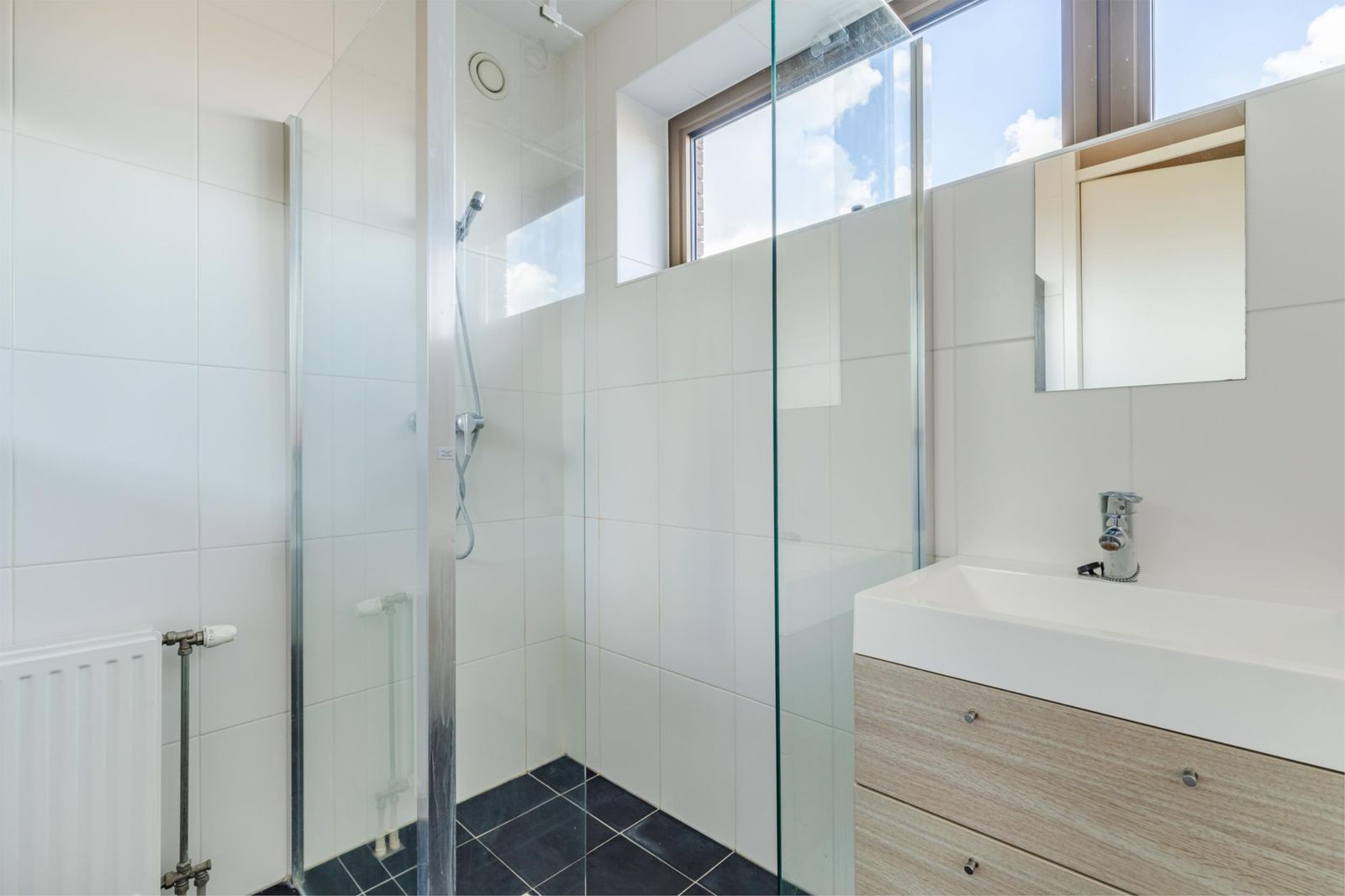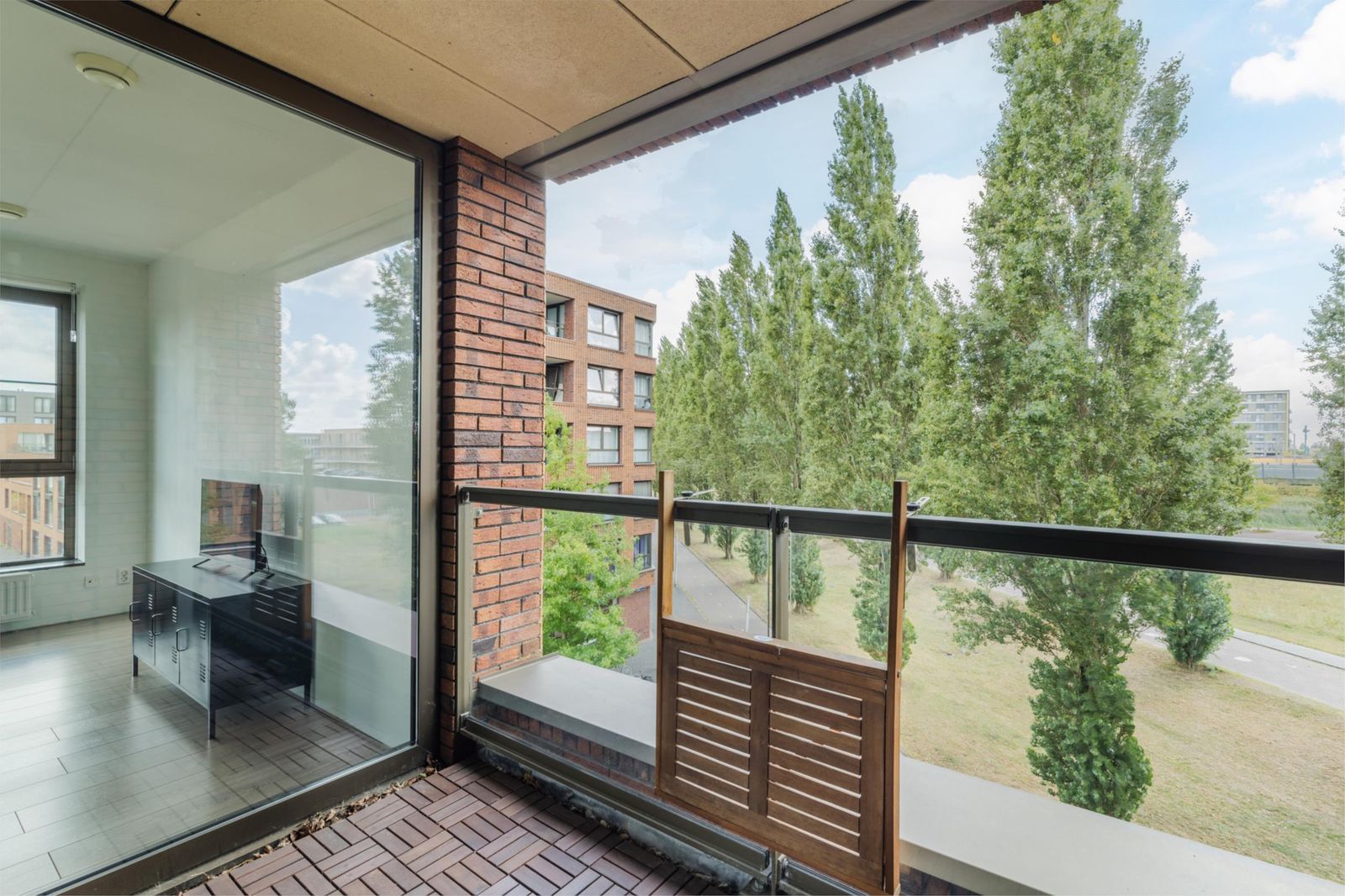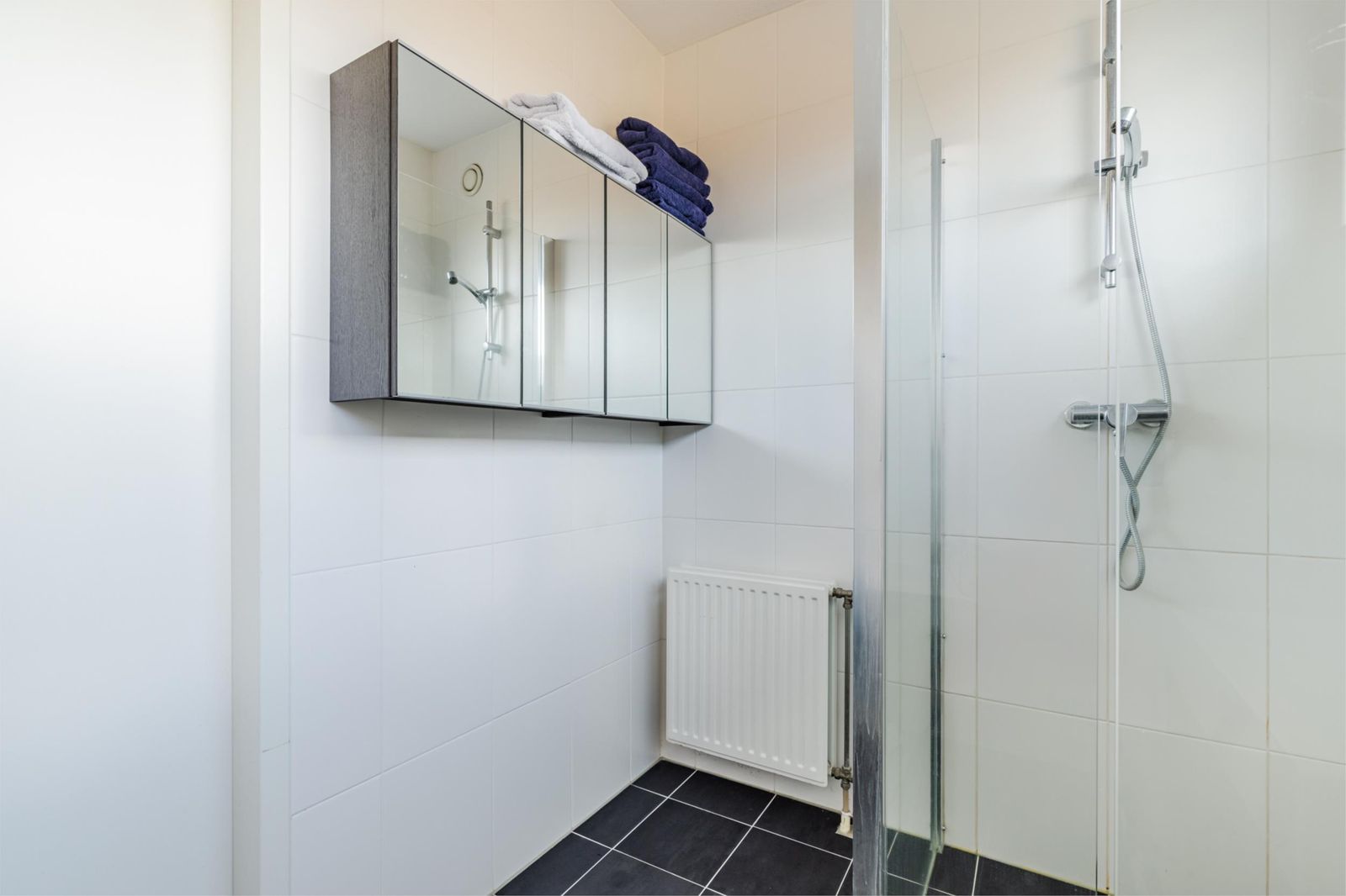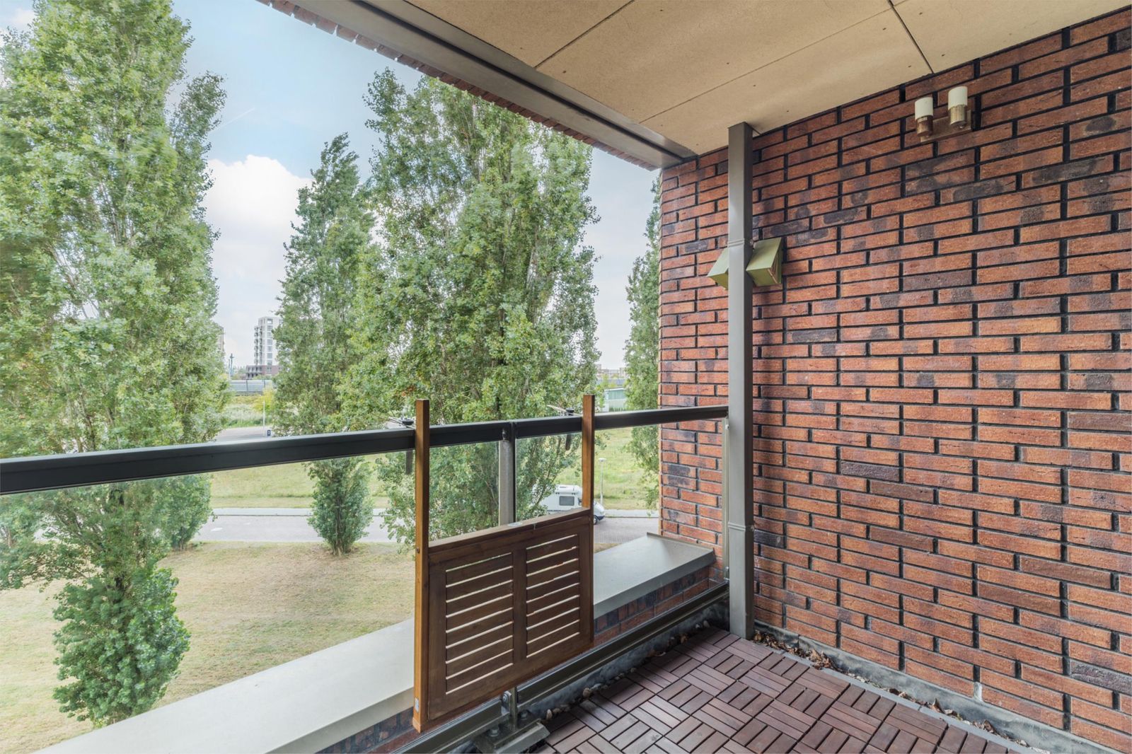Portiek met entree. Ruime lange hal met meterkast, garderobe en toilet met fontein. Bijkeuken met aansluiting voor wasmachine en droger. In de bijkeuken bevindt zich tevens de unit voor de mechanische ventilatie. Moderne badkamer met inloopdouche en ligbad. De woonkamer met keuken is licht en heeft een praktische vorm. Het zonnige balkon van 5m2 is gelegen op het zuidwesten en is toegankelijk via een schuifpui. Moderne keuken met eiland. Aparte koel/vriescombinatie, keramische kookplaat, combi- oven en vaatwasser. Het gehele appartement is voorzien van een drempelloze lichte laminaatvloer. In de woonkamer bevindt zich de recent vernieuwde videofoon. Alle ramen hebben een kiep-kantel functie.
