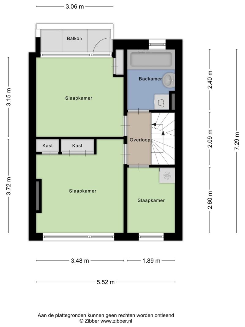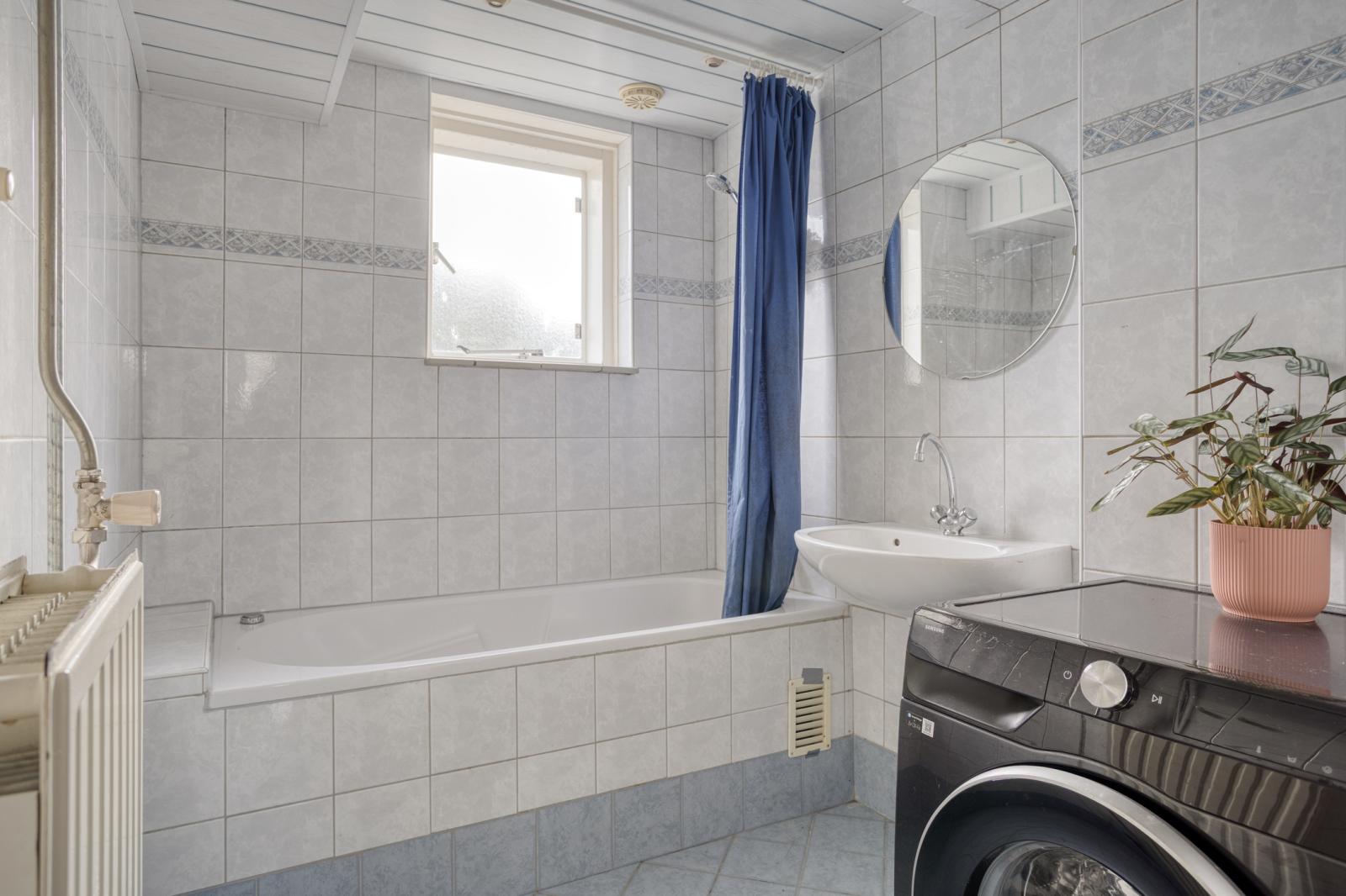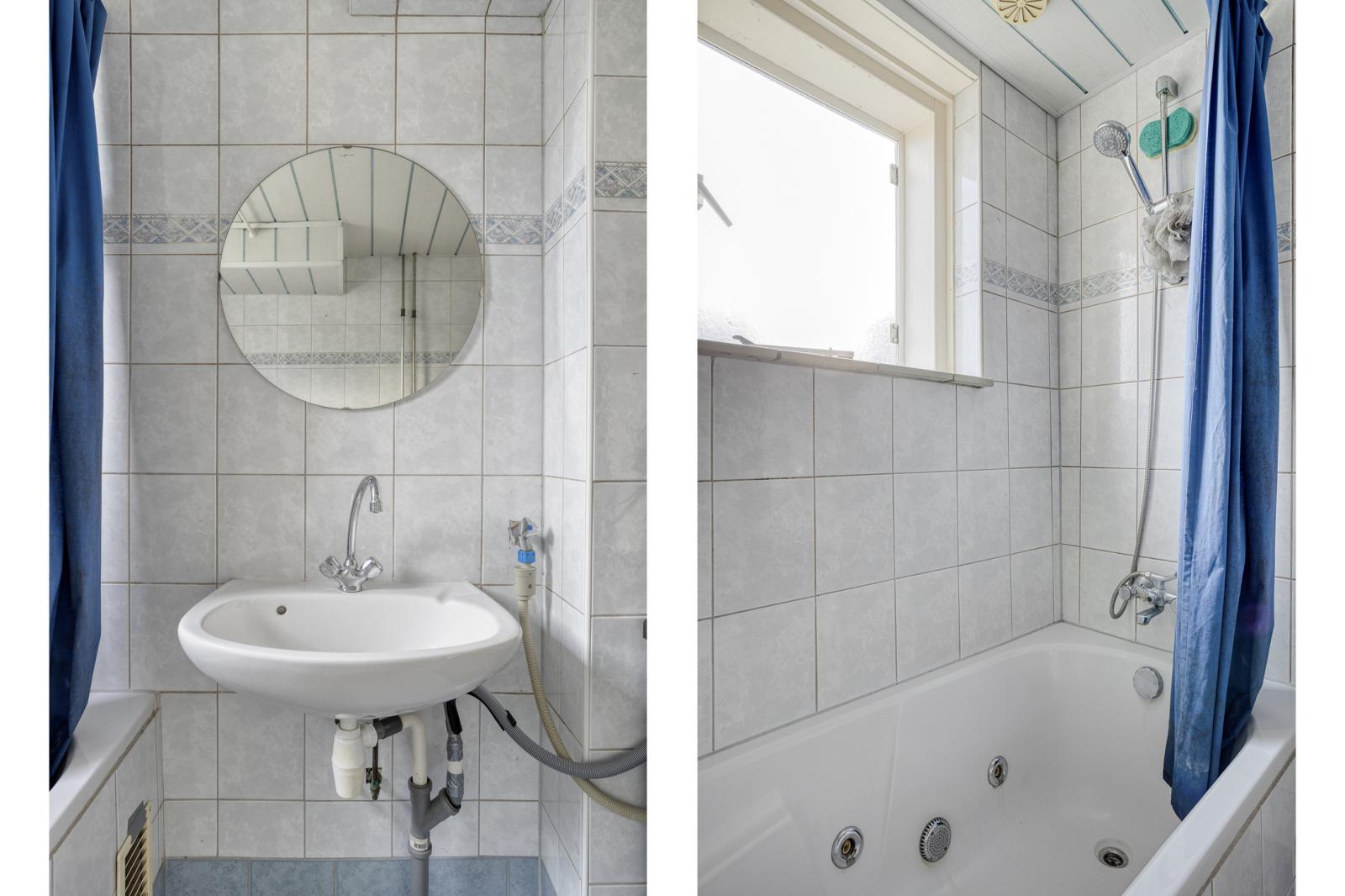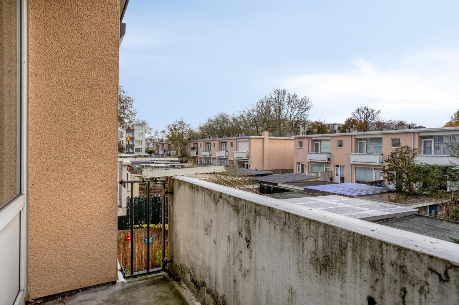 -Eerste verdieping: via de overloop kom je bij drie slaapkamers, waarvan de slaapkamer aan de achterzijde van de woning een balkon heeft, en de badkamer met ligbad, wastafel en opstelplaats voor de wasmachine.