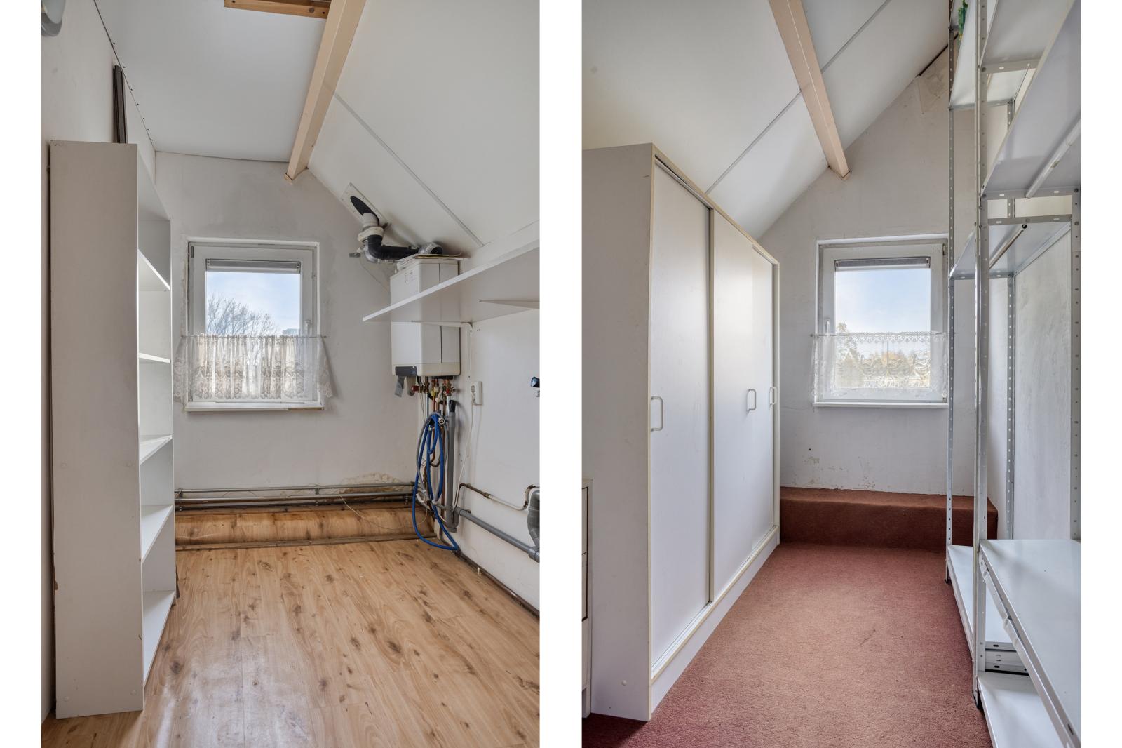 -Tweede verdieping: in 2005 is de tweede verdieping flink uitgebreid door een opbouw. Deze is in 2024 gedeeltelijk gerenoveerd. Door deze opbouw heeft deze verdieping een zee aan ruimte met twee volwaardige slaapkamers, een kleine hobby of studeerkamer en een berging met opstelplaats voor de CV-installatie.