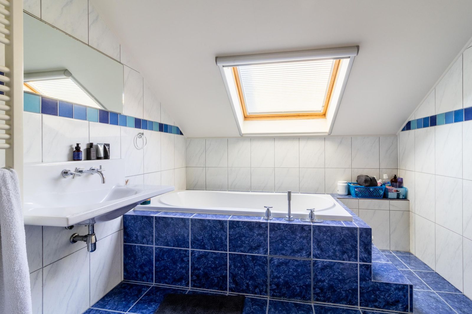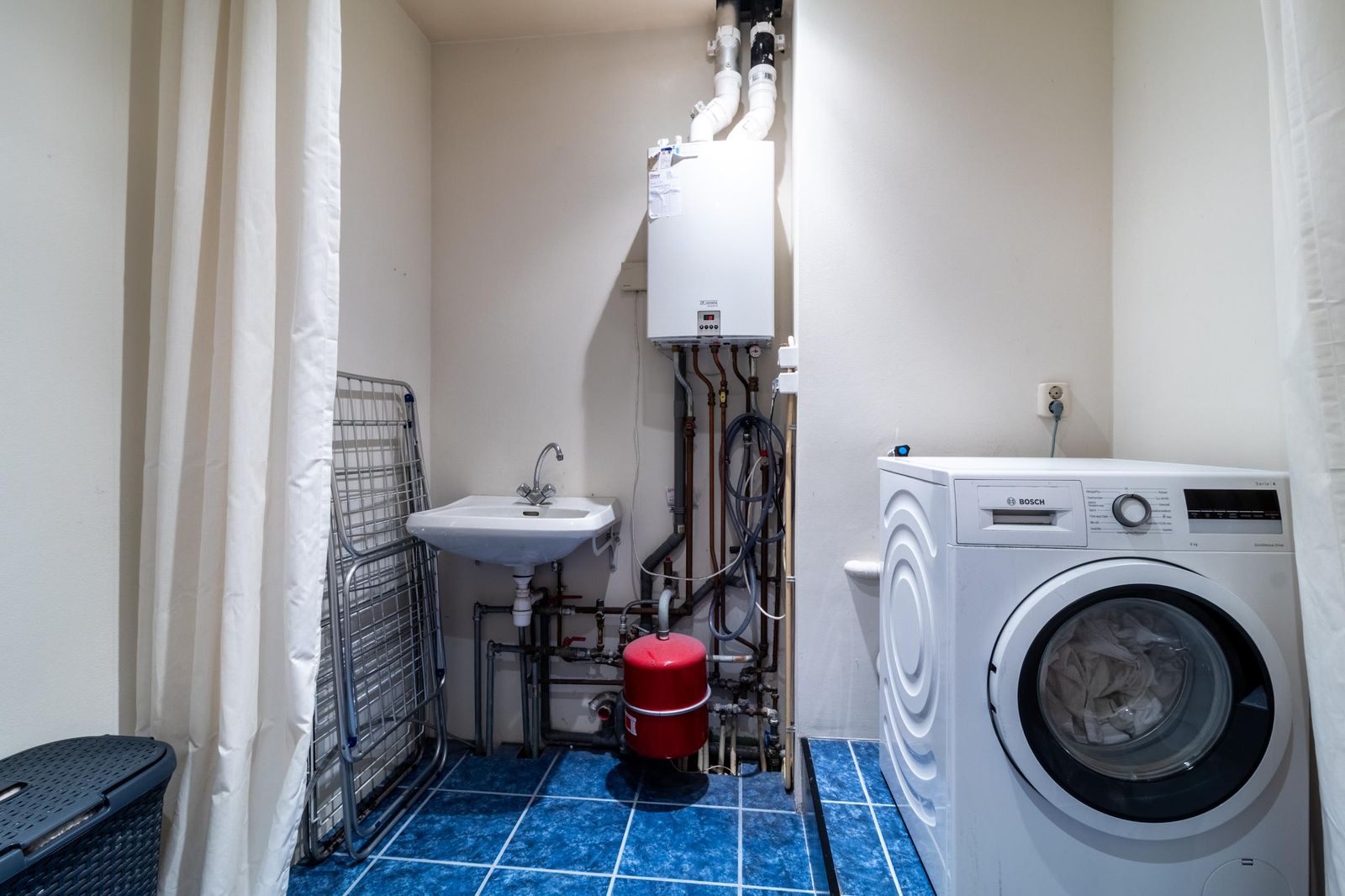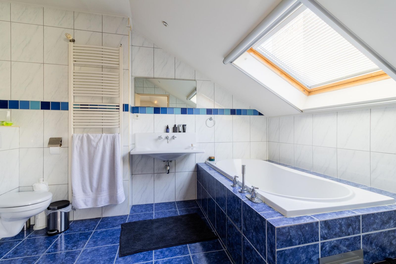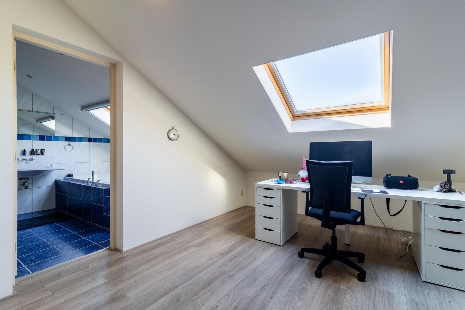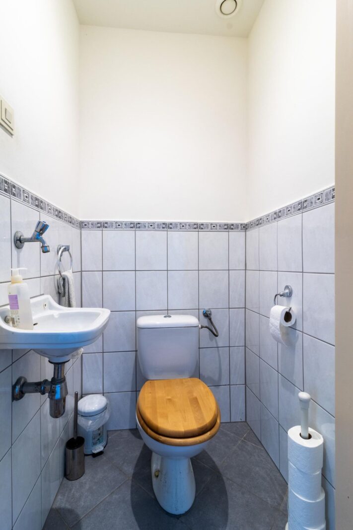 Topetage: een grote woonruimte en een slaapkamer of als 2 slaapkamers in te delen. Grote badkamer met bad, douche en wastafel. Extra bergruimte voor wasmachine.