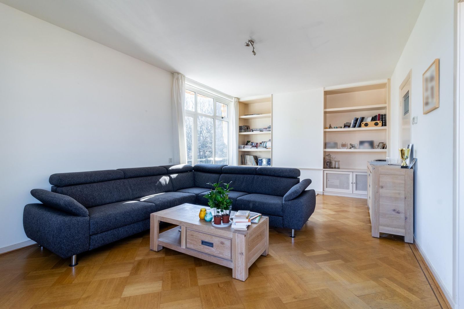 Appartementsentree, hal, garderobe/meterkast, toilet. Woon- en eetkamer en suite met twee balkons. Keuken met inbouwapparatuur en toegang tot het balkon. Grote slaapkamer met toegang tot het balkon. Lege ruimte voor een extra douche of wasmachine (nog zelf in te richten).