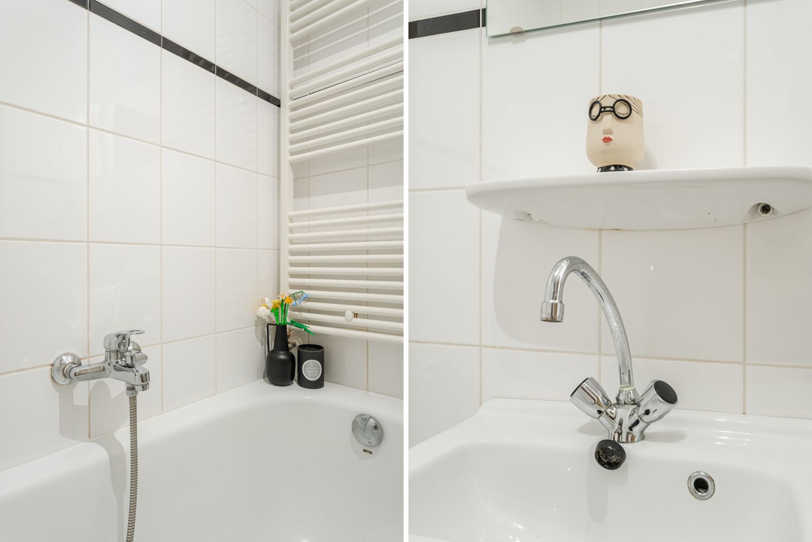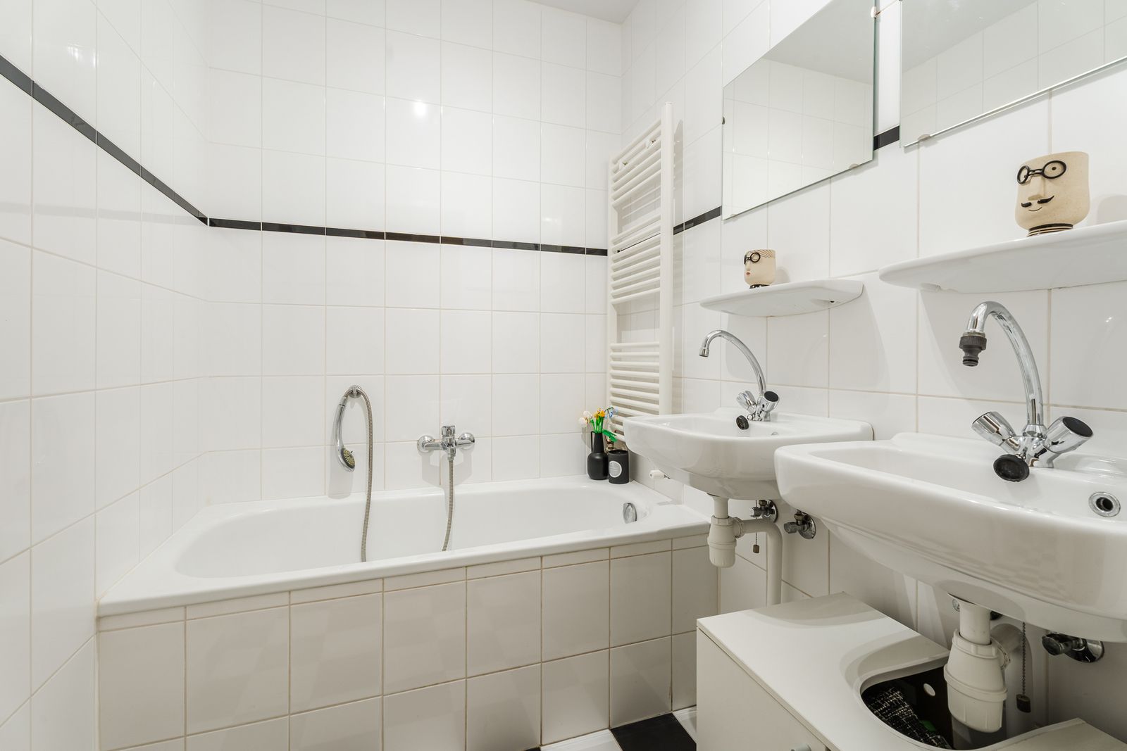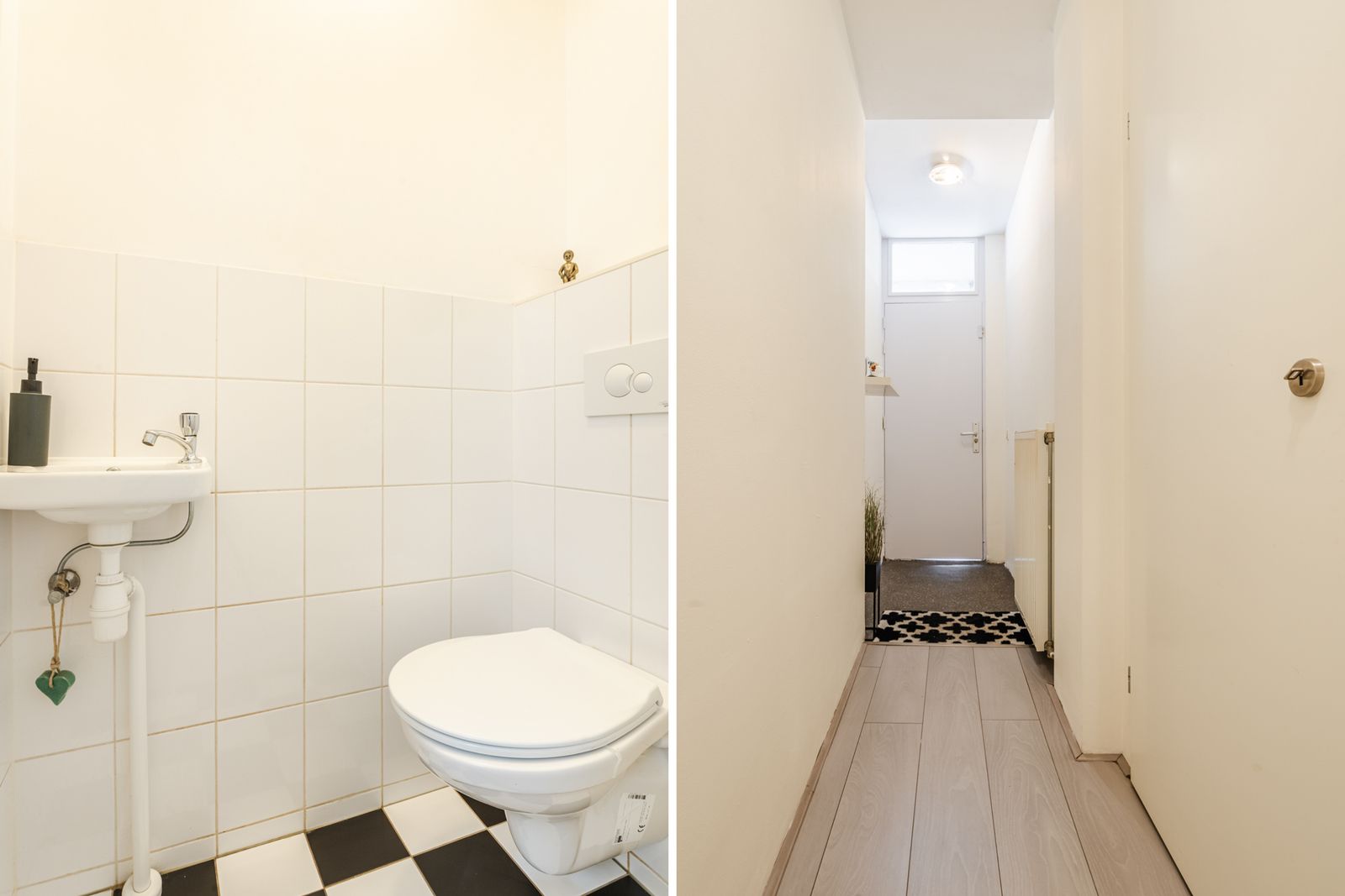 Entree op straatniveau, hal met toegang tot het toilet en badkamer met ligbad, dubbele wastafel en separate douche. Aan de voorzijde is een extra (slaap)kamer gesitueerd.