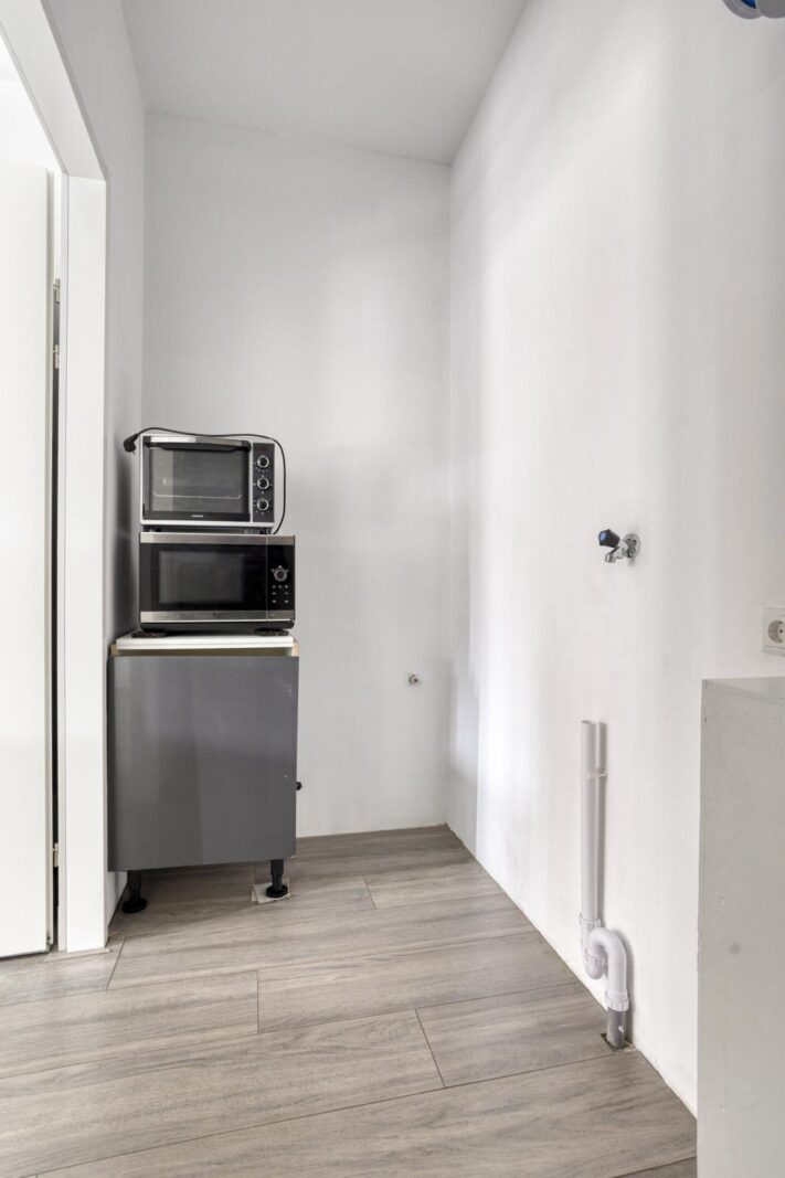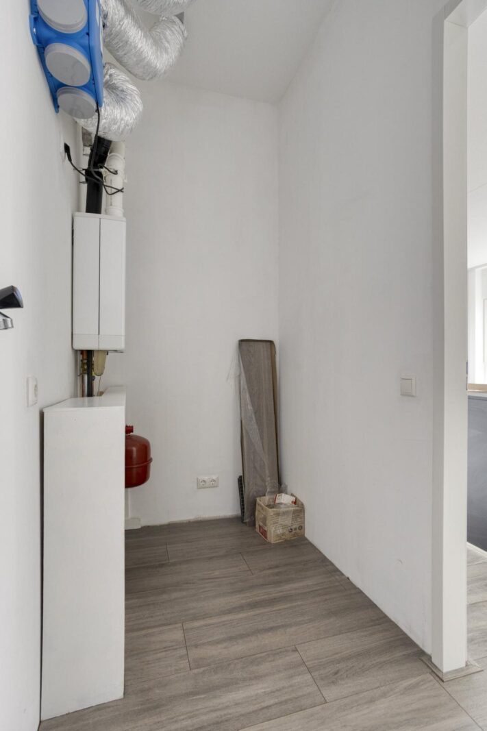Via de nette entree met hoog plafond bereik je het appartement. De hal geeft toegang tot alle vertrekken en leidt naar de lichte en ruime woonkamer. Dankzij de grote raampartijen geniet je hier van veel daglicht en een prettige sfeer. De moderne open keuken is uitgerust met hoogwaardige inbouwapparatuur en vormt het hart van het appartement _ ideaal voor kookliefhebbers en gezellige avonden met vrienden of familie.