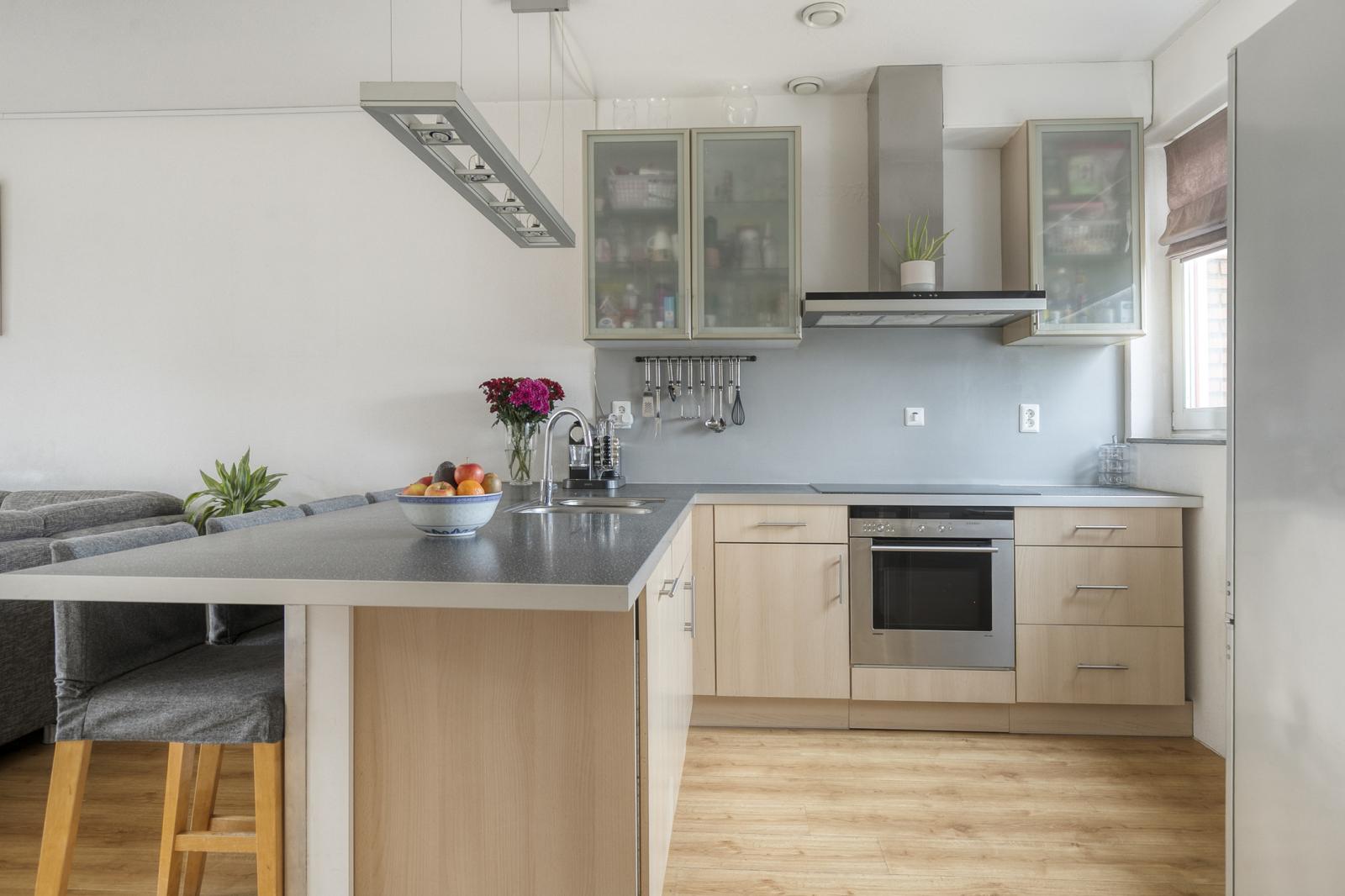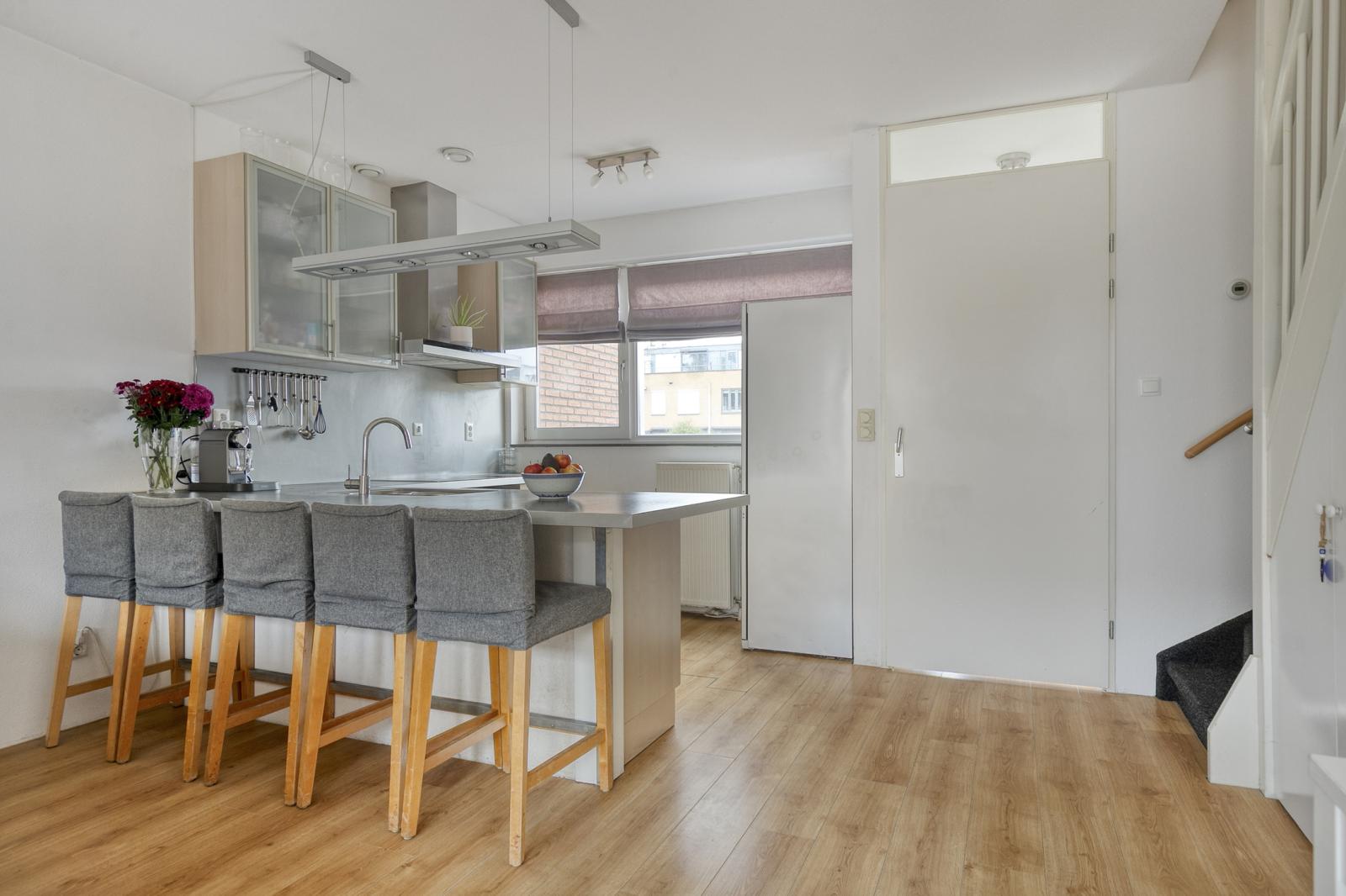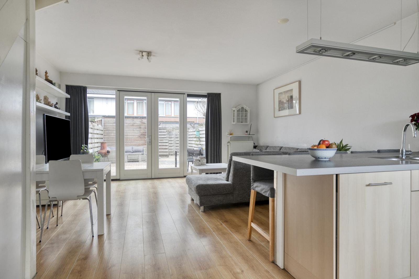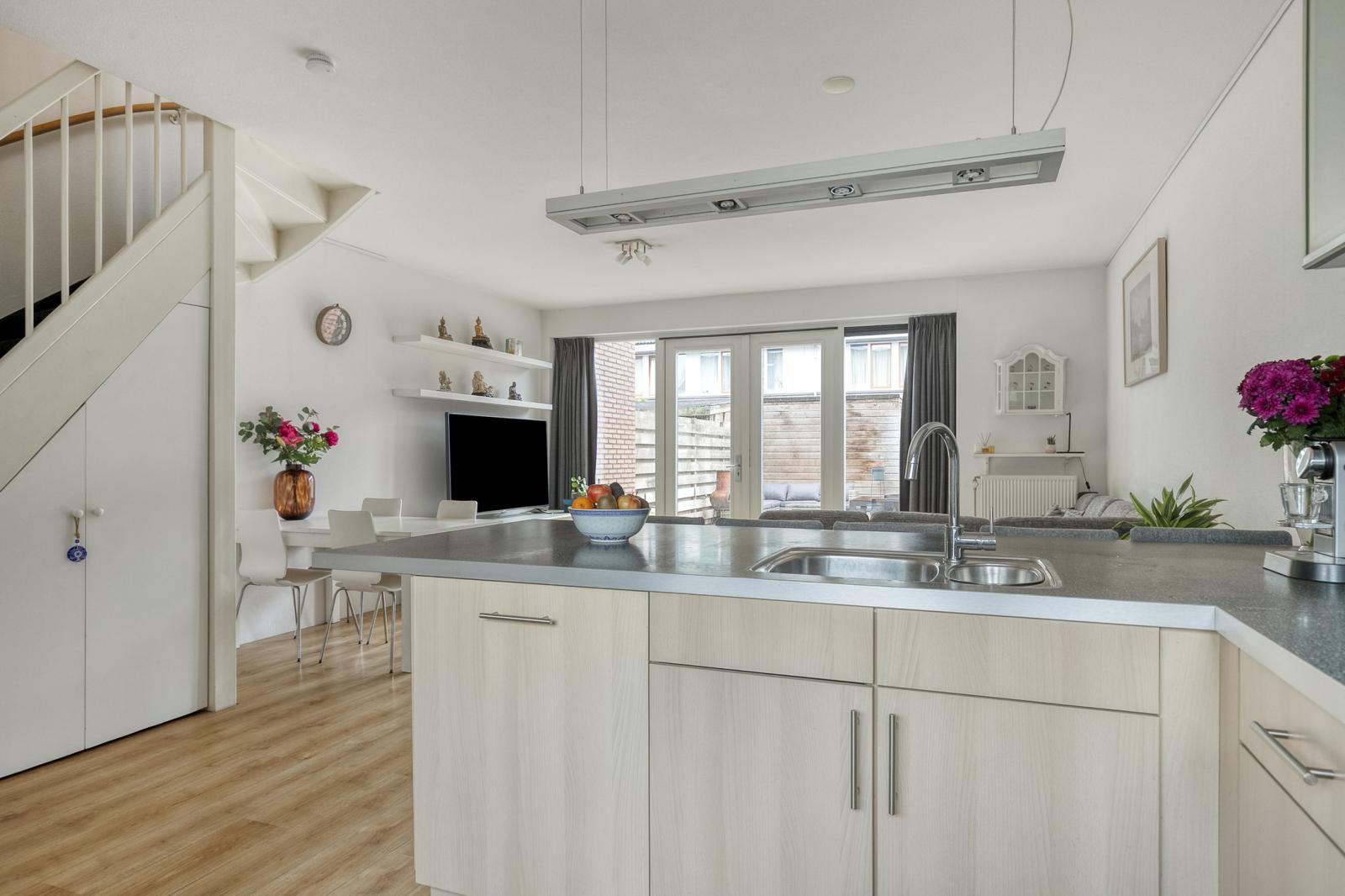 Bij binnenkomst valt meteen de lichte keuken en woonkamer op. De raampartijen aan de voor- en achterzijde zorgen voor veel daglicht en een fijne verbinding met de tuin. De woonkamer loopt vloeiend over in de open keuken, die is voorzien van diverse inbouwapparatuur en volop werkruimte. Het is een ideale plek om samen te koken, te borrelen aan de bar of te genieten van een uitgebreid diner met familie en vrienden.