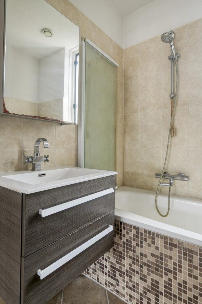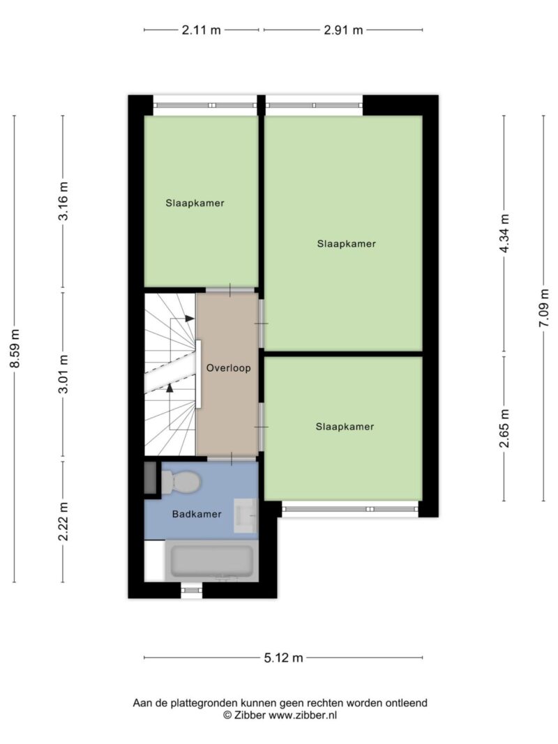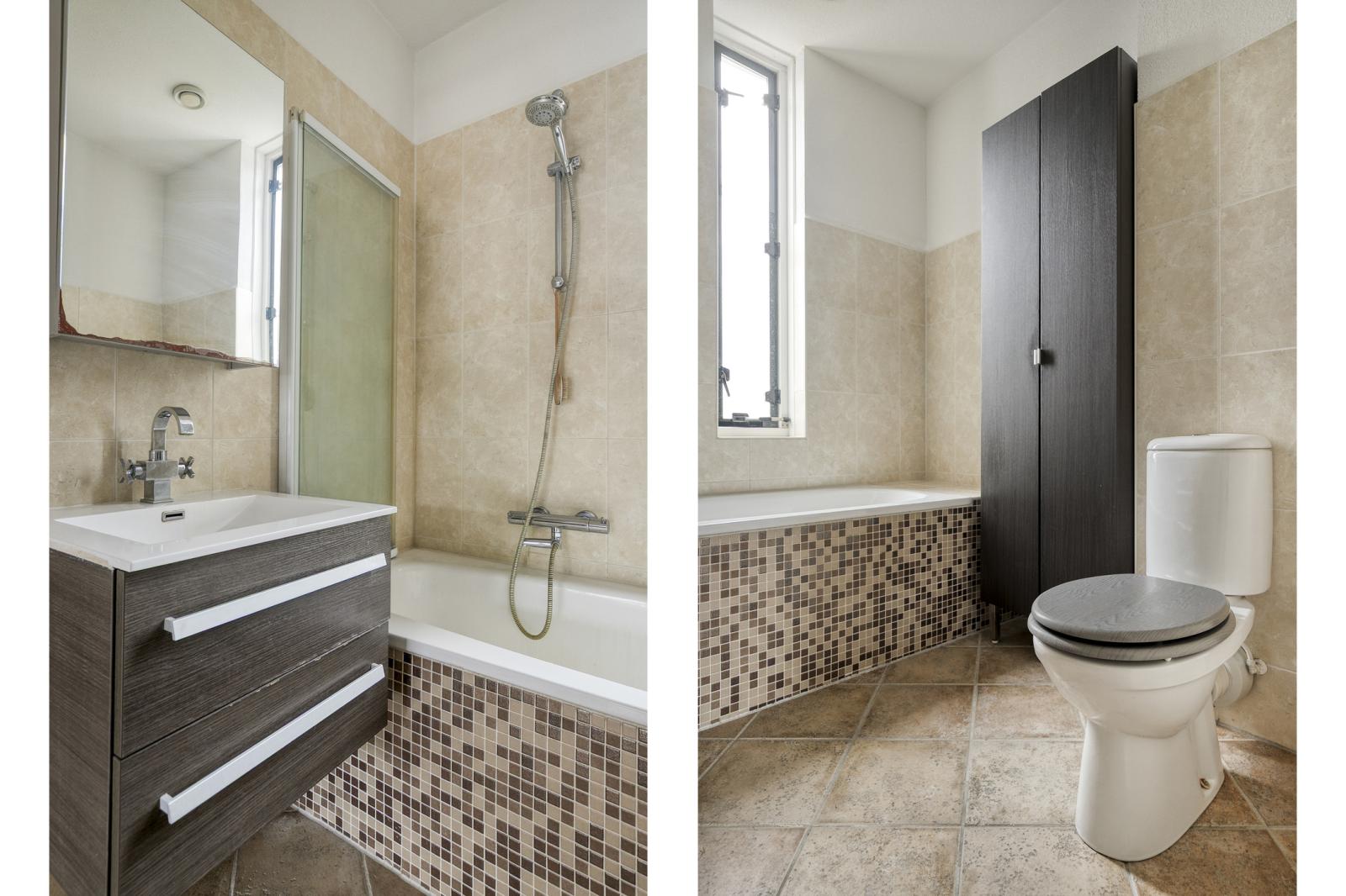 Op de eerste verdieping bevinden zich drie slaapkamers en de badkamer De badkamer is voorzien van een bad-douchecombinatie, wastafel en toilet.