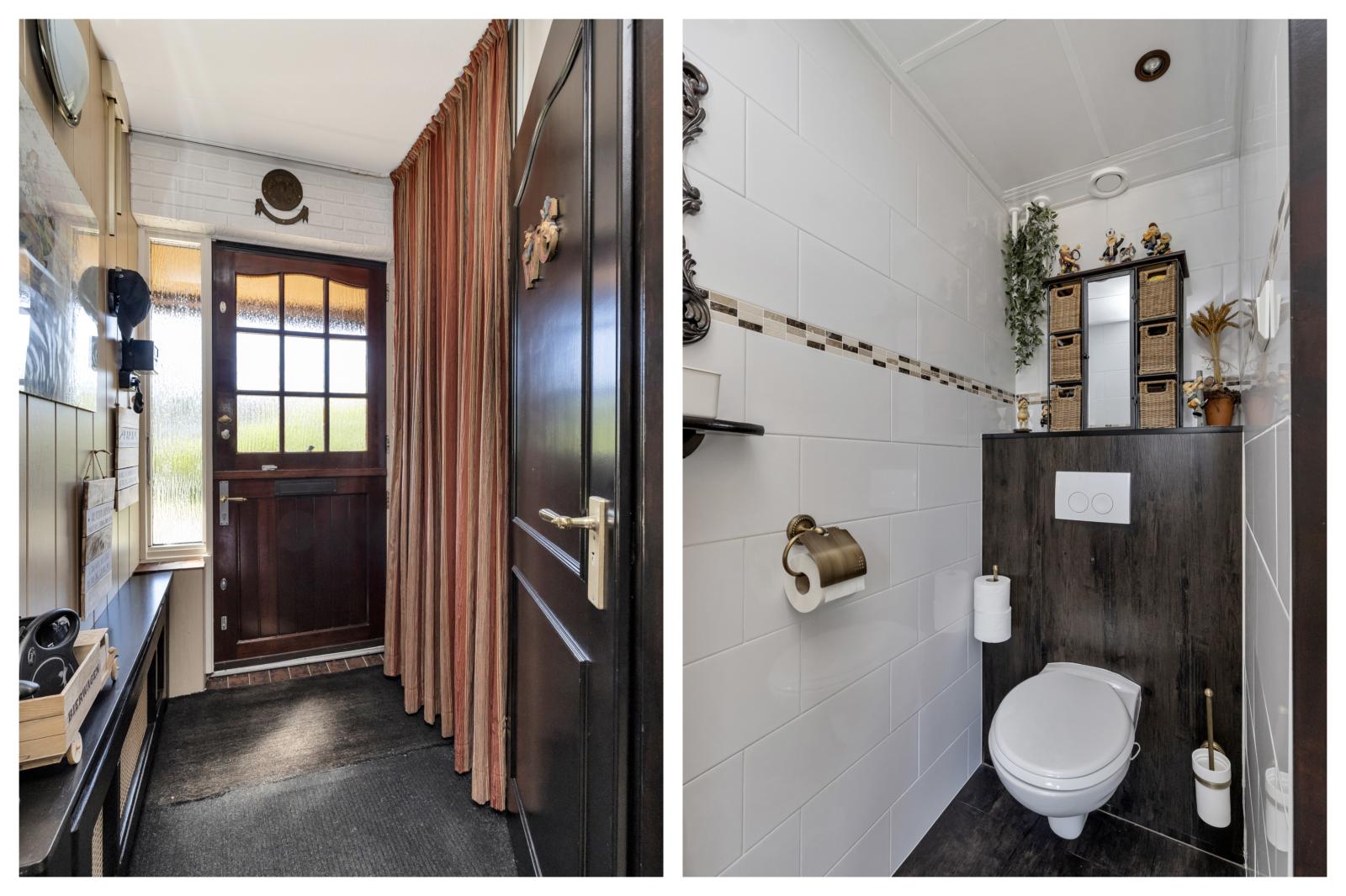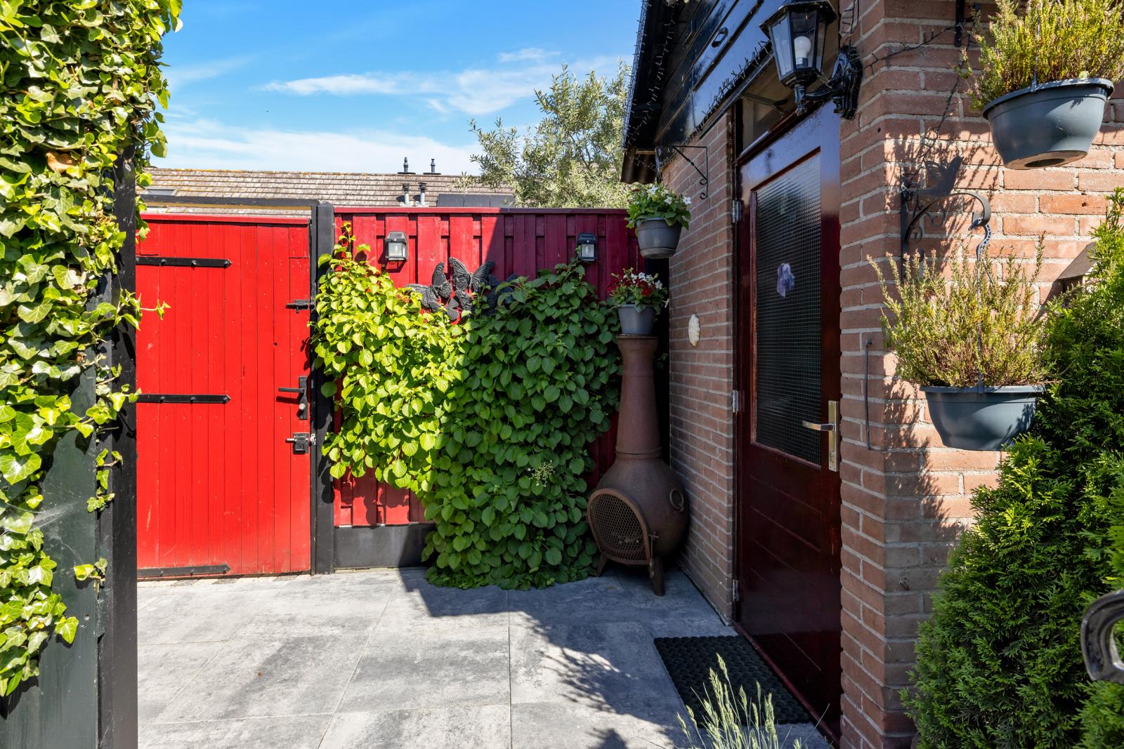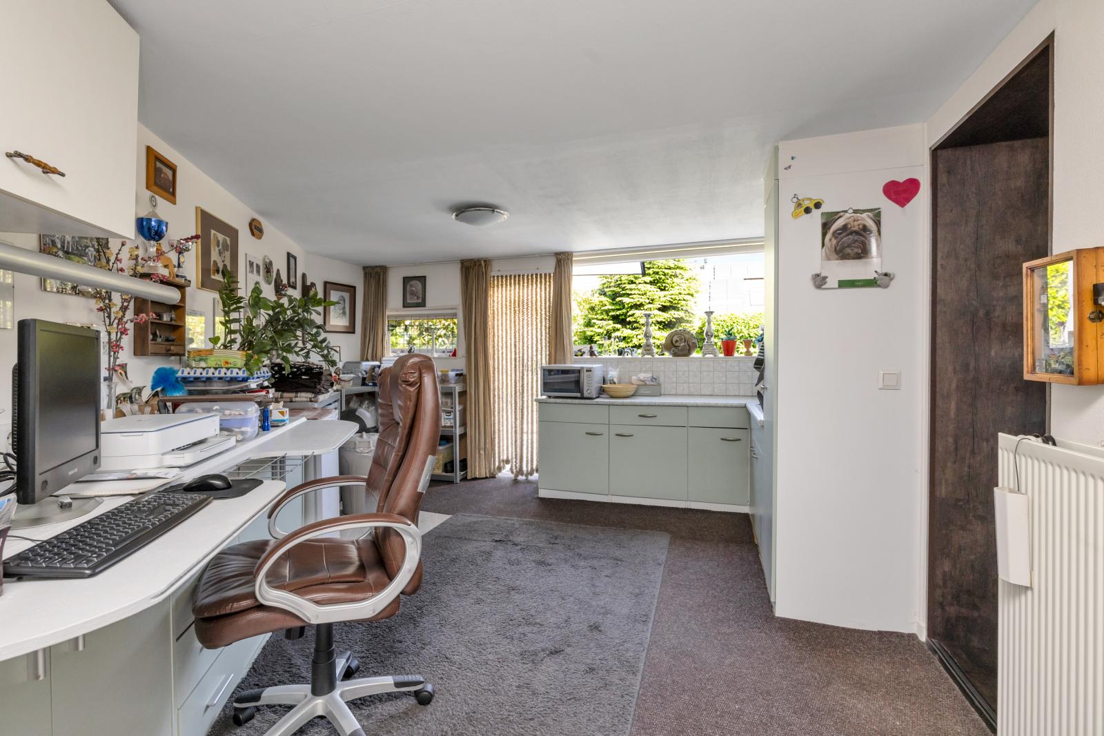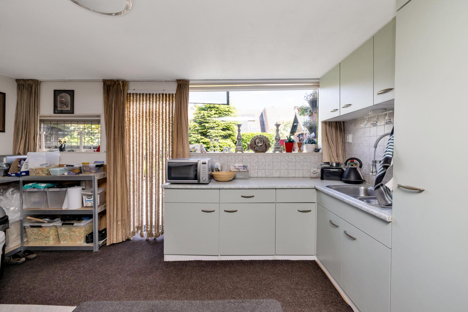 Entree, garderobe, meterkast (glasvezel aanwezig), toiletruimte met hangtoilet en fonteintje, doorgang naar de woonkamer en de royale leefkeuken met dubbele deuren naar de op het oosten gelegen tuin. De tuingerichte leefkeuken is voorzien van een combi oven, 5 pits gaskookplaat, afzuigkap, vaatwasser en een koel/vriescombinatie. Aan de zijkant van de woning bevindt zich de uitbouw met daarin de wasmachine en droger aansluiting, 2e keukenblok en deur naar de achtertuin. In de tuin bevinden zich twee bergingen, een achterom en parkeren kan op eigen terrein aan de voorzijde van de woning.