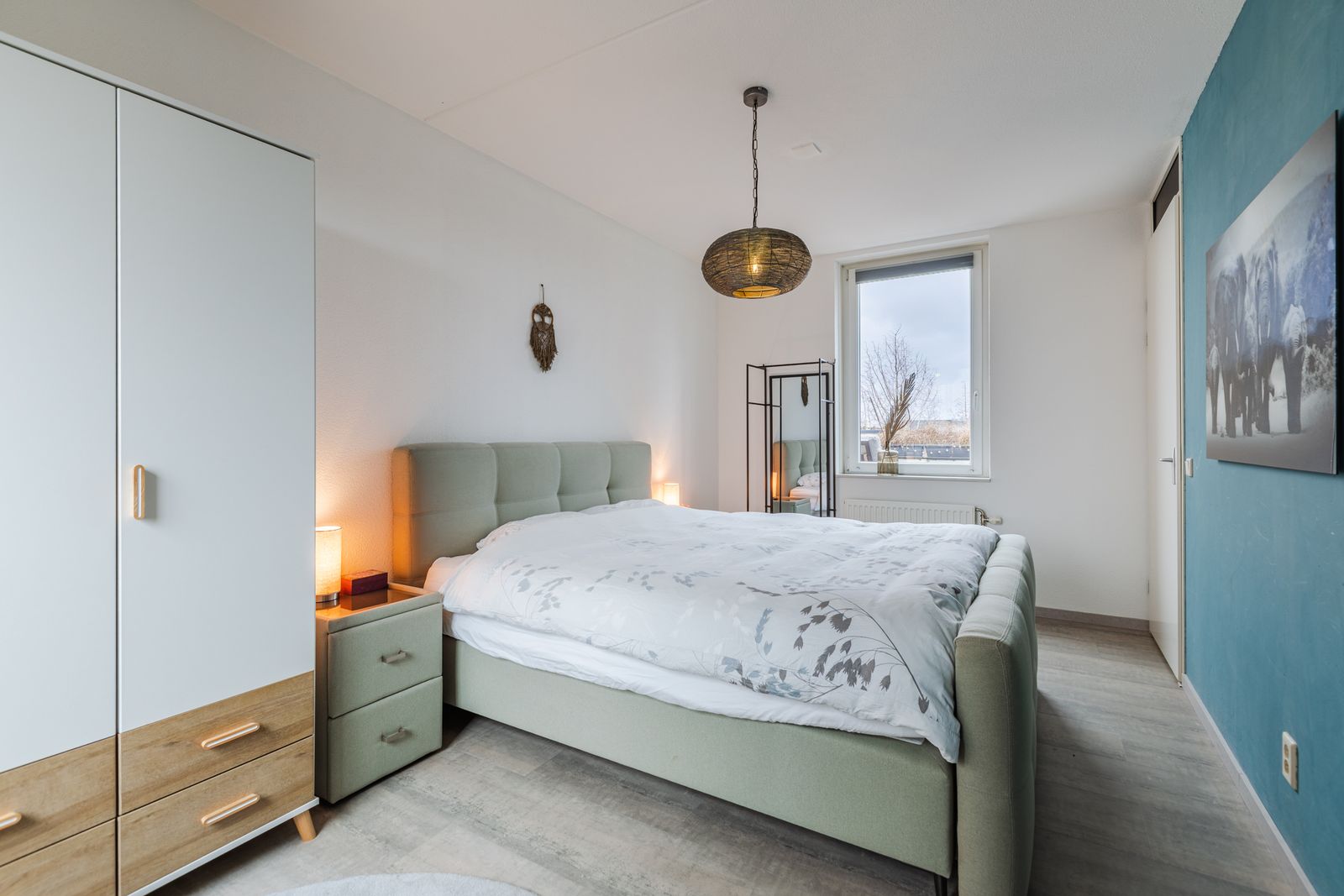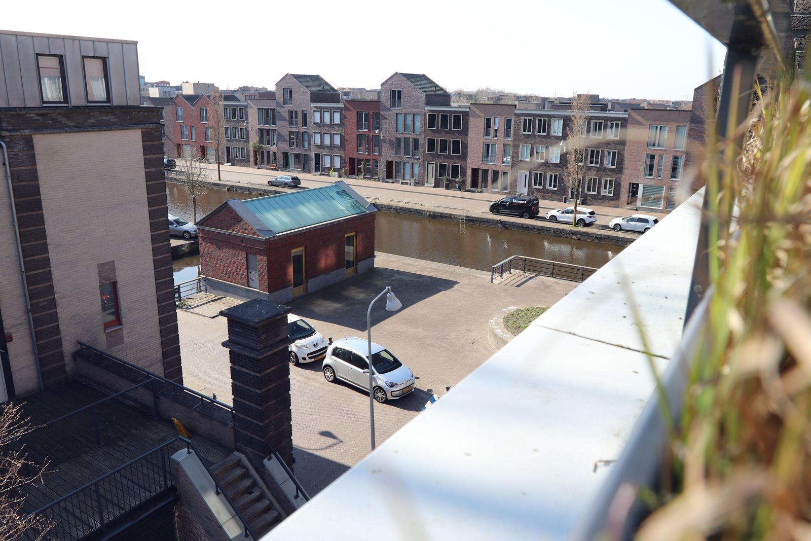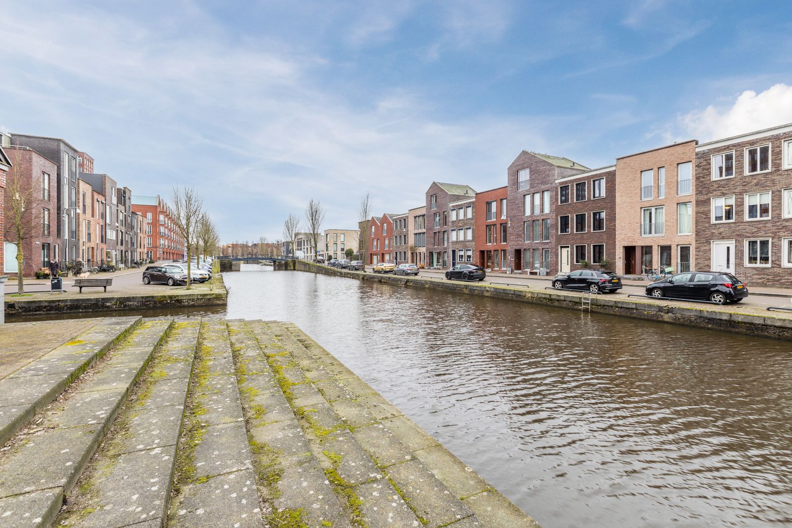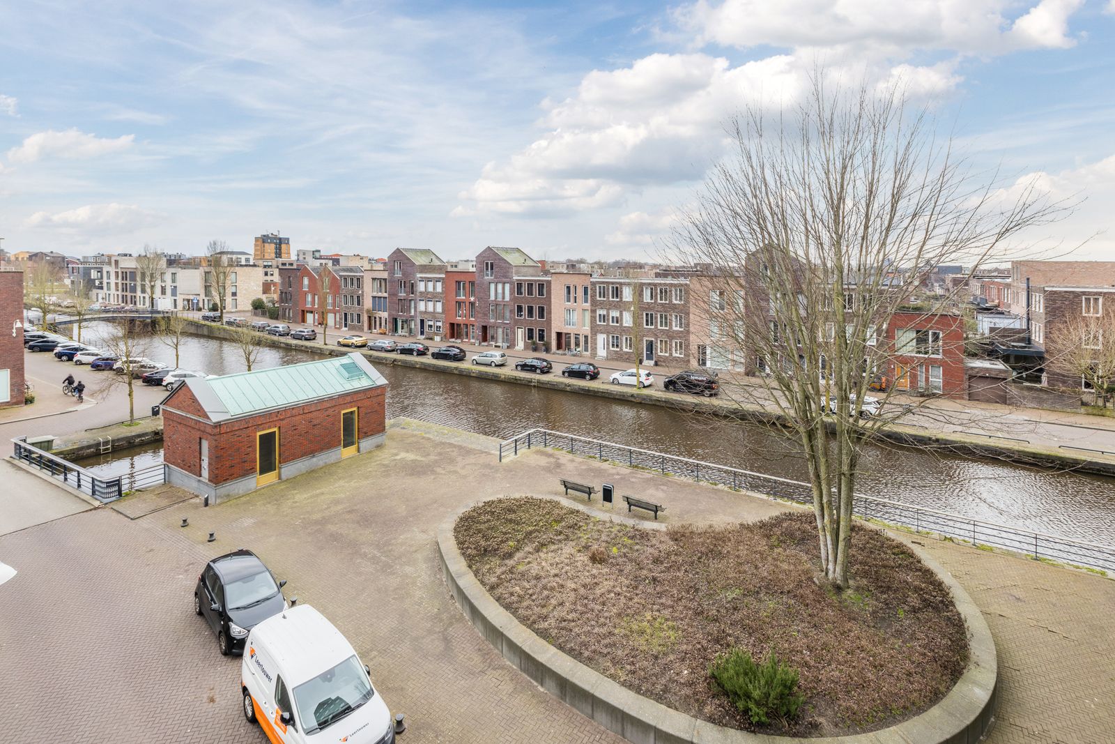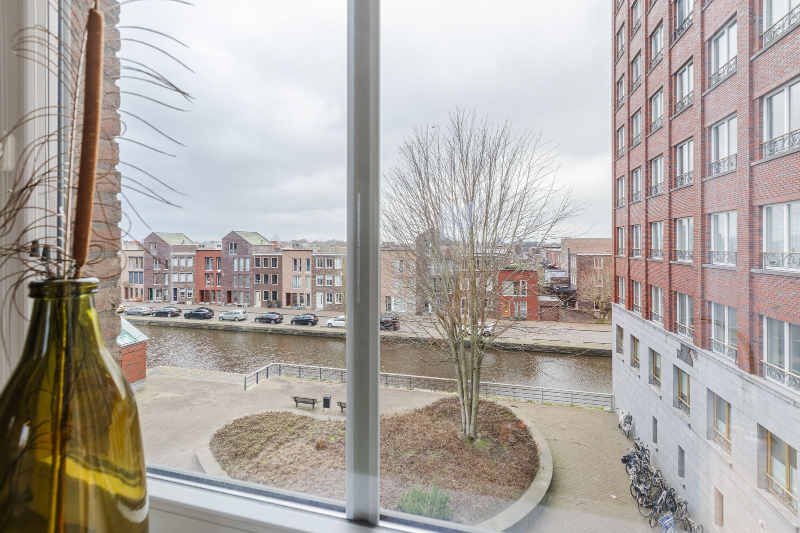 Aan de andere kant van de verdieping bevindt zich de keuken met een net keukenblok voorzien van inbouwapparatuur (vaatwasser, combi magnetron/oven, inductiekookplaat en koel/vriescombinatie), afgewerkt met een natuur stenen aanrechtblad. De keuken is praktisch ingedeeld met genoeg ruimte voor een mooie eetgelegenheid met vrij uitzicht op de Laak en ondergaande zon.