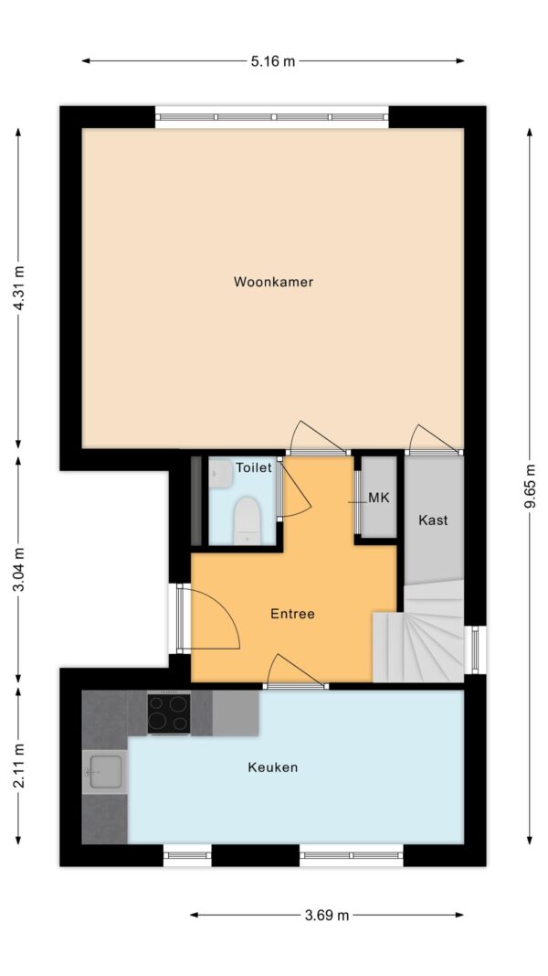 - VvE servicekosten € 92,- per maand, incl. schoonmaak hal 2x/jaar;