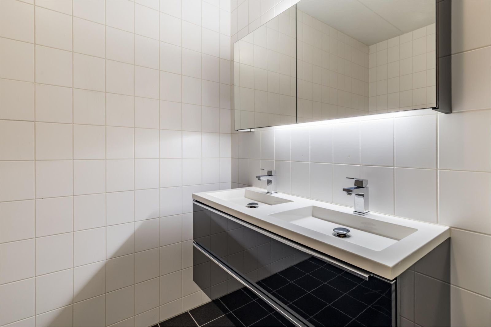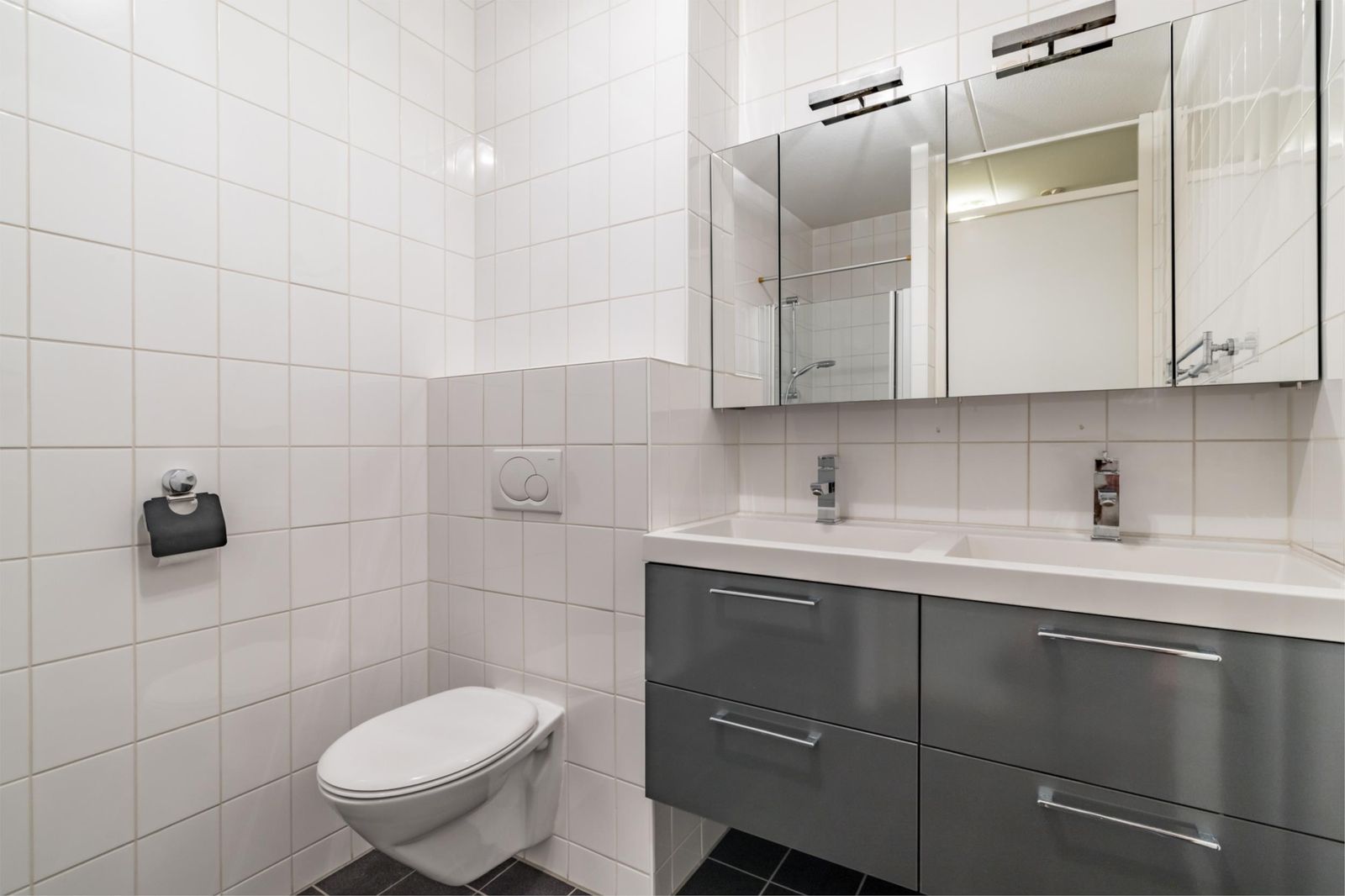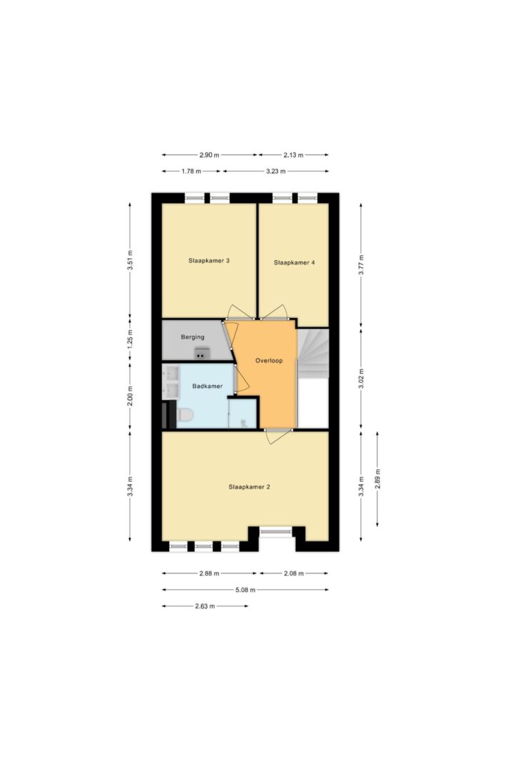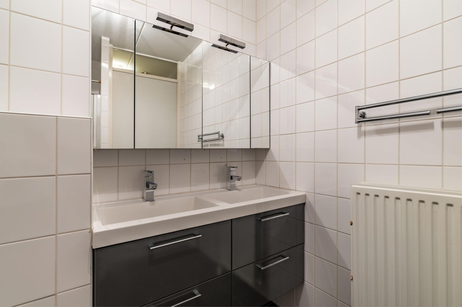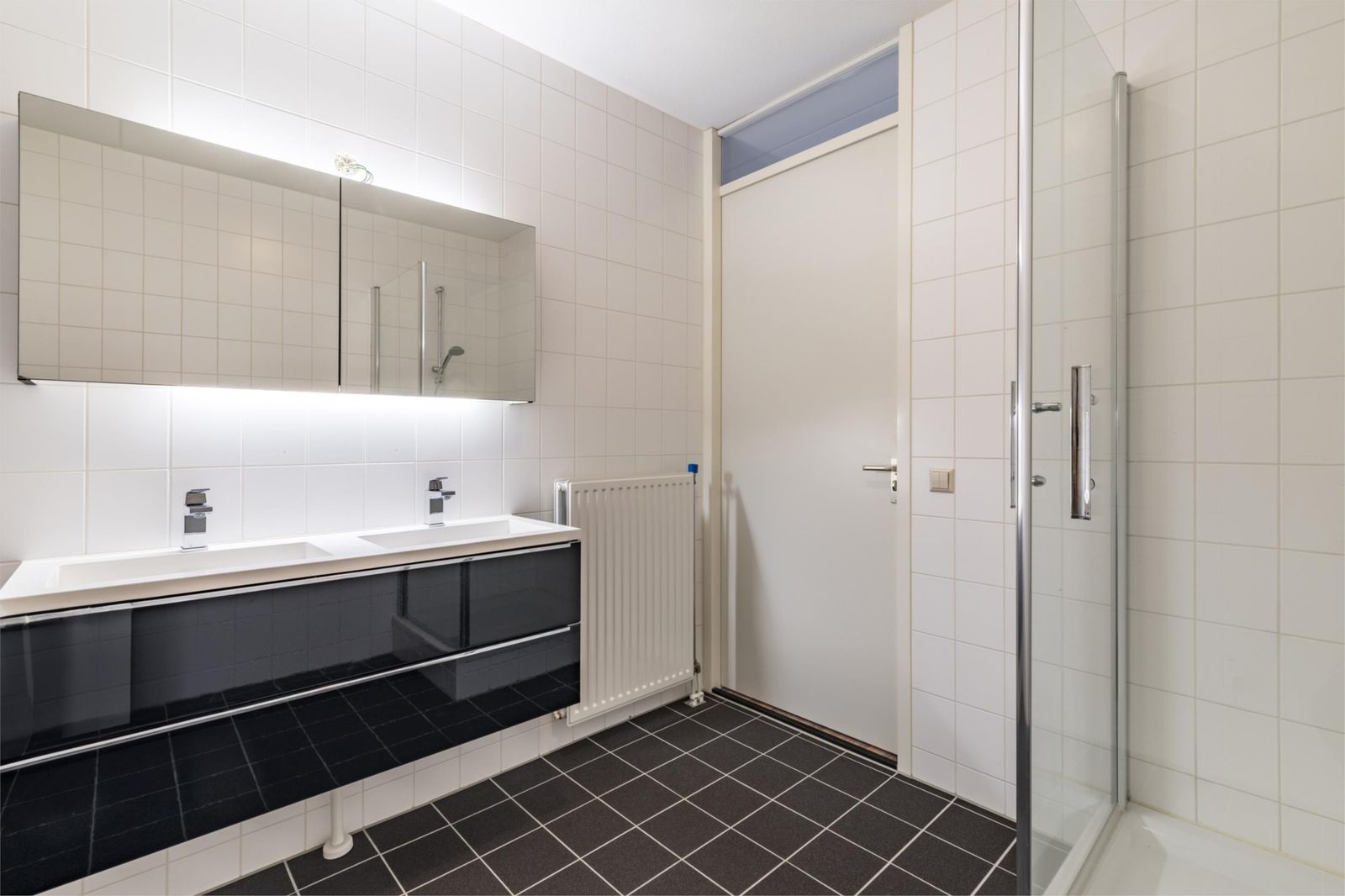 Eerste verdieping: overloop, drie slaapkamers, tweede badkamer met douche en dubbele wastafel, cv-ruimte.