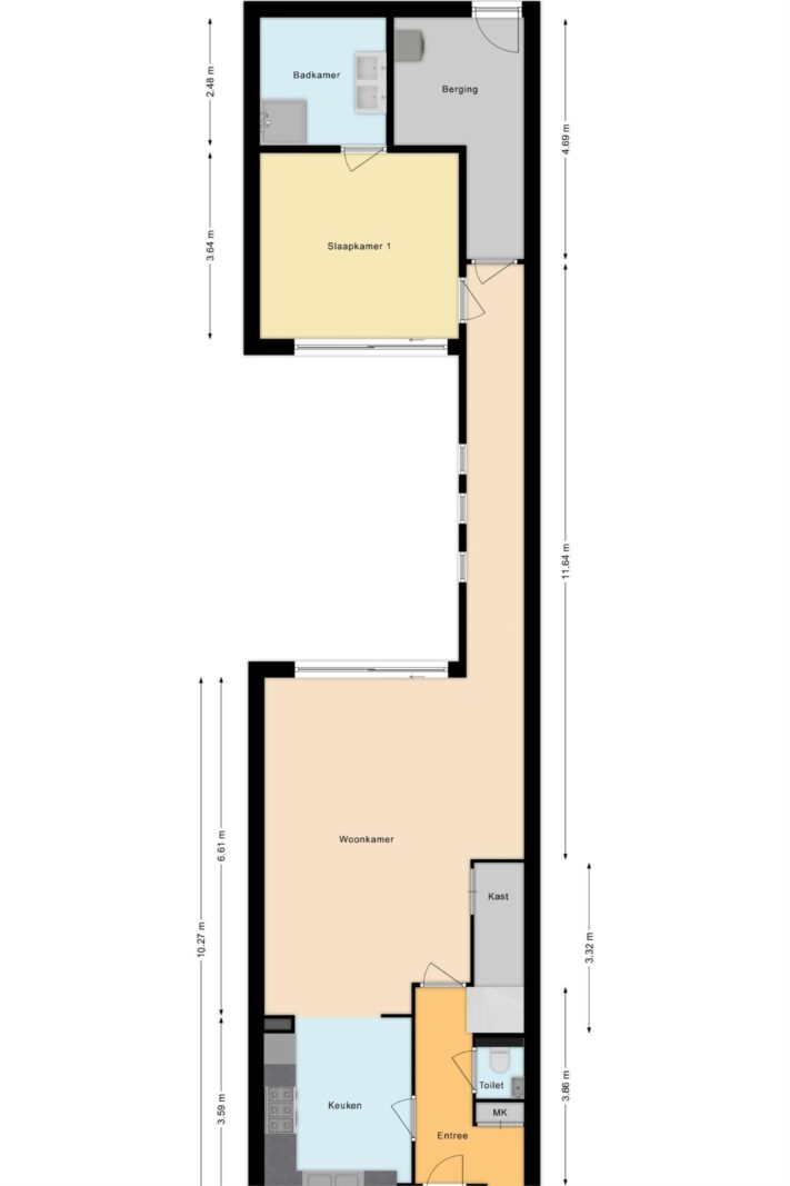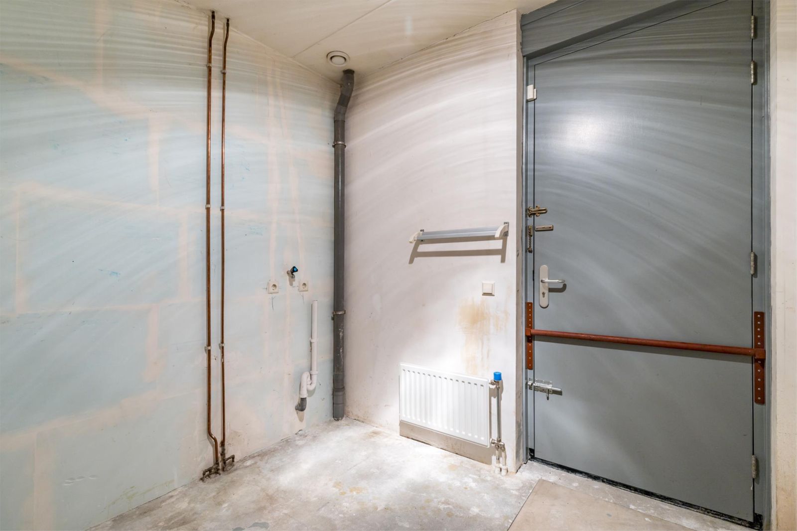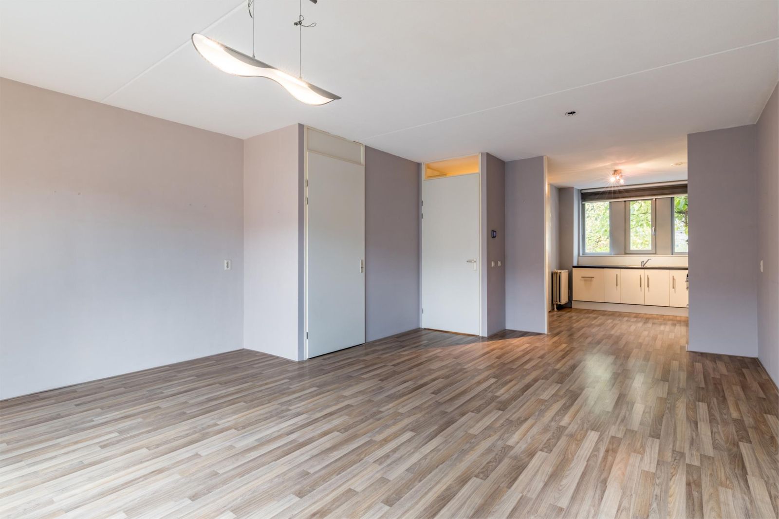 Begane grond: entree, hal, toilet, meterkast, ruime en lichte woonkamer met schuifpui naar de patio, open keuken voorzien van inbouwapparatuur, via gang bereikbare slaapkamer met directe toegang tot de badkamer met douche en dubbele wastafel, inpandige berging met wasmachineaansluiting en achterom.